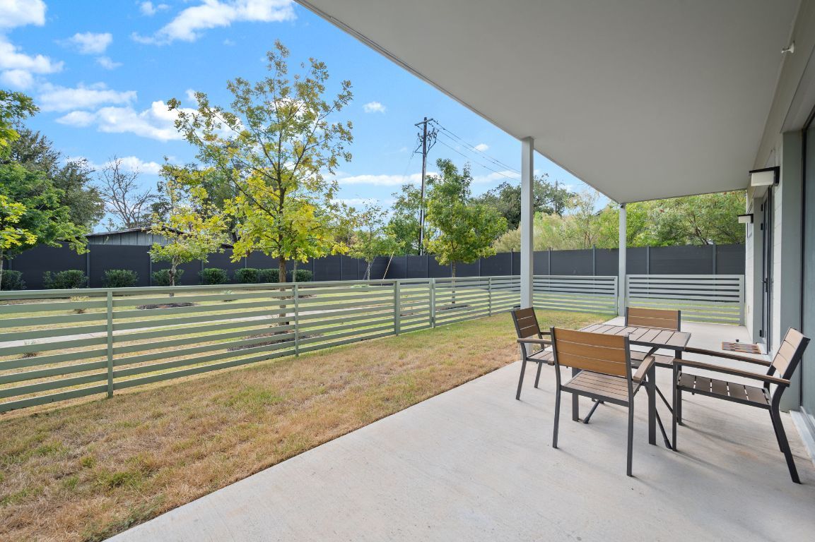Welcome to the only ground-floor corner residence with this ideal layout, level of privacy, and yard size in this coveted 78704 community. This modern 2 bedroom, 2 bath condo combines the ease of lock-and-leave living with the comfort of a true home, featuring a rare 500 sq ft fenced yard (buyer to confirm size) with grass, covered concrete patio, and space to entertain, garden, or let pets play freely. Inside, floor-to-ceiling windows flood the open living area with natural light, giving a feel of peaceful indoor/outdoor living. The modern kitchen, with stainless steel appliances, quartz counters, and generous storage, further complements the open plan space. Both bedrooms offer large walk-in closets, while motorized shades, upgraded fixtures, Lutron smart lighting, Google Home, and an ADT security system add modern comforts, style, and peace of mind. Practicality meets convenience with two covered, assigned parking spaces in a gated lot and two oversized storage closets (not counted in square footage). All appliances convey, with the option to purchase fully furnished--including two high-end Samsung flat screens--making this a true turnkey opportunity. Residents have access to premium on-site amenities such as a lap pool, dog park, and Amazon delivery locker. Located just minutes from South Congress, South Lamar, Austin airport, Downtown Austin, Lady Bird Lake, and Zilker Park, this home offers unbeatable proximity to Austin’s best dining, shopping, and entertainment. HOA dues cover sewer, trash, exterior landscaping, and Google Fiber for effortless living. To further ease your move-in costs, the seller will prepay 6 months of HOA dues or offer an equivalent 1% credit toward a rate buydown with an accepted offer. This home delivers unmatched outdoor space, privacy, and upgrades--at a value you won’t find elsewhere in 78704. Don’t miss this rare ground-floor corner layout with a private yard in 78704.