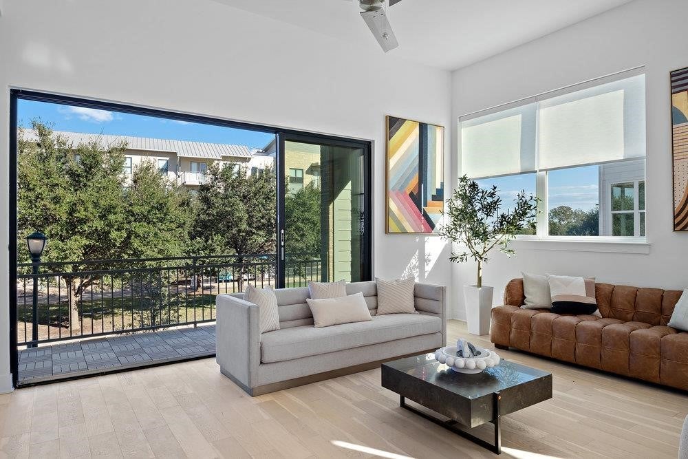 **Experience Modern Austin Living with Rooftop Views** Welcome to this stunning corner-unit townhome in the heart of Austin’s vibrant Mueller community, where luxury design meets effortless convenience. Bathed in natural light from every angle, this 3-bedroom, 3.5-bath residence combines elevated finishes with a warm, contemporary feel—and includes a *private rooftop deck with city views*. Step inside the open-concept living area, where 10-foot sliding glass doors lead to a spacious balcony overlooking the iconic Mueller Tower. The gourmet kitchen is a showpiece, featuring a large quartz island, premium Bosch appliances, sleek cabinetry, and Hansgrohe fixtures. Natural light floods through expansive windows, accentuating the clean lines and rich wood flooring throughout. This smart layout includes **two primary suites** for ultimate comfort and flexibility—one conveniently located on the main level with a full ensuite bath, and another upstairs with a spa-inspired retreat featuring a walk-in shower and designer finishes. A third bedroom with its own ensuite ensures everyone enjoys privacy and space. Up top, your private **rooftop deck** awaits—a perfect setting for sunset cocktails, skyline views, or quiet moments under the stars. As part of the coveted Mueller master-planned community, residents enjoy 140+ acres of green space with parks, trails, pools, playgrounds, and a dog park, plus walkable access to local favorites like Halcyon Coffee, RD Riley’s, and the bustling Mueller Farmers Market. Just minutes from downtown Austin, the University of Texas, the airport, and The Domain, this home delivers both urban energy and neighborhood charm. Builder offering up to $27,000 in flex cash.