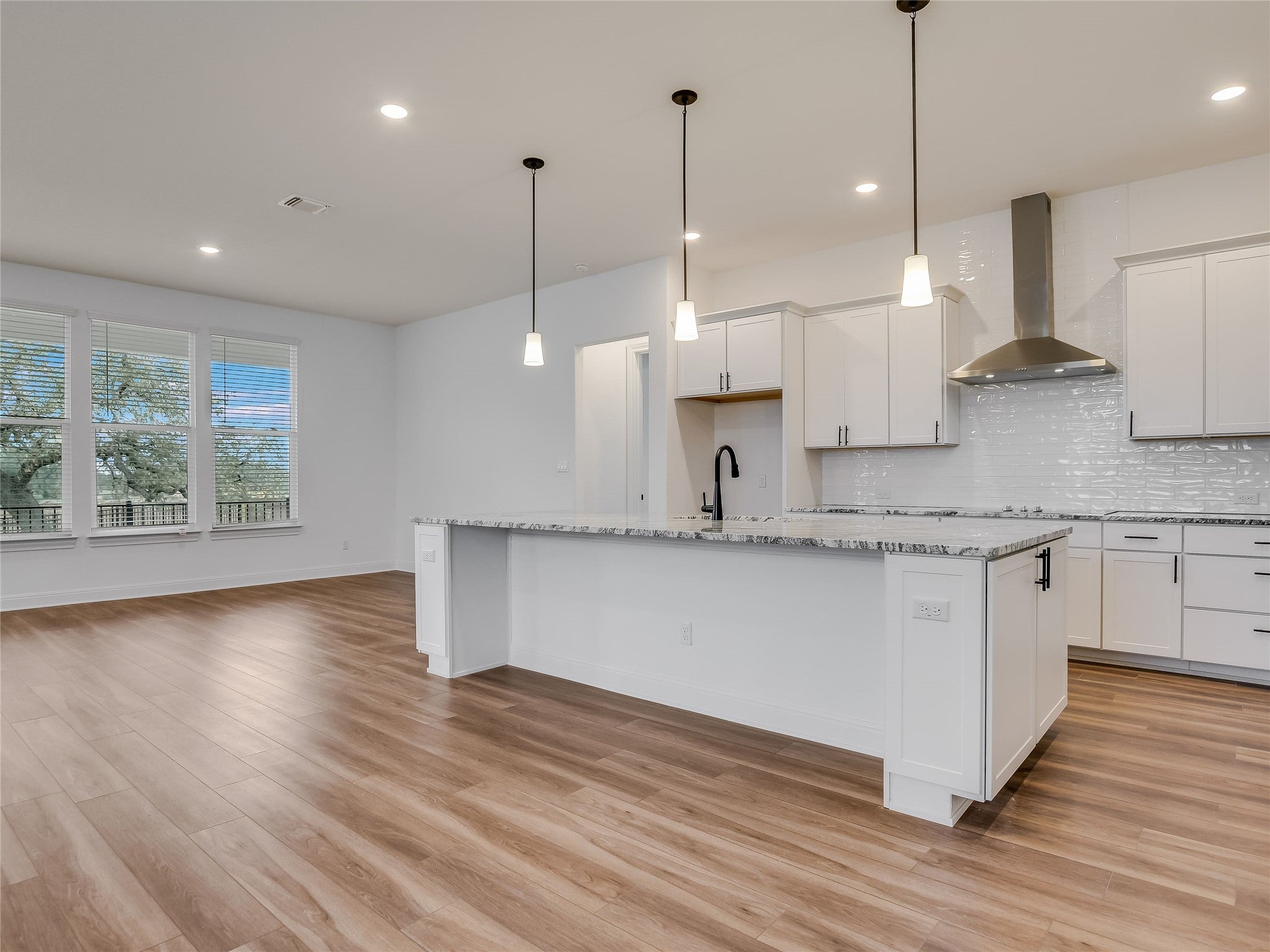 ONE-STORY Home in Marble Falls - 2932 SF with THREE-CAR GARAGE - On a CUL-DE-SAC! 2932 SF, 3 BR + STUDY/ 3.5 BA one-story home with granite countertops and upgraded subway backsplash in kitchen and walk-in shower in the master bathroom. Enjoy the large gourmet kitchen with upgraded appliances and open concept living room with luxury vinyl flooring, THREE-CAR GARAGE, large COVERED PATIO with grill hookup and spacious master bedroom suite that includes beautiful bathroom with walk-in shower and large walk-in closet. The home includes a LARGE LOT on a private CUL-DE-SAC. This home also features 9-foot ceilings. This home is a part of a master-planned community that has luxury resort-style amenities. The new amenity center - built in 2025 - is a private 3-acre outdoor community area that includes a swimming pool, beach entry, toddler pool & splash pad, restrooms, playground, community lawn, picnic pavilion, fire pit, ramada, 2 dog parks, and sports courts including a gaga ball court, volleyball court, and pickle ball court. In addition to these amenities, there are also 5.5 miles of walking and biking trails along community sidewalks. Gregg Ranch is conveniently located off of Highway 281 and is only a stone's throw away from the Highland's Lake region, Lake LBJ, major medical centers and downtown Marble Falls. Quick access to Highway 71 allows for a 45-minute drive into downtown Austin.