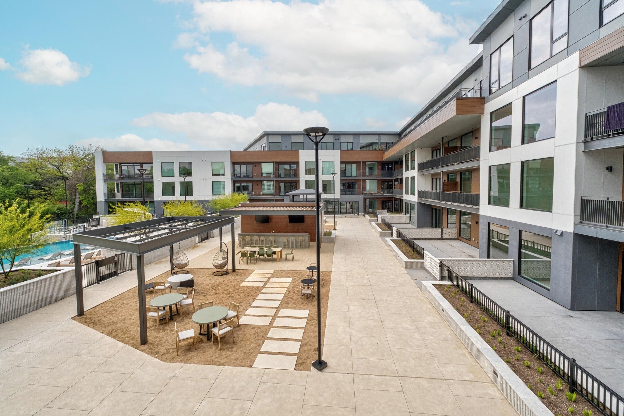- Barbecue, Common Grounds/Area, Courtyard, Curbs, Dog Park, Fitness Center, Gated, Internet Access, Pool, Street Lights, Sidewalks, Trails/Paths, Bicycle Storage, Business Center, Shopping