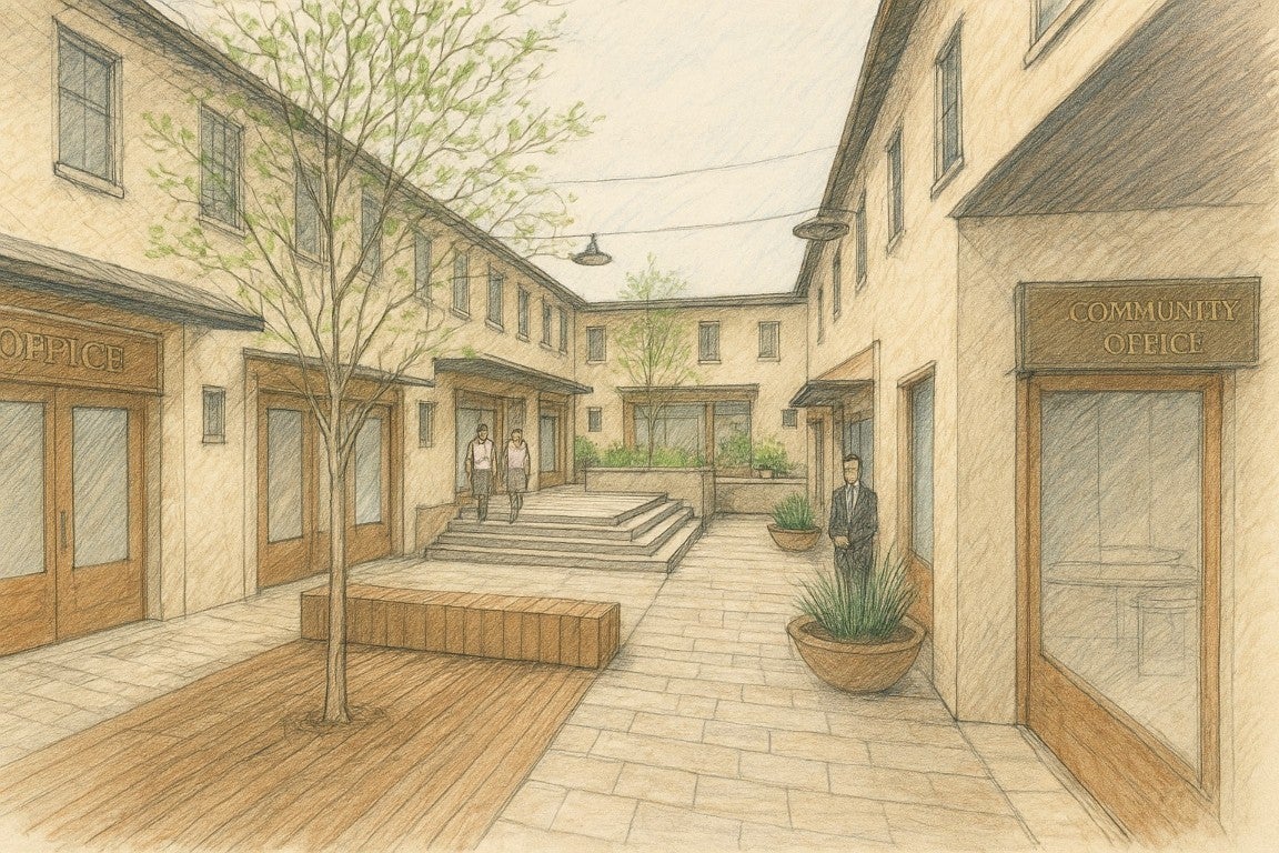 Rare opportunity to lease your own office or retail space only a block away from the Most Beautiful Town Square in Texas! Surrounding a beautiful common courtyard, these Condos will be ready for occupancy in the Fall of 2026! All units are 2 stories with a mix of private offices as well as flex/open space for collaboration. They all include a kitchenette, restroom on each floor, and space to create a conference room or executive office as well. Reserve your spot in Monument Commons today!