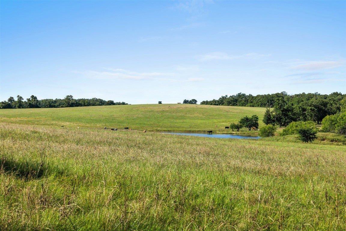 The 165-acre ag-exempt property showcases over 50 feet of elevation change, providing sweeping panoramic views across the countryside. Approximately 50% of the acreage is open pasture, primarily planted in Coastal Bermuda, while the other half consists of native hardwood forest dominated by mature oaks. This combination provides excellent grazing potential as well as ideal cover for wildlife. Water features are a highlight, with two ponds on the property: a 2-acre stocked pond teeming with largemouth bass and perch, and a secondary 0.5-acre pond, both of which are known to retain water year-round. Additionally, a tributary of Pond Creek runs north to south through the property, contributing to the water supply. Crossroads Ranch is equipped with two certified water wells. One well is operated by a traditional windmill, while the second is powered by electricity.