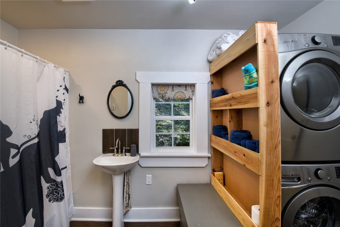 - Dryer, Washer/Dryer Stacked, Dishwasher, Disposal, Microwave, Refrigerator, Electric Range, Electric Water Heater