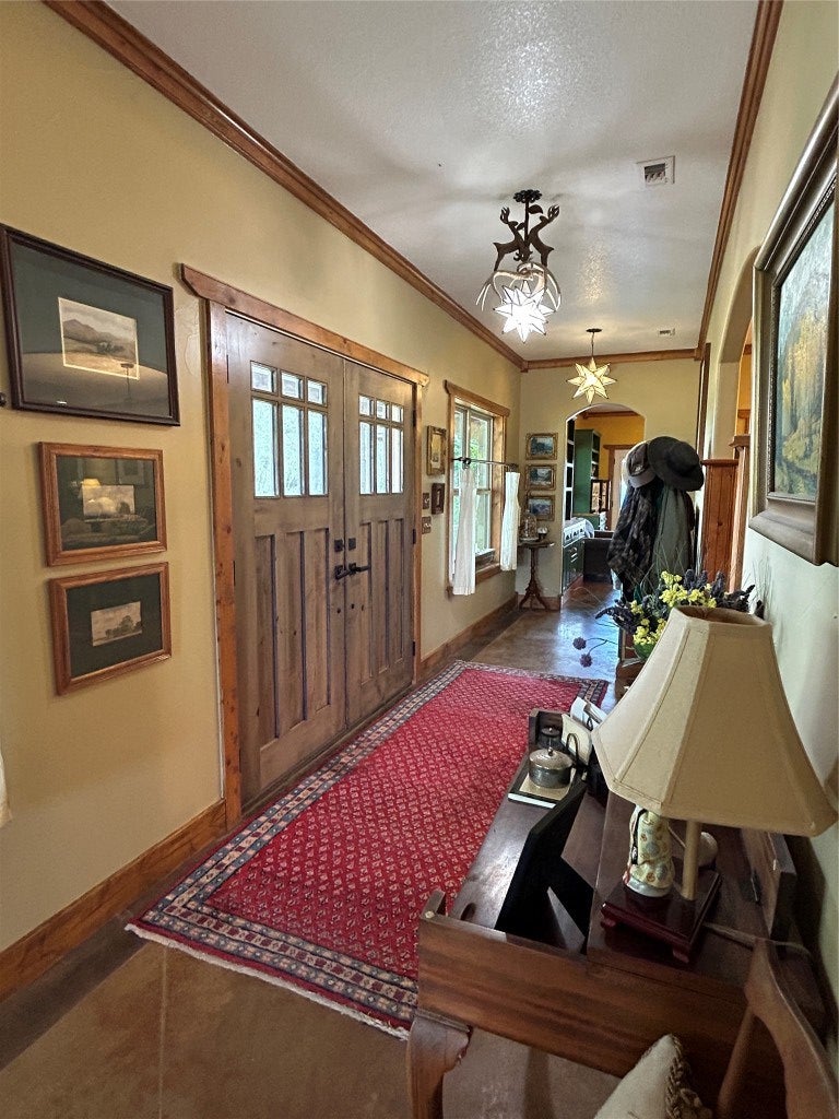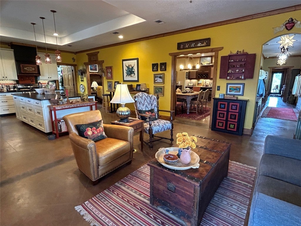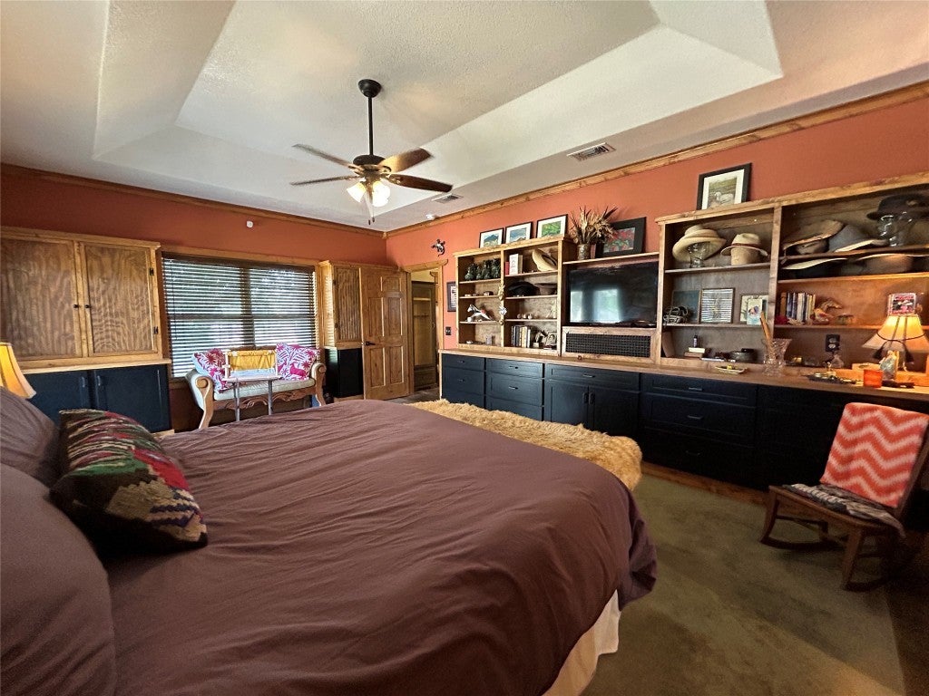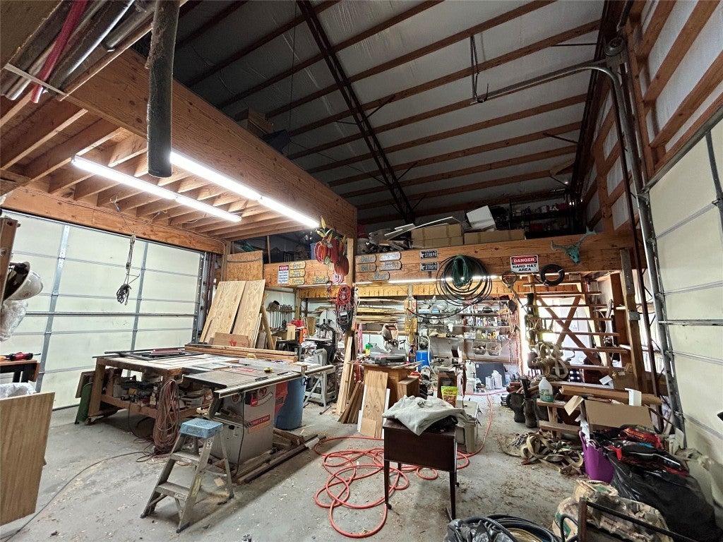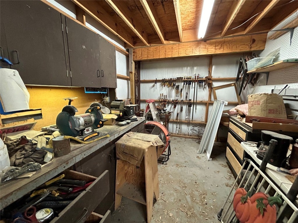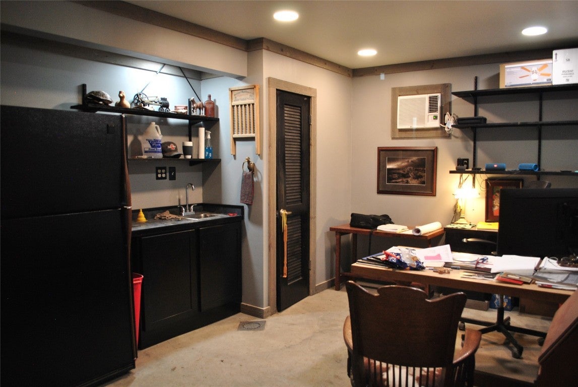 Welcome to Starkeeper Ranch! A wood rail post fence and crushed limestone drive lead to the custom home and multiple outbuildings. The 2,400 sq. ft. home is designed for entertaining. There are two bedrooms, two baths, and an office. The home features custom wood accents and tile finishes that evoke the charm of Taos, New Mexico. Living room has a recessed ceiling, a wet bar and wood-burning fireplace. The kitchen with a recessed ceiling has an oversized island, a large walk-in pantry, and an adjacent dining area with built-in cabinets. The primary bedroom ensuite, built in cabinets, two walk-in closets, two sinks in the bathroom, a walk-in shower, and a heated towel rack. The exterior of the home features native San Saba sandstone and a standing seam metal roof. The oversized porch wraps around the entire house and includes an outdoor shower. The front yard is landscaped with flagstone sidewalk, Tifway 419 Bermuda grass and native plants. The porch features eclectic patio furniture vignettes, adding a Round Top, Texas charm. Outbuildings include: - Covered patio - Quaint wood-frame casita with water and electricity, a kitchen and living space, but no bathroom - Large wood-frame building with water and electricity, a metal roof, and a covered porch - Wood and metal storage building - Small wood and metal building for the water well and pressure tank - Greenhouse There is a two-car carport with an attached storage area. North of the home is a large metal-frame shop barn with concrete floors, two overhead doors, a walk-through door, a loft, and a large overhang for tractors and implements. The barn is used as a woodshop and includes a custom-built office with insulated sheetrock walls, concrete floors, recessed lighting, wood trim, a sink, refrigerator, bathroom, and A/C and heat. The office has WiFi from the main house. Adjacent to the barn is an RV pad with electric and sewer hookups and a chain-link fenced area for a garden and plants.