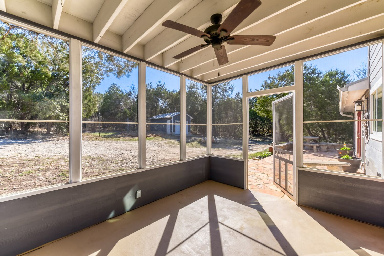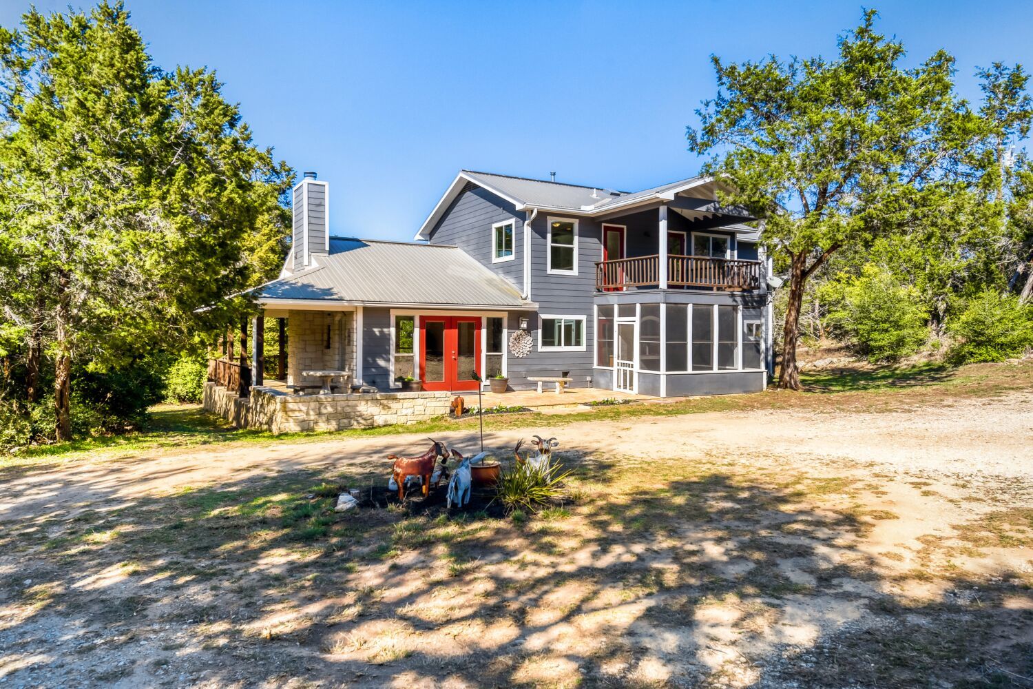 Welcome to 8705 Bear Creek Drive, a Hill Country retreat on a private 2.84 acre property offering peaceful country living just 20 minutes from downtown Austin. Located in the Bear Creek Oaks community, this 3 bedroom, 2.5 bathroom home features an open floorplan ideal for everyday living and entertaining with views of the surrounding landscape. The home was thoughtfully designed with a flex space that can function as a third bedroom using an accordion style partition. The spacious kitchen is the heart of the home with an impressive 8 burner gas cooktop, perfect for a foodie or chef, along with a gorgeous vent hood, abundant cabinetry, and an oversized pantry. Recent improvements include updated flooring, fresh interior paint, and refreshed porches that create inviting outdoor spaces to relax and enjoy the property. The stunning wraparound porch welcomes you to slow down and enjoy the peaceful setting. In addition, there are two covered porches, one upstairs connecting the primary bedroom and flex space, and another enclosed porch just off the kitchen that creates the perfect sitting room or yoga space. The spacious primary suite includes two large walk-in closets. Step outside and enjoy the privacy of your acreage, with ranch fencing along three sides of the property and room to enjoy the outdoors, including an enclosed garden area perfect for growing veggies, herbs, or flowers. The covered porches are perfect for a morning cup of coffee or evening beverage while watching wildlife and Hill Country sunsets. The backyard retreat includes a $25k Master Spa that functions as a hot tub in the winter and a refreshing mini pool in the summer. The separate detached garage/workshop offers flexibility as a garage, storage space, or workspace and includes electricity and water connections. With space, privacy, and convenient access to Austin, this property offers the best of Hill Country living while remaining close to Austin and Dripping Springs and zoned to top tier schools.