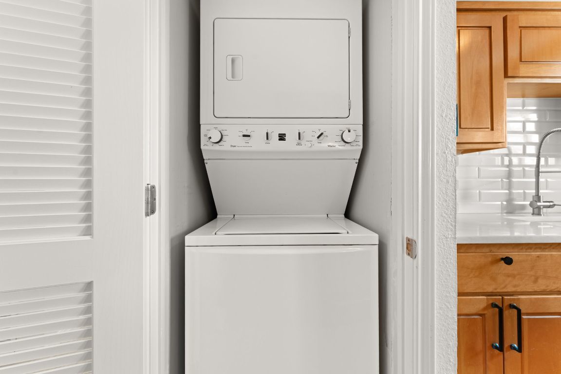 - Washer/Dryer Stacked, Dishwasher, Free-Standing Range, Disposal, Microwave, Cooktop