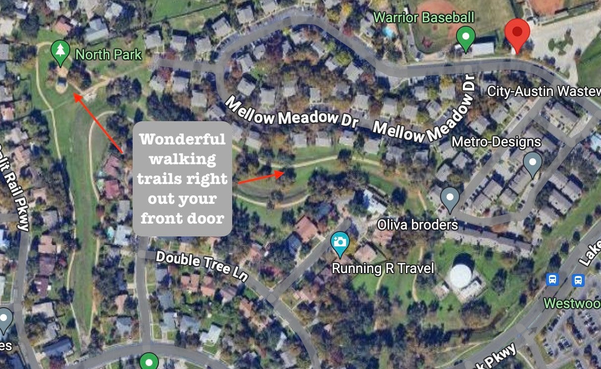 Welcome to 10616 Mellow Meadow Drive, #46A, available for immediate move-in! This 2 bedroom, 2 bathroom condo is on the ground floor, with quiet neighbors above! Inside, you will find easy to care for vinyl flooring, and beautiful farmhouse style updates. The new kitchen is complete with white shaker cabinets and black hardware, stainless steel appliances including a built-in microwave, undermounted kitchen sink, quartz countertops and pendant lighting above the island. The living area is accented by an original floor to ceiling fireplace, large windows, and nice natural light, especially in the morning. The floor plan is split - the primary bedroom and bathroom are on one side of the condo, and the secondary bedroom and bathroom are on the other side. The front patio is fenced in, and features a storage closet complete with washer and dryer. The community features a pool, and basketball hoop/sports area, and just steps from your front door is access to a wonderful trail system that leads you to a park nearby. Tenants can also purchase a pass to the nearby Anderson Mill Limited District, with an abundance of park amenities such as playscapes, trails, picnic areas, sports facilities and more. This condo is situated across the parking lot from the locked mailroom, clubhouse, and pool, and is convenient to many amenities in the Northwest part of Austin as well, including less than 10 minutes from Lakeline Mall, HEB, famous BBQ, and many other shopping and eatery destinations. Easy to access major roadways 620, 45 and 183 to get anywhere in the greater Austin area within minutes. Zoned to RRISD, including Westwood HS. No pets, no smoking, no use of the fireplace permitted. Landlords are attentive and have pride of ownership. Please contact your Realtor or the listing agent for more information and to schedule a tour. Easy online application!
