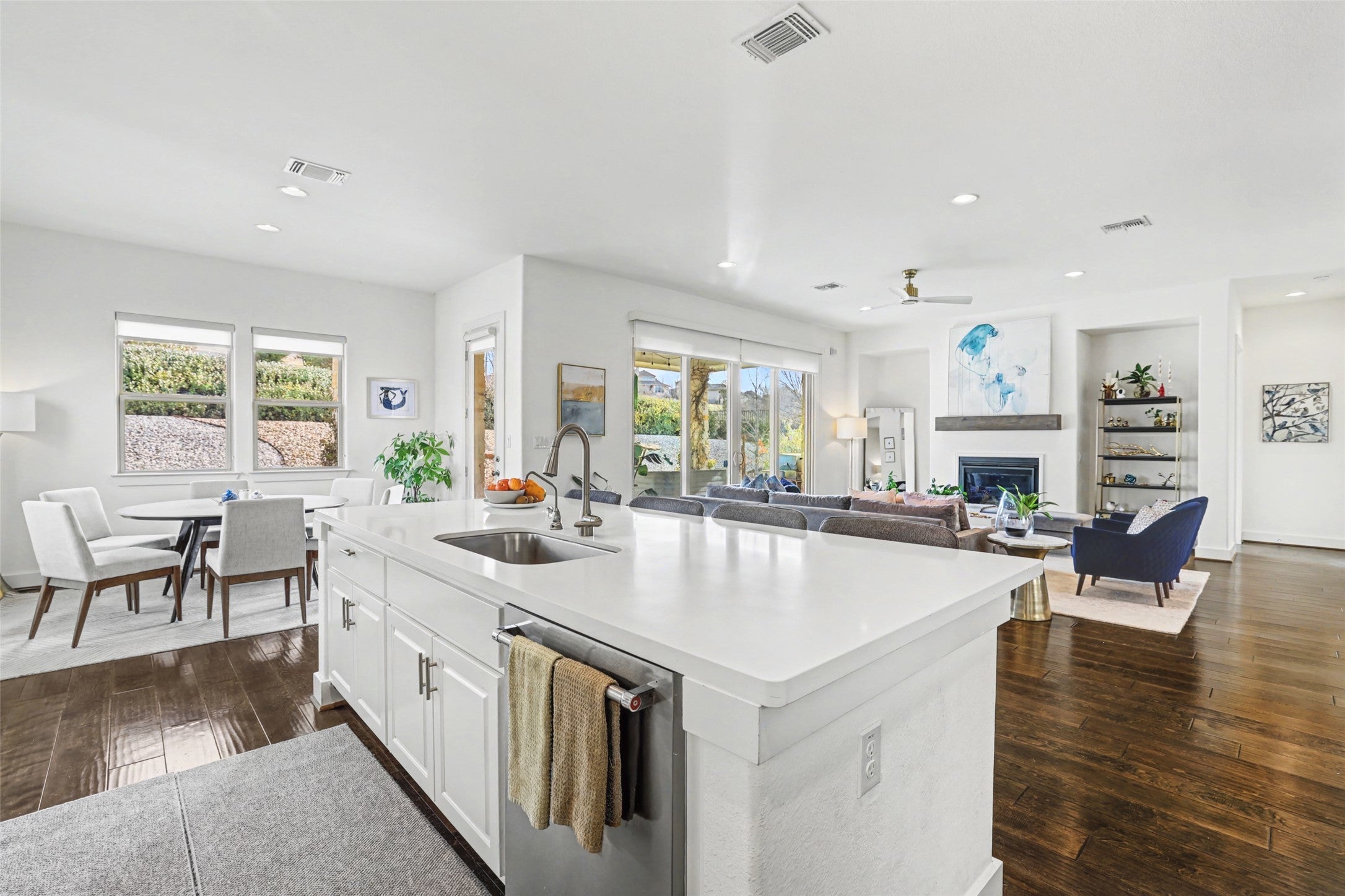 Texas Luxury Hill Country Home in Rough Hollow with Casita Located in the highly sought-after community of Rough Hollow, this exceptional luxury home offers 5 bedrooms, 5 bathrooms, a private guest house, and three distinct living areas providing remarkable flexibility for both everyday living and entertaining. The main residence showcases a bright open floor plan filled with natural light, refined finishes, and seamless indoor-outdoor flow. The beautifully landscaped and fully fenced backyard creates a private retreat, complete with mature trees and breathtaking sunset views perfect for relaxing evenings or hosting gatherings. The detached guest house features a kitchenette, full bathroom, and private entrance, ideal for guests, multigenerational living, a home office, or creative studio space. Multiple living areas offer space for formal entertaining, casual family gatherings, and a dedicated media or game room. Just minutes from the Rough Hollow Marina, residents enjoy access to resort-style pools, a fitness center, clubhouse, scenic trails, on-site dining, and lake access. Zoned to excellent schools, this home offers the perfect blend of luxury, comfort, and Hill Country lifestyle.