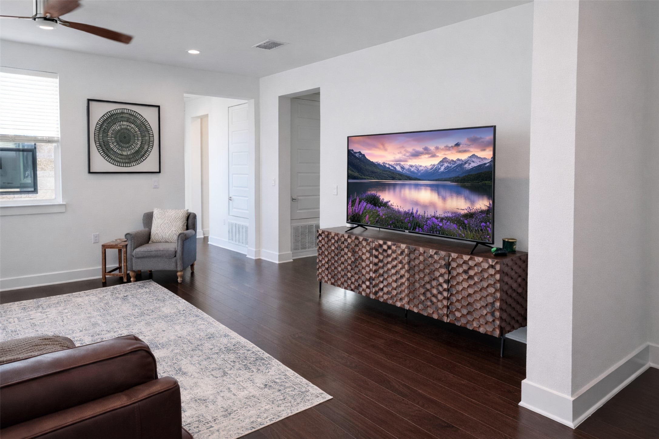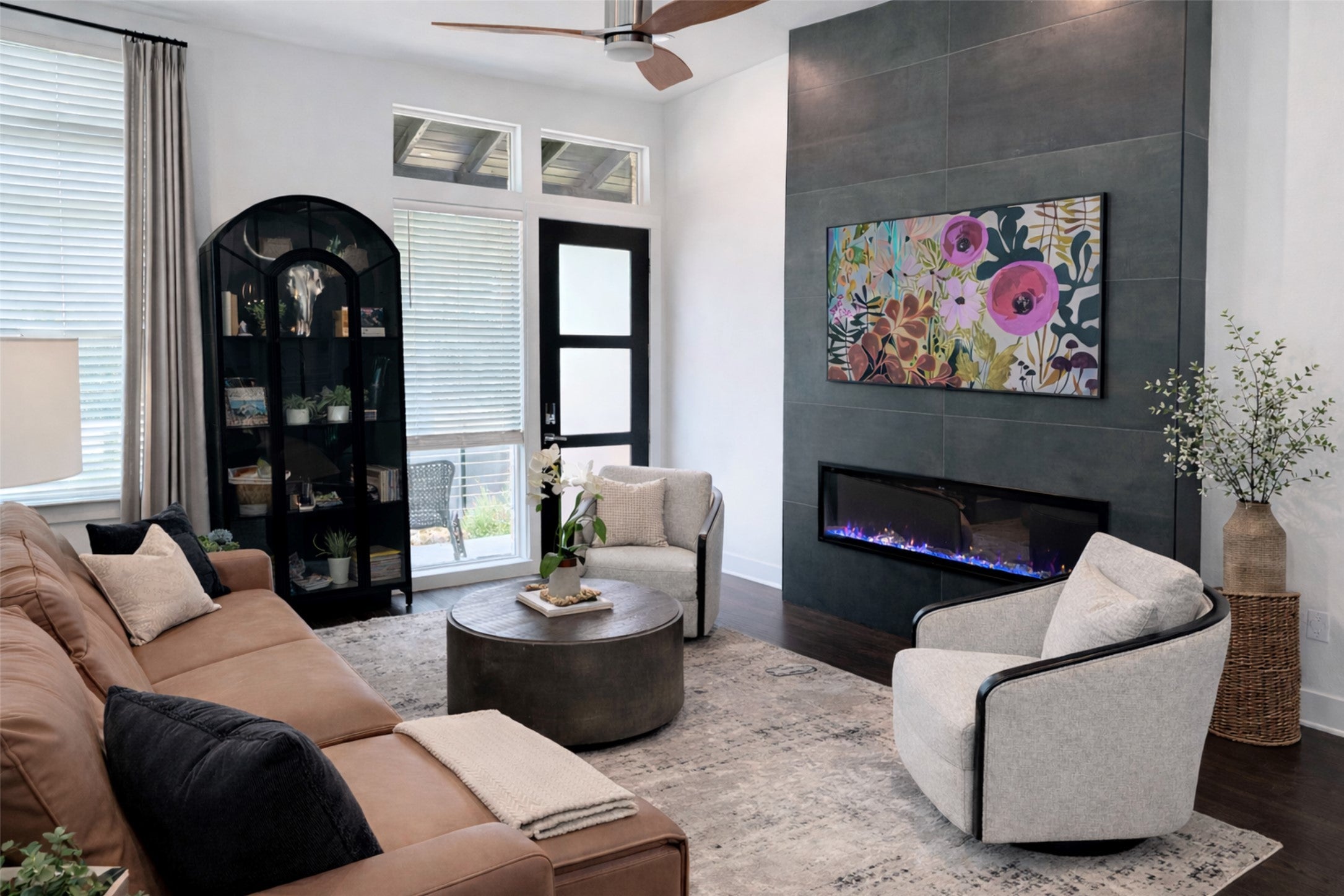 Experience refined living in this beautifully upgraded two-story townhome featuring four spacious bedrooms, three full baths, one half bath, and two expansive living areas—making this residence truly stand out from others in the community. At the heart of the home, the gourmet kitchen showcases a grand center island—perfect for entertaining and everyday living—seamlessly connecting to the dining and living spaces for effortless flow and interaction. The living room is elevated by a custom tile fireplace, adding warmth, style, and a distinctive focal point. The primary suite offers a true retreat, combining comfort and elegance. Unwind in the spa-inspired ensuite bath, complete with a soaking tub, an oversized shower with floor-to-ceiling tile, and thoughtful finishes throughout. Upstairs, a wide staircase leads to a bright and airy loft—ideal as a second living area or flex space—flooded with natural light from abundant windows. A key upgrade to this home is the addition of a fourth bedroom with a private ensuite bath, enhancing both functionality and value. Two additional bedrooms share a well-appointed full bath, and a generously sized laundry room with ample cabinetry and storage adds everyday convenience. Additional highlights include: * Soaring ceilings throughout * Smart home technology * Gated front yard, private side patio, and second-floor balcony * Rear-entry two-car garage * Tankless water heater * Built-in central vacuum system * Dedicated EV charging breaker Perfectly situated near 40th & Bull Creek, this home offers unbeatable access to MoPac, Lamar, and Burnet corridors, the nearby medical district, and is just minutes from Downtown Austin. Located in **The Grove**, known as “Austin’s Gathering Place,” residents enjoy over 20 acres of park space, miles of walk and biking trails.