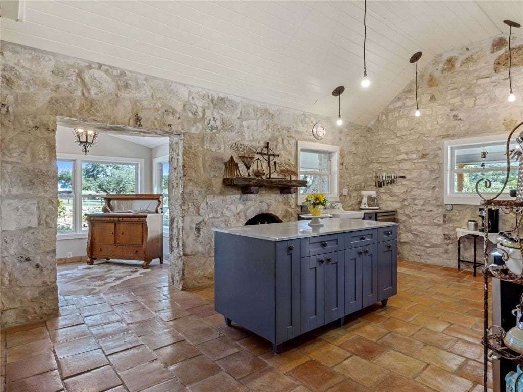 Steeped in Texas history and thoughtfully reimagined for modern ranch living, Saving Grace Ranch is a truly rare legacy property spanning just under 89 acres in the heart of the Hill Country. At its center stands a remarkable 5100 square foot residence, where an original 1867 stone home has been masterfully encased and expanded – preserving its authentic soul while seamlessly integrating refined, contemporary comforts. Historic character is showcased throughout, from the original pegged and numbered cedar beams to the hand-cut stone walls and architectural cutouts, each telling a story of craftsmanship that cannot be replicated today. Designed with the equestrian in mind, Saving Grace Ranch is exceptionally well appointed for horses and livestock. A Morton three-stall horse barn with wash rack, a 30’ x 35’ metal hay barn, and fenced grazing pastures provide both functionality and flexibility for serious horse owners or those seeking a premier country lifestyle. Private, scenic, and rich in heritage, Saving Grace Ranch offers a rare opportunity to own a piece of Texas history – beautifully preserved, impeccably improved, and ready to be enjoyed for generations to come.
