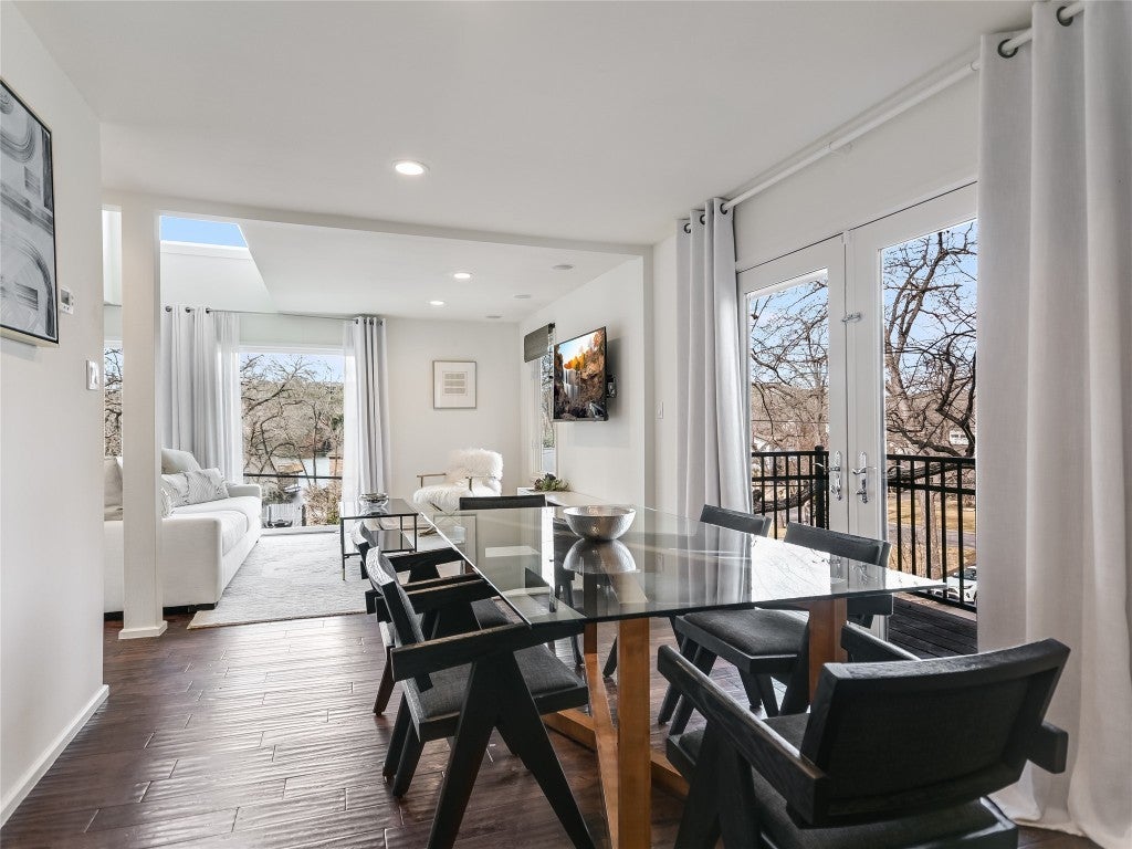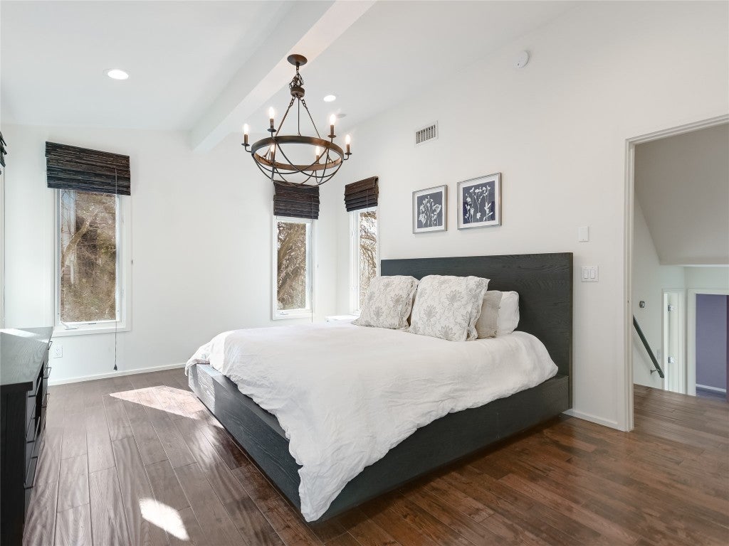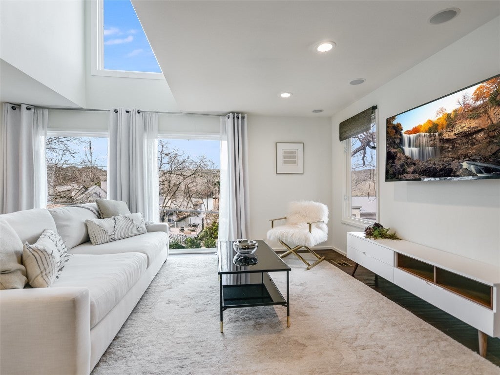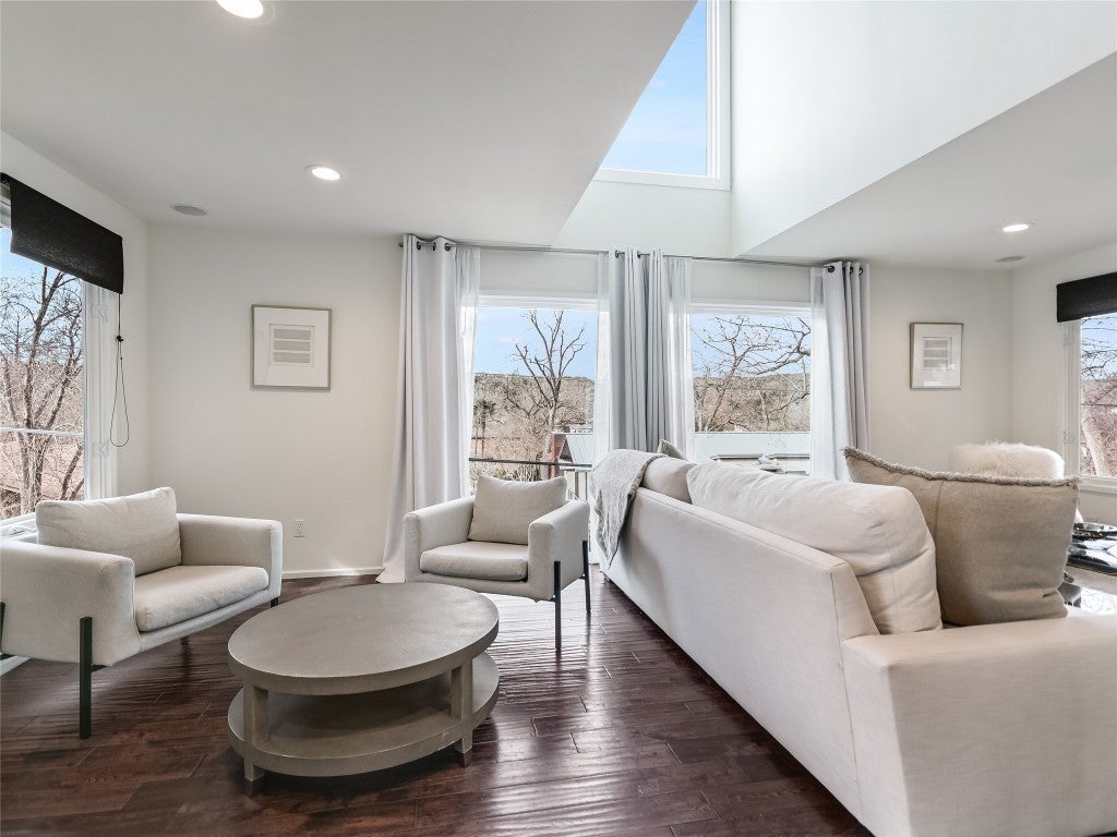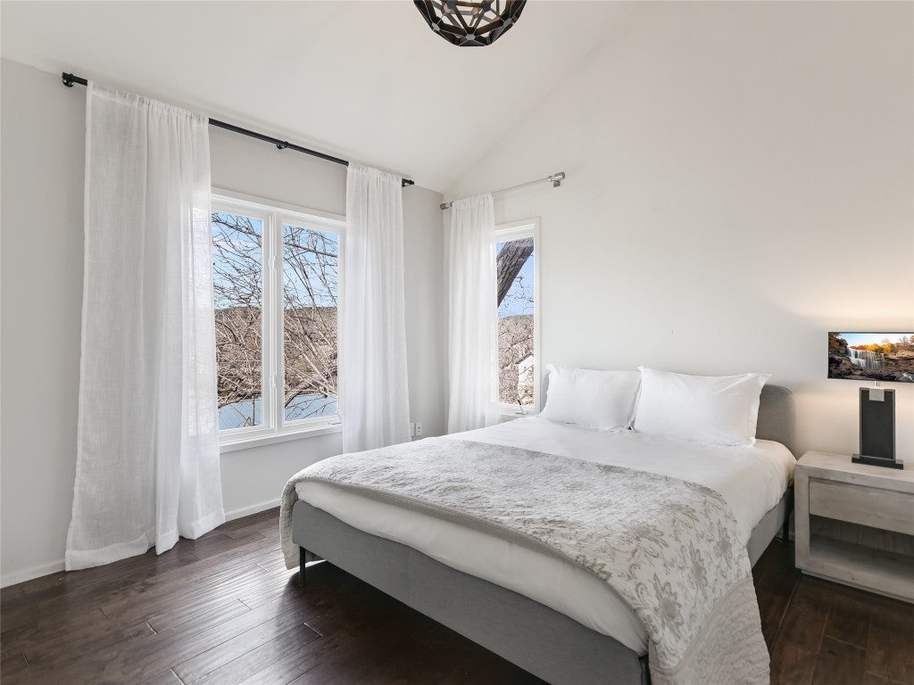 COOL HOUSE, COOL STREET! This renovated hillside house in the popular Rivercrest neighborhood is light and bright and captures both lake and tree views from every room in the house. Along the shores of Lake Austin, the intimate Rivercrest neighborhood is the ultimate walking and biking neighborhood, and the pecan lined street creates an amazing peaceful setting. This is an entertainer's dream home, with its open living, dining and kitchen floorplan, plus a deck to enjoy the natural surroundings. New additions include a 2 car garage and an electric car charger. The private primary captures wooded hillside views and the spa-like bathroom makes it feel like resort living. 3 bed/3.5 bath and the loft/flex space on the upper level could easily be converted into a 4th bedroom. Ask me for details on boat slip opportunities on the street. Tenant occupied, showings by appointment only.