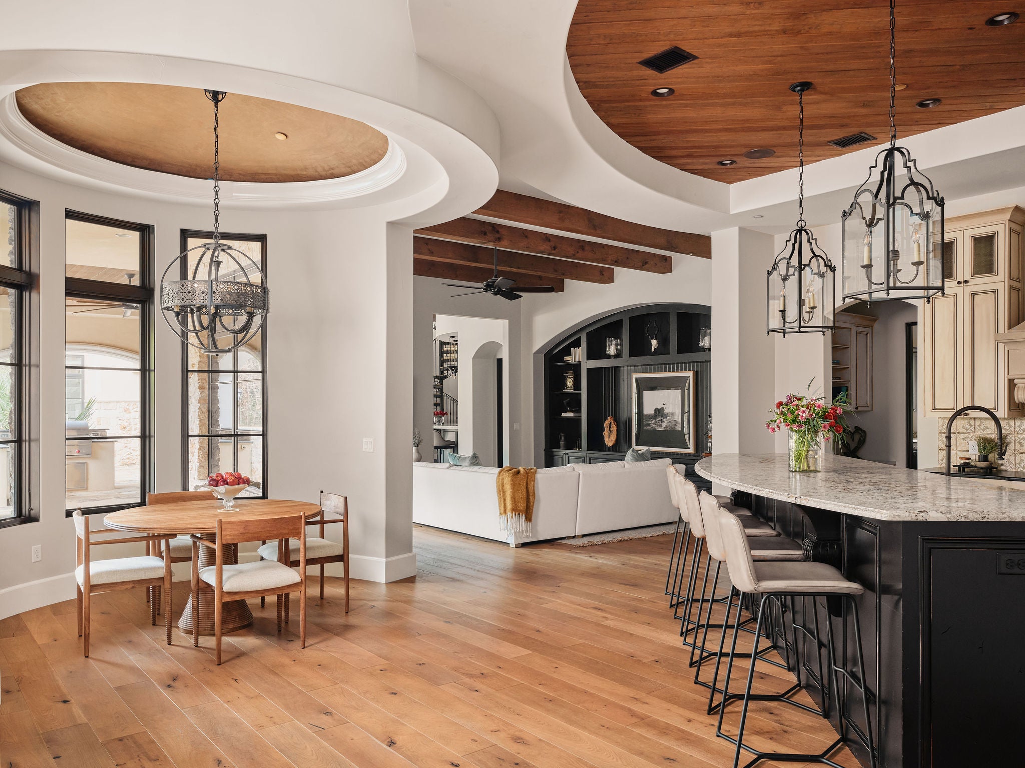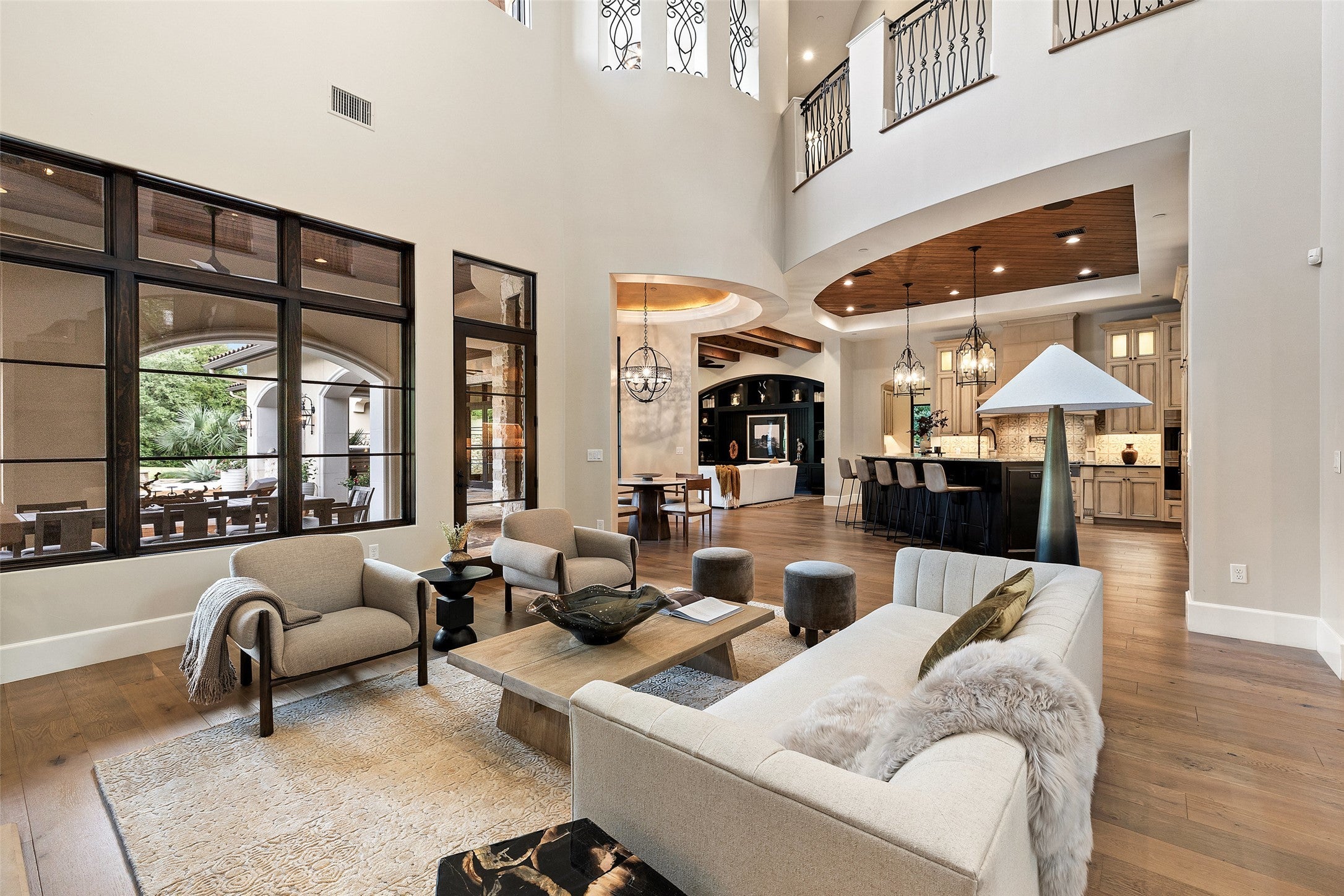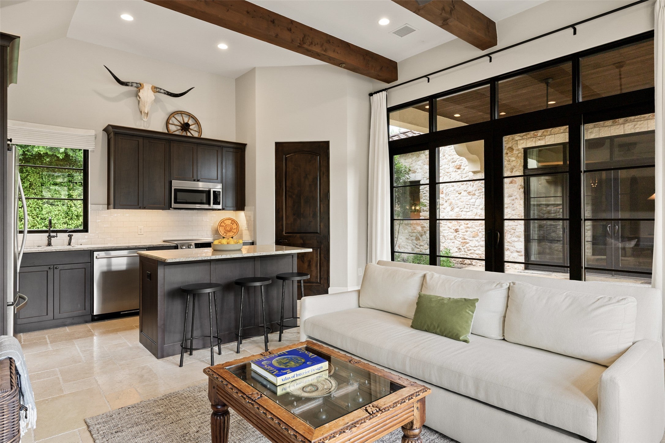 Behind private gates in the heart of Westlake lies The Reserve at Stoneridge, a nearly 3-acre estate of uncommon scale and beauty with a residence spanning over 10,000 sqft, a separate guest house and your own lazy river. Here, sweeping lawns and ancient oaks create a natural canopy, enveloping the property in rare privacy just minutes from downtown Austin. The main residence seamlessly blends elegance and function across 5 bedrooms, 8 bathrooms, and multiple entertaining spaces. Secluded within its own wing, the owner’s suite is framed by tranquil wooded views that blur the line between indoors and nature. A lodge-style study with its own fireplace and a separate fitness studio extend the retreat, offering spaces for wellness, work, and reflection. The elevated kitchen is equal parts culinary stage and gathering place, appointed with an 8-burner Wolf range, double ovens, integrated cabinet-front appliances and an expansive butler’s pantry. Beyond the kitchen, the family room links to a game room worthy of a private club: restaurant-grade bar, poker table and billiards table. The main floor continues with a cinematic media room and a spiral staircase that leads to a light-filled office with rooftop patio access. Outdoors, the estate transforms into a private resort. A shimmering pool and spa set the stage for hours of leisure, while a current-fed lazy river meanders through the pristine landscape. A generous fire pit, sweeping covered patios and a fully equipped outdoor kitchen create the ultimate backdrop. The 1,221 sq. ft. guesthouse offers its own kitchen, living and dining area, bedroom, 2 baths, and rooftop balcony. Transported by privacy on all sides, this estate is truly an entertainer’s dream and a canvas for recreation. Set in the prestigious Eanes ISD, this compound offers not just a home, but an address of distinction. Where Hill Country beauty meets city convenience, The Reserve at Stoneridge is crafted for those who seek space, privacy, and luxury.