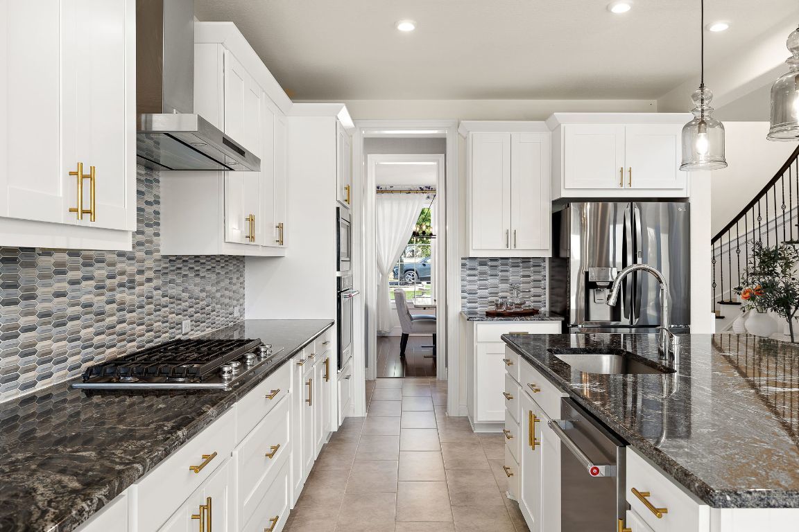 Fantastic home in the highly sought-after Belterra community, this beautifully updated residence combines elegant design, functional layout, and an unbeatable location backing to a serene greenbelt. The open floorplan flows effortlessly from the inviting living area with high ceilings and abundant natural light to the gourmet kitchen that opens seamlessly to the dining space—perfect for both entertaining and everyday living. The kitchen features modern finishes, ample cabinetry, and generous counter space, making it ideal for home chefs and gatherings alike. The split bedroom layout provides privacy and flexibility, with an oversized primary suite offering a peaceful retreat complete with a spa-like bathroom featuring dual vanities, a soaking tub, and a separate walk-in shower. Additional bedrooms and a spacious secondary living area create plenty of room for family, guests, or a home office. Step outside to the large covered patio that overlooks the greenbelt—perfect for BBQs, relaxing evenings, or adding a pool to create your own backyard oasis. Enjoy the best of Belterra living with access to top-tier community amenities including parks, pools, trails, and fitness facilities, all within the highly acclaimed Dripping Springs ISD. This home perfectly balances modern upgrades, thoughtful design, and the natural beauty of Hill Country living.