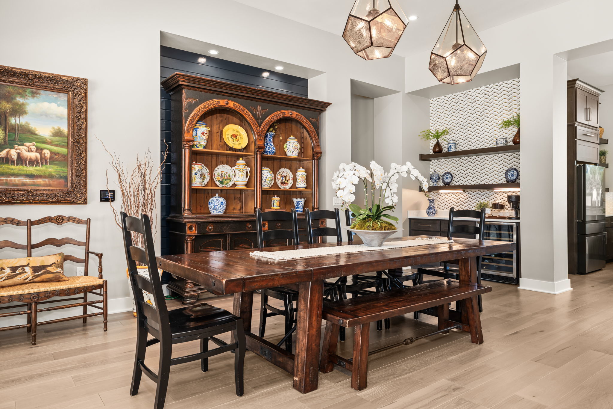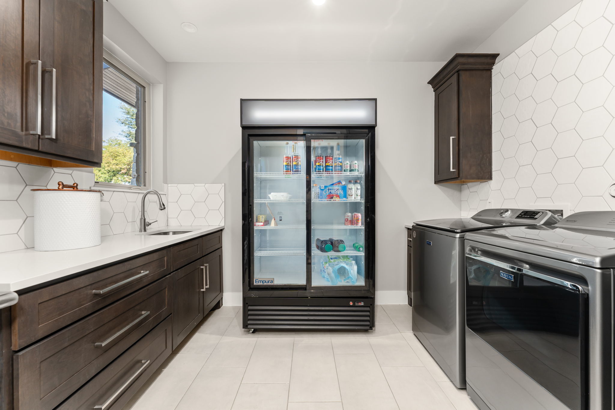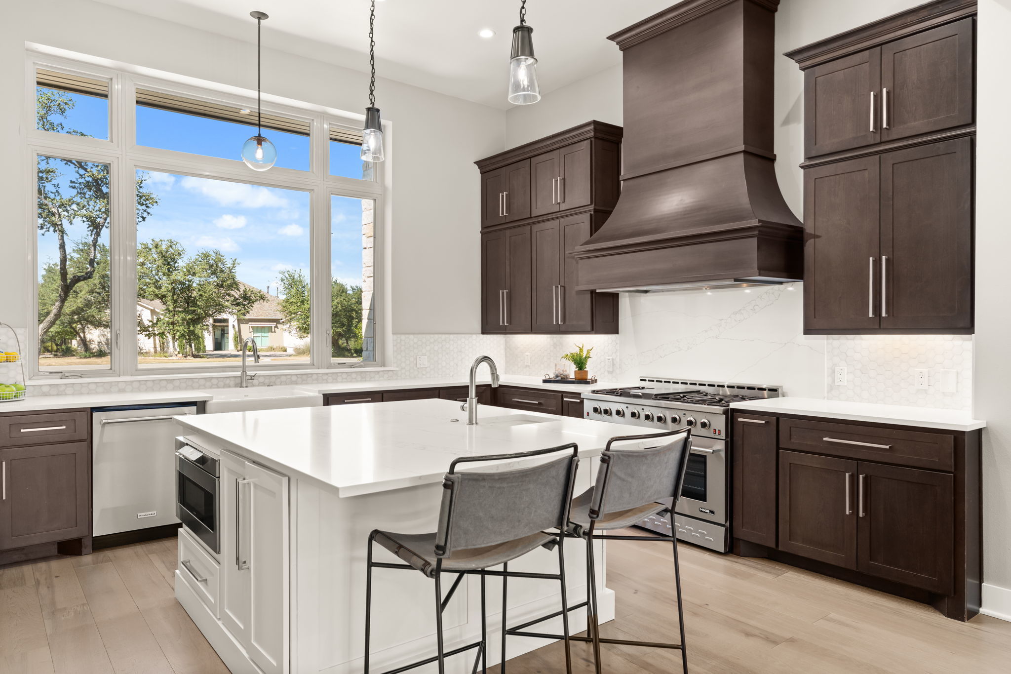 - Dishwasher, Exhaust Fan, Disposal, Gas Range, Bar Fridge, Built-In Electric Oven, Microwave, Stainless Steel Appliance(s), Tankless Water Heater, Wine Refrigerator