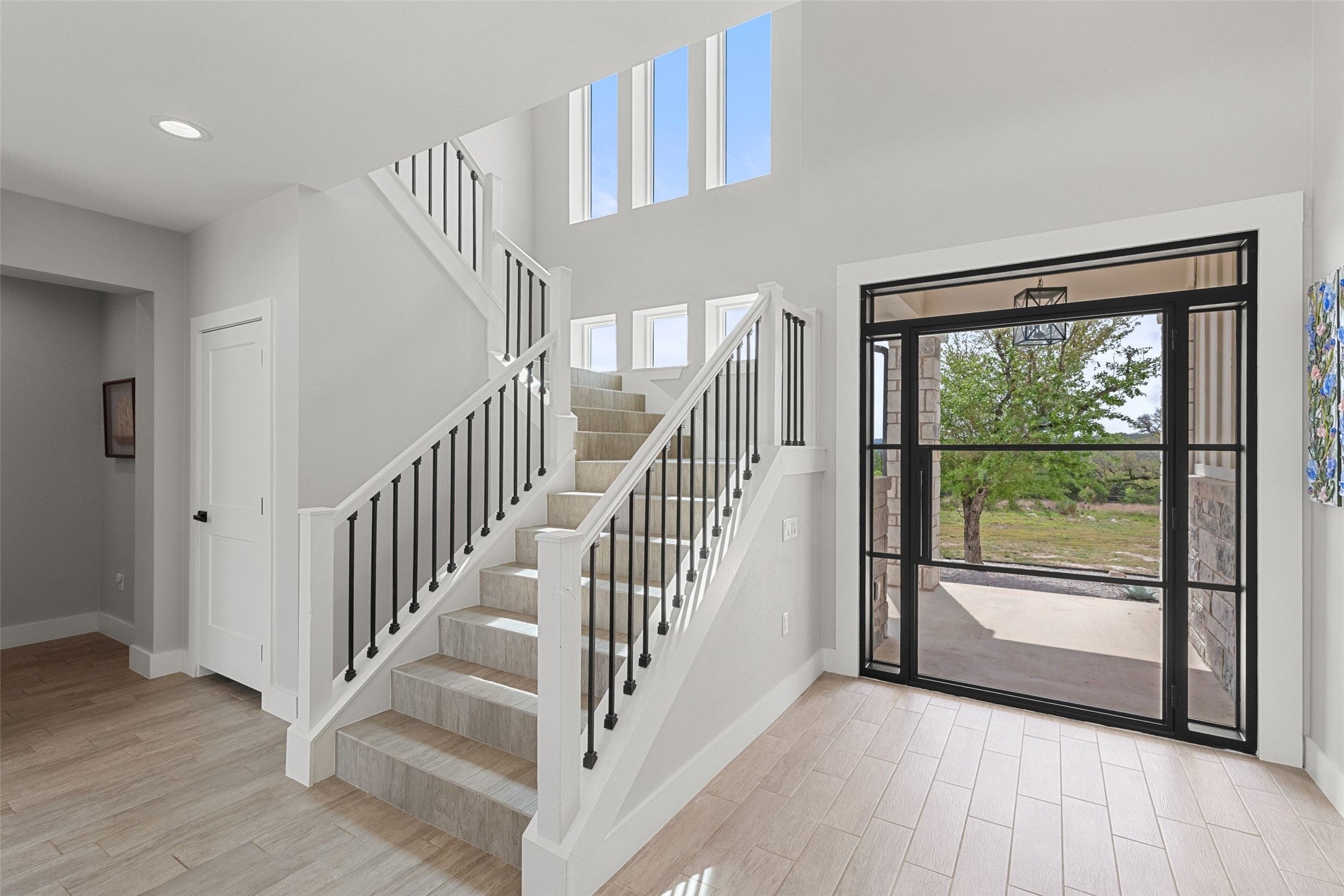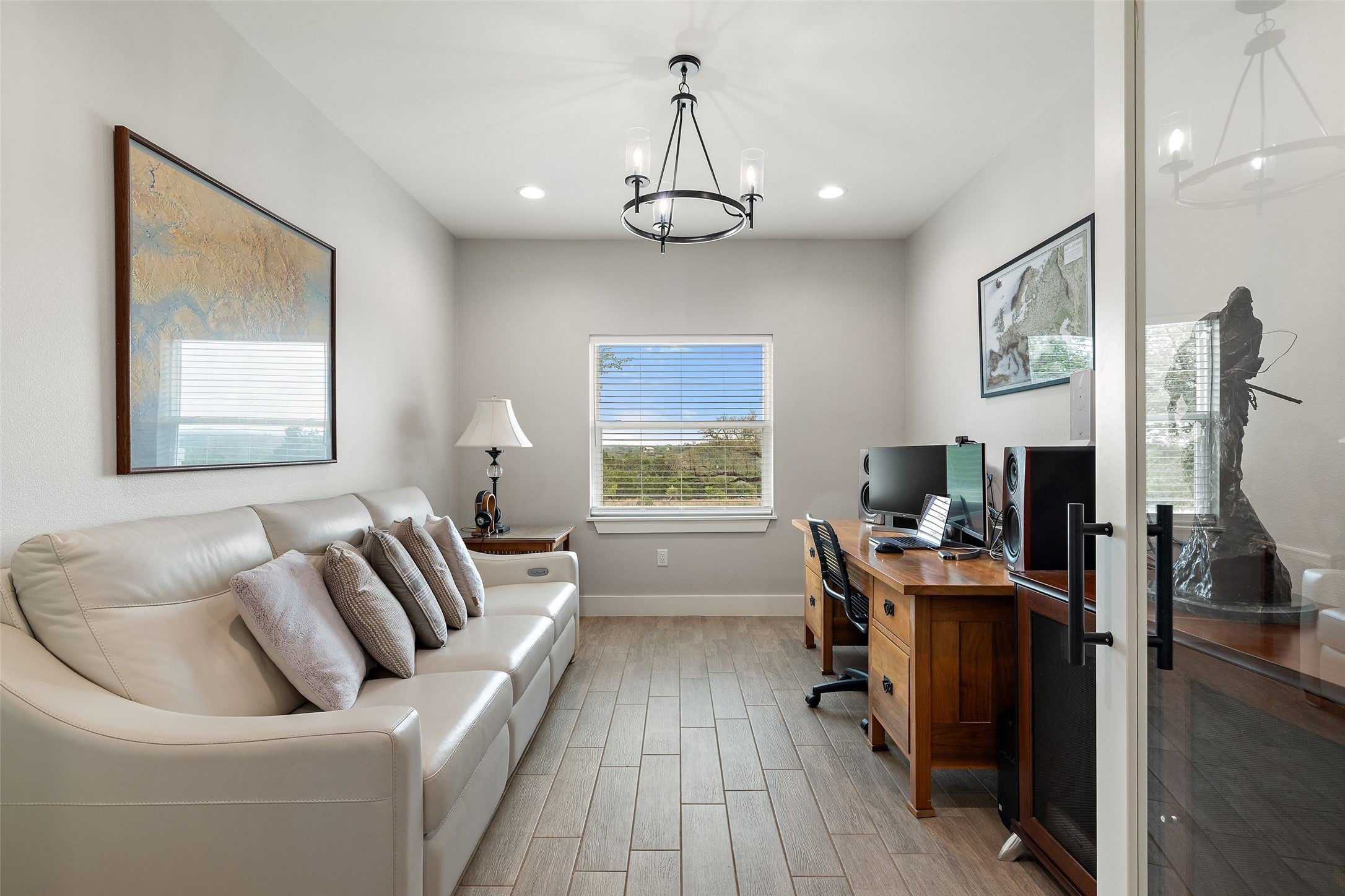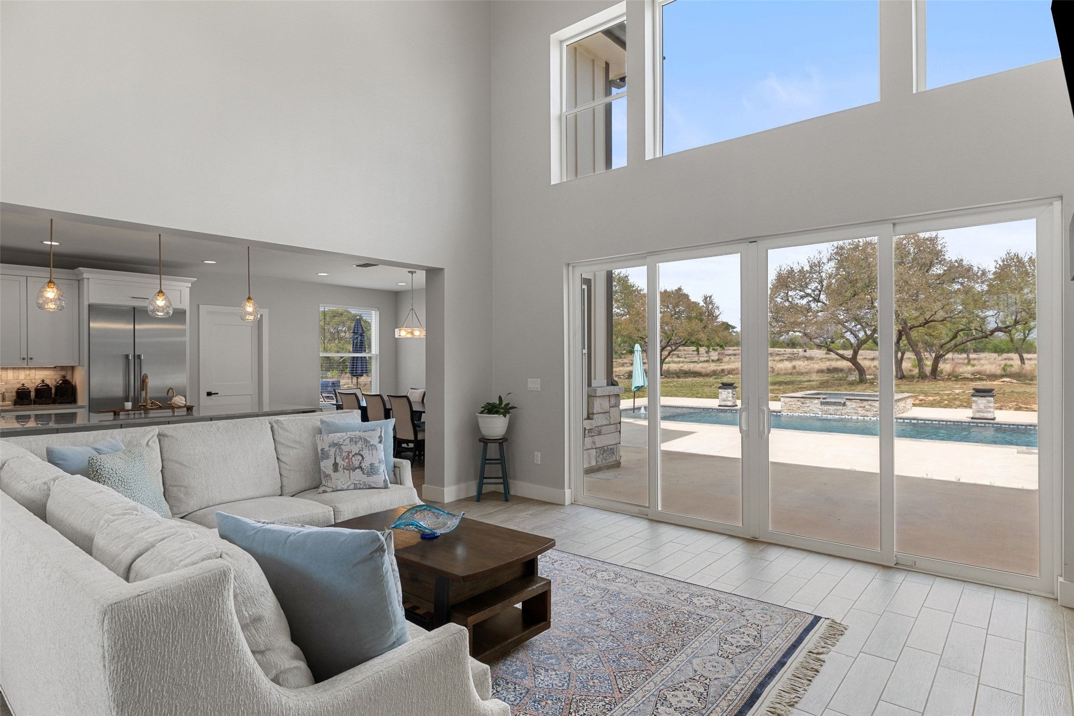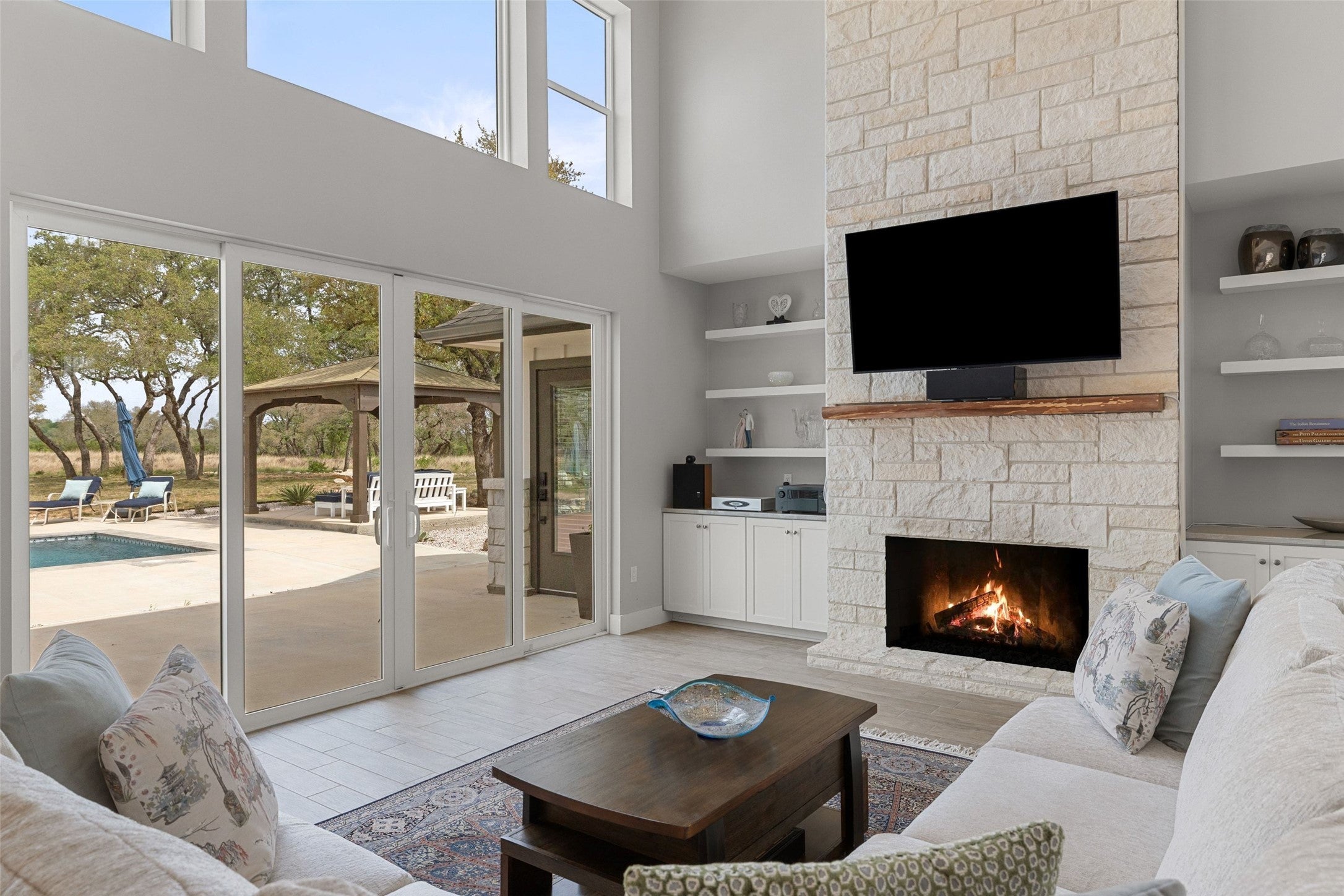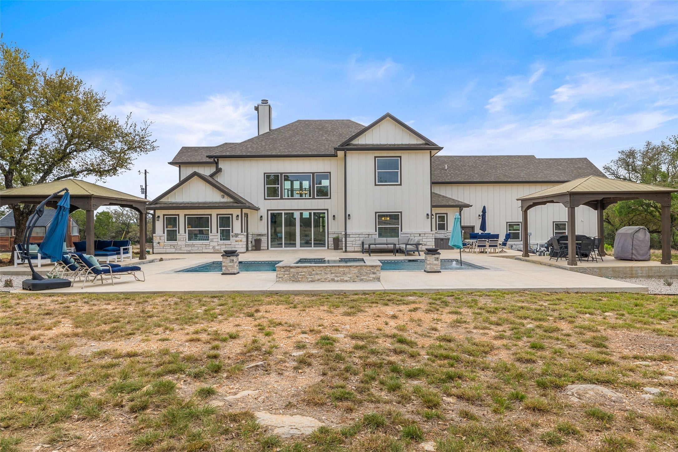 Welcome to Texas Hill Country living at it’s best in Johnson City! This exquisite 4376 sf home sits nestled on 10 secluded acres just one hour from Austin and San Antonio and only 30 minutes to Fredericksburg and 20 minutes to Dripping Springs! This ranchette is fully fenced and gated, surrounded by beautiful oak trees and abundant wildlife. When entering the home, you are greeted by a 20’ tall foyer and living area with a stone fireplace that can be used with wood or propane. The kitchen has quartzite countertops and marble backsplash, with Thermador appliances. The home features custom cabinetry, tile floors, marble showers, champagne bronze fixtures and Bali wood blinds. All kitchen appliances convey as well as an additional refrigerator in the butler’s pantry. There are 4 bedrooms and 3.5 bathrooms with a separate office and an enormous upstairs entertainment/media room with a wet bar and additional storage. When you step outside to the patio area, you are greeted by a 15’x35’ pool with sundeck and a hot tub spa, two relaxing cabana areas to enjoy quietly or with family and guests! The home has a backup generator with auto start and wi-fi capabilities, a maintenance contract is included. There is a 1,000-gallon propane tank that holds enough fuel to run the generator for a month and a 2,500-gallon water holding tank. The shed and greenhouse are both insulated and wired for electricity. This luxury property offers tranquility as well as ample space and accommodations for the ultimate in entertaining. The sellers are in the process of establishing honey bees on the property, and after one more year will offer an Ag exemption for lower taxes! Redundant internet service is available. There is a $30 per year mandatory POA fee, and a $170 per lot voluntary fee for road maintenance. Do not miss this one!