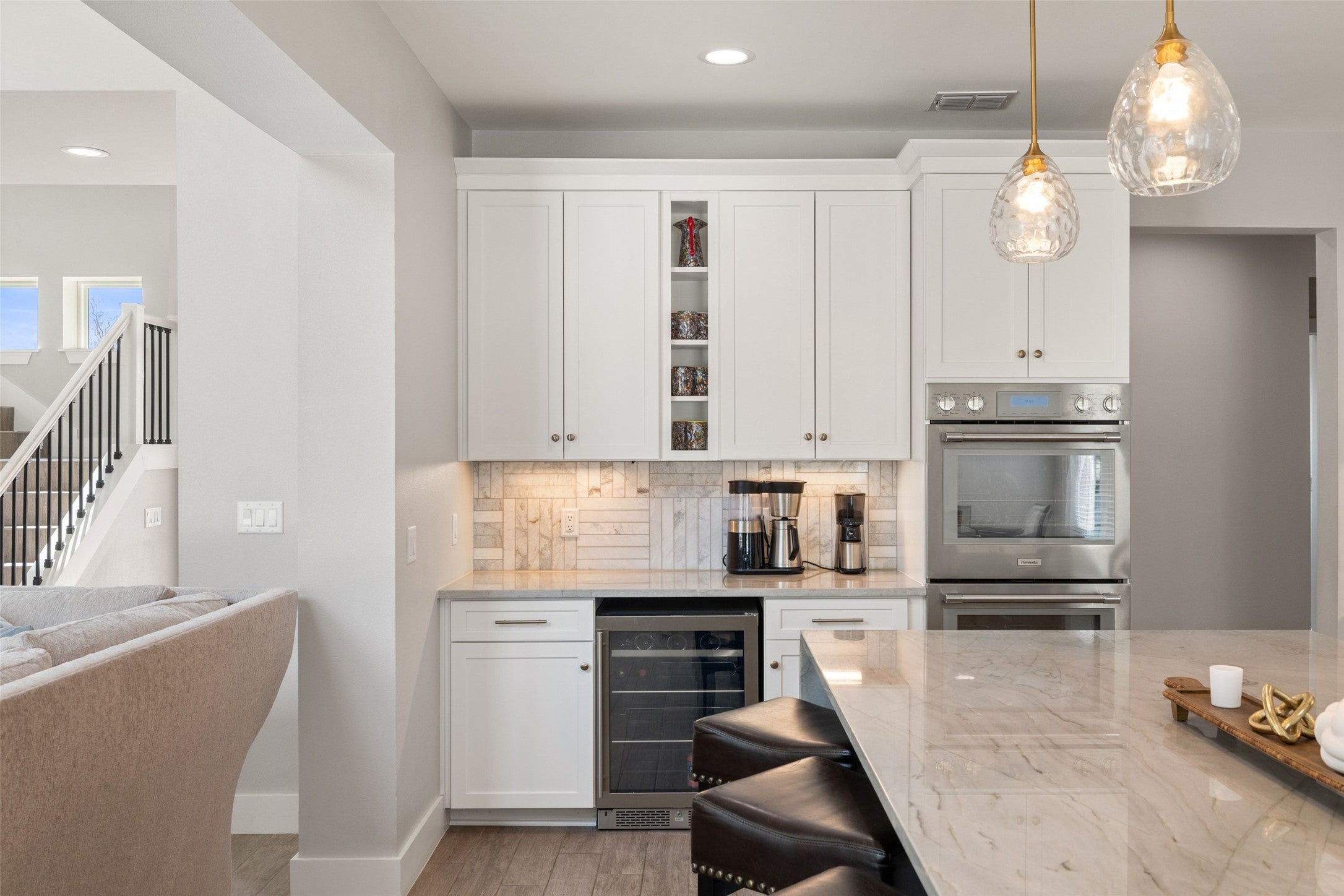 - Built-In Range, Bar Fridge, Dishwasher, Disposal, Gas Range, Refrigerator, Wine Cooler