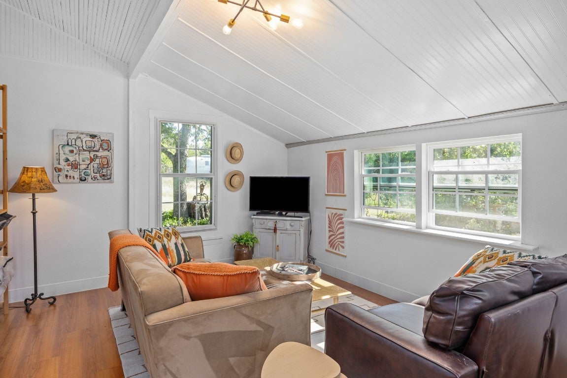 Rare opportunity to own a beautifully restored 1883 farmhouse on 39 +/- acres in the heart of the Texas Hill Country. The main home features 3 bedrooms, 2 bathrooms, 2 living areas, an updated kitchen, original cypress floors, beadboard and shiplap walls, insulated windows, and hardy plank siding on the exterior. The guest house offers additional space with a screened-in porch, a large bathroom, and a bedroom for family or guests. Additionally, new water well is currently being drilled. The property includes multiple barns, a historic cheese cave, a fenced-in garden, and sweeping hilltop views overlooking the valley. Numerous trails, majestic oak trees, native meadows, and abundant wildlife create a private, picturesque setting just minutes from I-10. Ideal for use as a private retreat, homestead, or even event venue. Rich in history and full of potential.