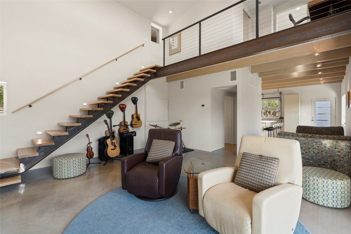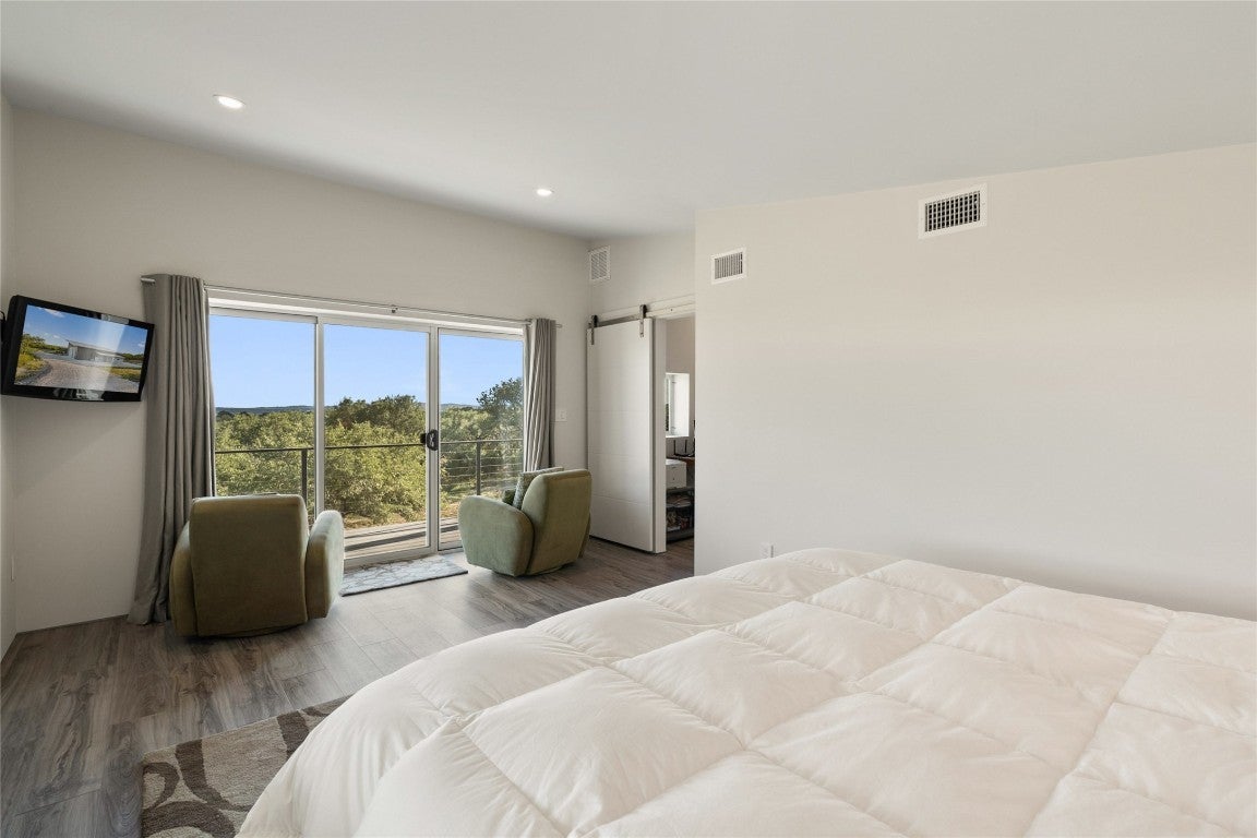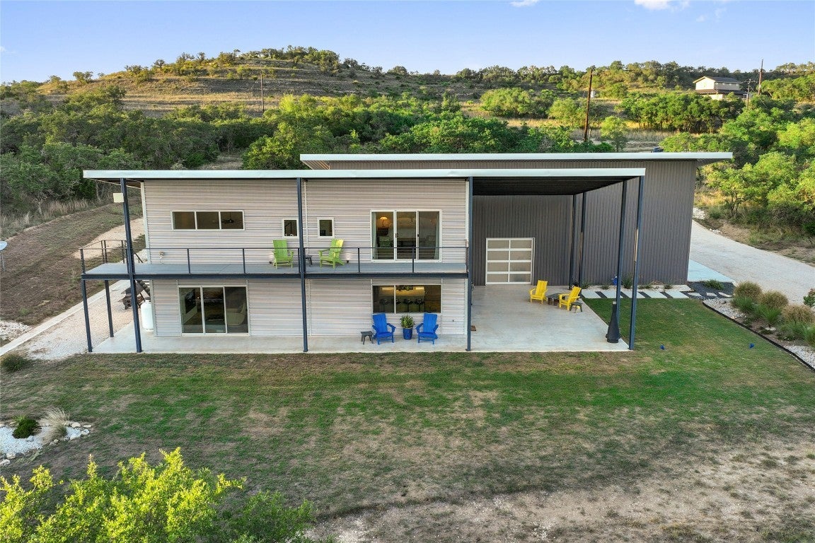 *Owner Financing Available* New Price! Versatile 31.5+/- acres featuring a sleek 1200+/- contemporary guest house and matching 2400+/ sf multipurpose building offer the perfect blend of Hill Country adventure, hunting, agricultural use, privacy and tranquility just 45 mins from Austin or San Antonio to create the ultimate Hill Country Ranchette. Explore the trails by mountain bike or ATV, practice your swing from the Tifway 419 tee box, grow an orchard or vineyard, keep chickens horses and livestock, or simply enjoy the breezy hill country views overlooking the lined pond. Cinco Blanco Ranchette is an easily maintained retreat tucked away in the Hills of Madrone, where you'll find the exquisitely modern and streamlined guest house totally geared toward entertaining. This home pulls the outdoors in with luminous windows, inviting covered decks and features artisan finishes such as the floating hickory stair case and Level 5 drywall for that clean and contemporary feel. The perfect complement to the residential footprint is an expansive, temperature-controlled metal framed building that may be transformed to a main dwelling, currently utilized as both garage and workshop, which is also outfitted with (2) 50amp RV hookups located on the interior and exterior of the barn including cleanout, plus 10’ and 12’ towering roll up doors. Optimally efficient, improvements are wrapped in foam insulation and supported by a 30k gallon rainwater harvesting system. Truly an ideal ranchette for an owner who desires to immediately enjoy their property and potentially build a main residence now or in the future. Additional RV hookups have been installed along the scenic ridge. The property offers a variety of hardwoods: oaks, madrone, red bud and more creating a welcoming habitat for species of songbirds for the property’s wildlife exemption. Axis and whitetail deer graze freely. Minutes to eateries, shopping, wineries, and distilleries with low carrying costs!
