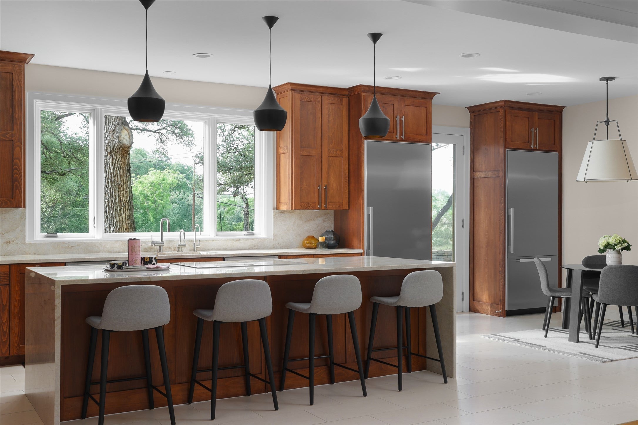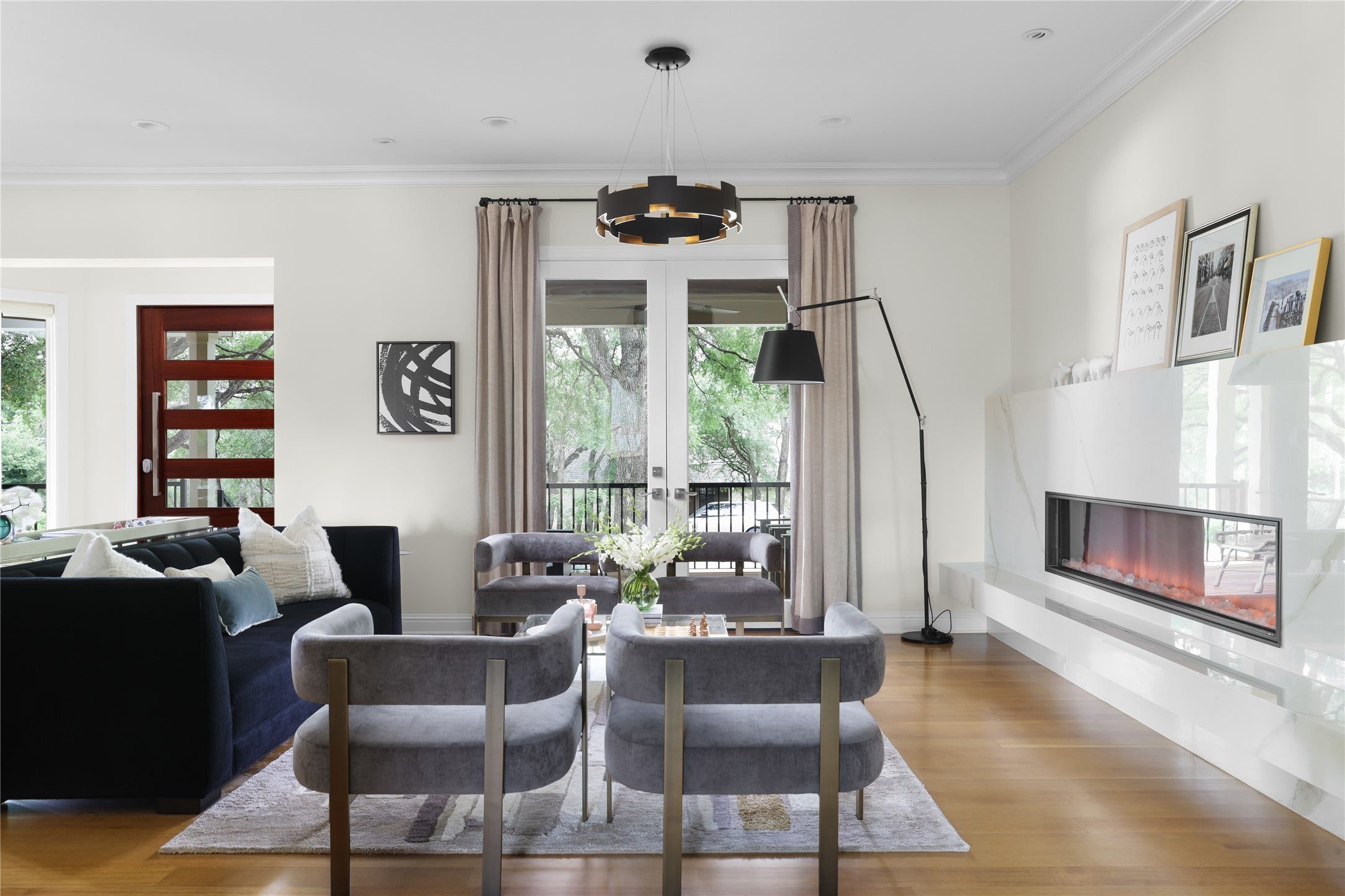 Situated on a wide, oak-lined street in the heart of Rollingwood and within the top-rated Eanes ISD, this stunning, recently updated home offers luxurious living just minutes from downtown Austin. Designed with large families in mind, the flexible floor plan features 5 spacious bedrooms with en-suite baths, plus a study and den—which could function as a 6th bedroom—both with sweeping views of the downtown skyline. The main living area is anchored by a fully remodeled chef’s kitchen, equipped with an impressive Miele appliance suite that includes a steam oven, built-in coffee maker, wine refrigerators, and two full-size Miele refrigerators with freezers. Just off the kitchen, the formal living room features a striking contemporary marble fireplace, while the open dining area is accented by modern Scandinavian chandeliers—creating a warm and inviting space ideal for entertaining. The newly remodeled primary suite offers a spa-like bathroom with double vanity, LED mirrors and spacious his-and-her closets. Additional highlights include an elevator, new roof, and fresh interior and exterior paint completed in 2025. A coveted membership to the Western Hills Athletic Club transfers to the buyer at closing, rounding out this exceptional offering in one of Austin’s most desirable neighborhoods.