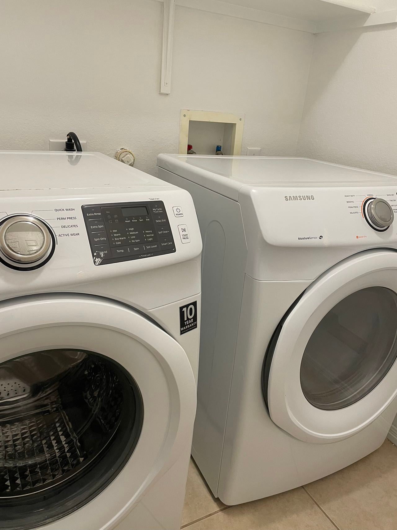 - Dryer, Dishwasher, Electric Cooktop, Electric Range, Free-Standing Range, Disposal, Microwave, Oven, Refrigerator, Washer