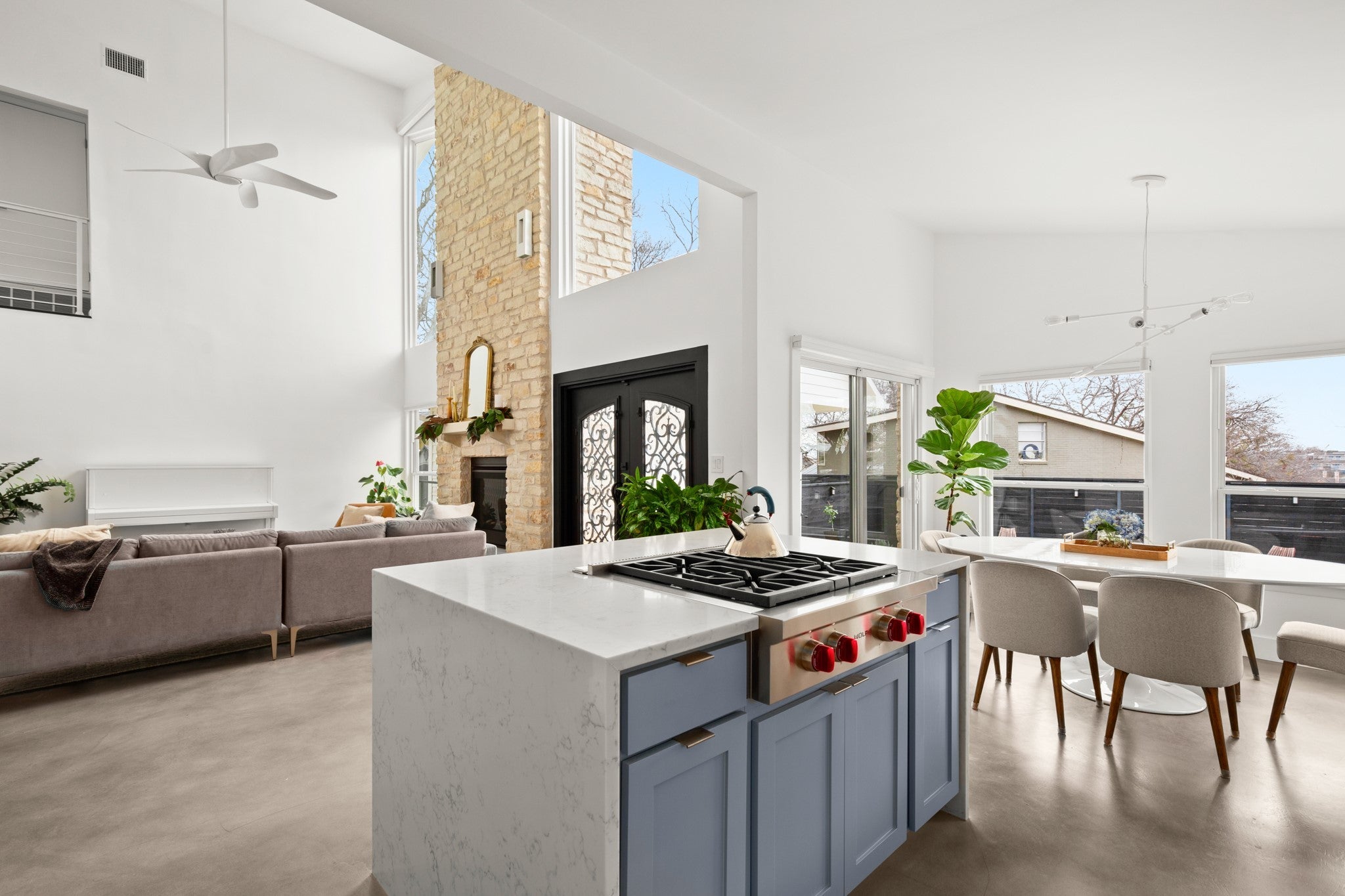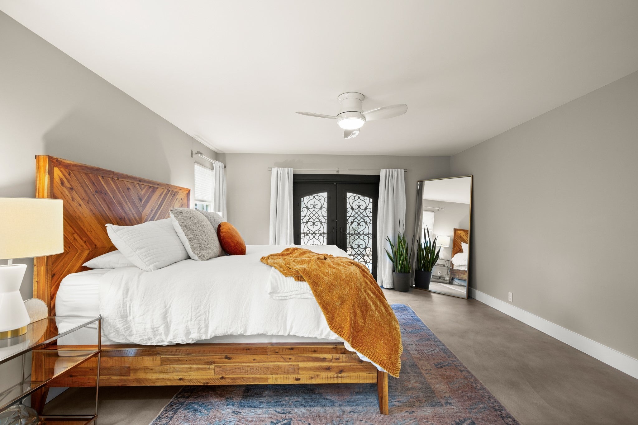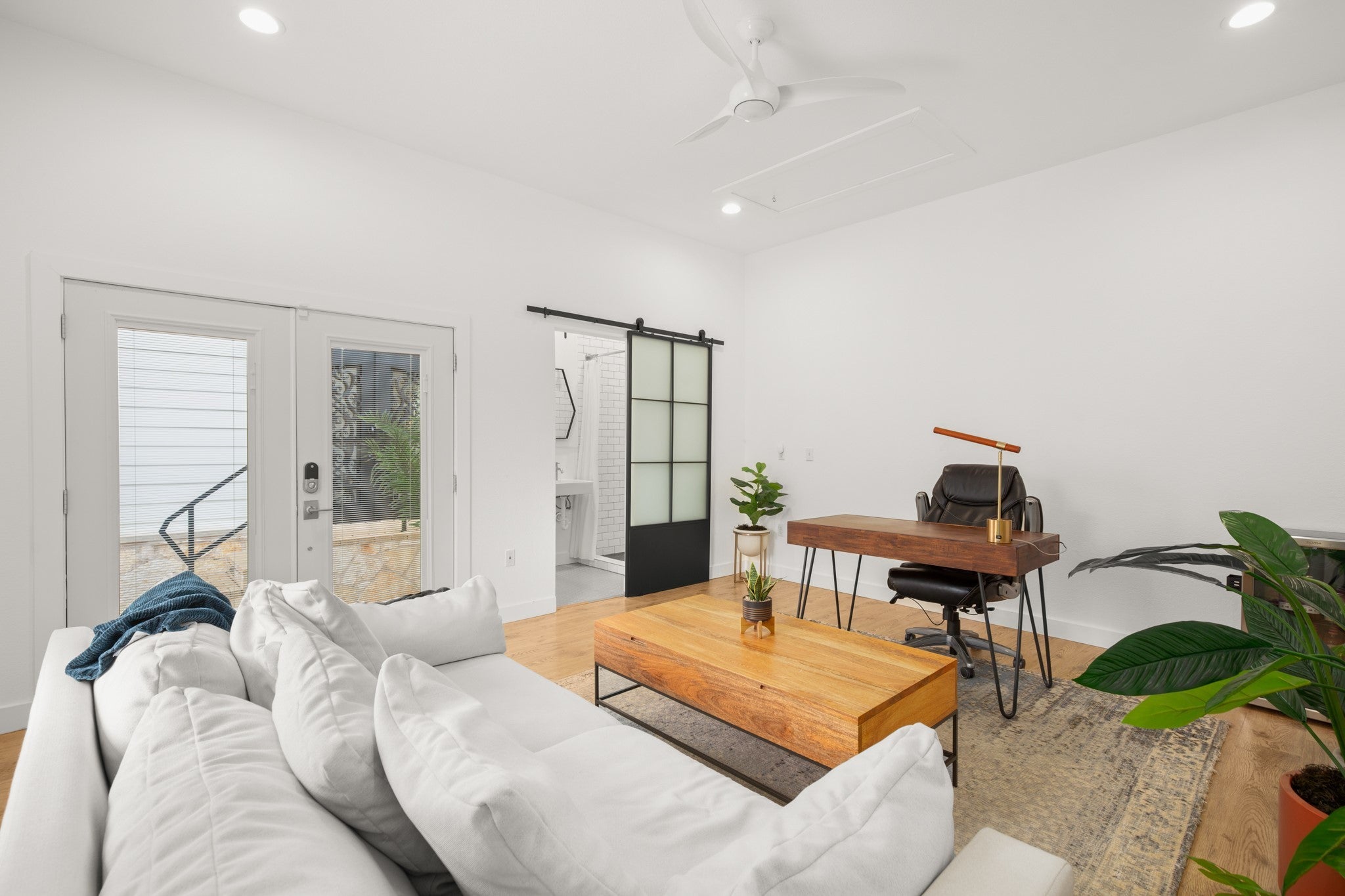 Tucked beneath the canopy of East Travis Heights in Austin, 1813 Crooked Lane invites you into a home where every detail tells a story of thoughtful design and elevated living. From the moment you pass through the custom Exclusive Iron Doors, a sense of craftsmanship unfolds—warm wood tones, a striking iron-and-cedar staircase, and soft natural light filtered through Hunter Douglas automated shades. The heart of the home is a kitchen designed to gather and impress, where a Wolf appliance suite and Sub-Zero refrigeration pair effortlessly with a bespoke Ann Sacks backsplash. It opens seamlessly to the living spaces, where a sleek quartz fireplace anchors moments both lively and quiet. The primary suite becomes a retreat of its own, wrapped in custom marble tile, with spa-inspired finishes that create a sense of calm, while each additional space carries its own curated character. Step outside, and the narrative shifts to effortless Austin living. A private pool glistens under the Texas sun, while the detached guest casita—complete with a custom outdoor shower—sets the stage for hosting friends, accommodating extended family, or weekend entertaining. Sustainability meets sophistication with solar power, a standing seam metal roof, upgraded Ringer windows, and a rainwater collection system, while the garage transforms into a polished extension of the home with epoxy floors, a Tesla charger, and a fully equipped Rogue gym. Beyond the property, the best of Austin is just moments away—from the energy of South Congress to the scenic beauty of Lady Bird Lake. Offered with fully furnished options, this residence is a refined personal escape that also presents a strong short-term rental opportunity—where lifestyle and investment potential come together seamlessly.