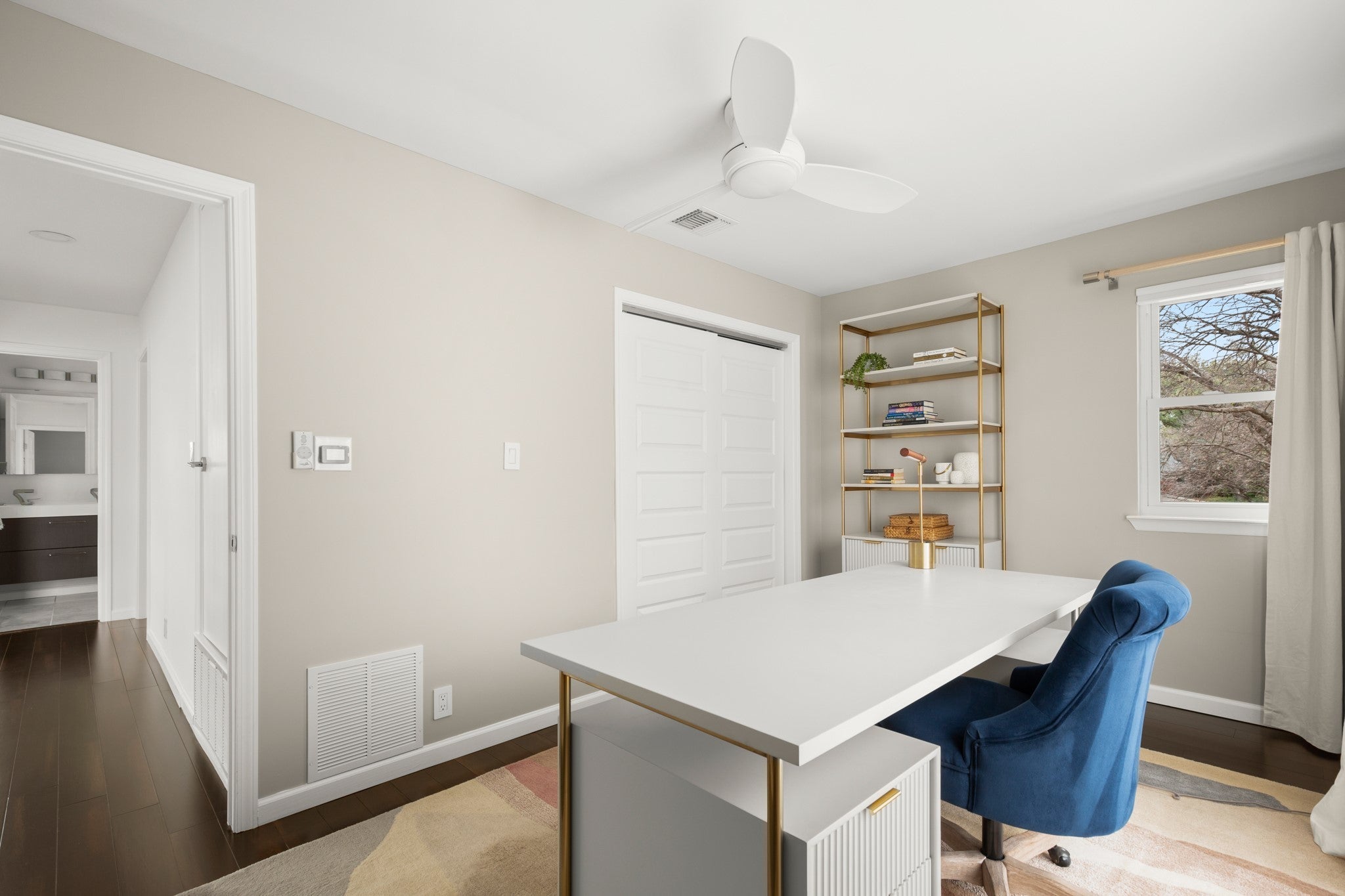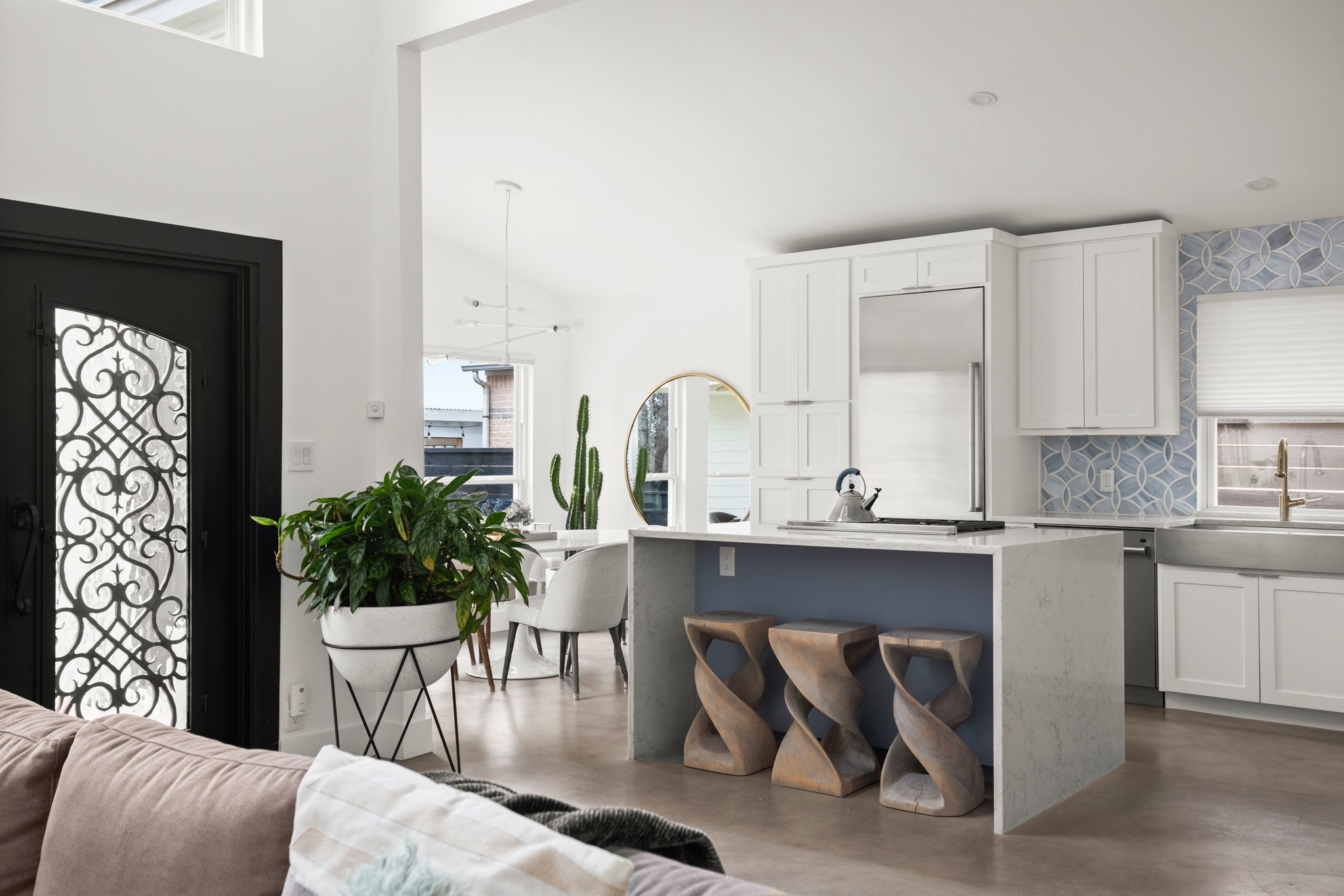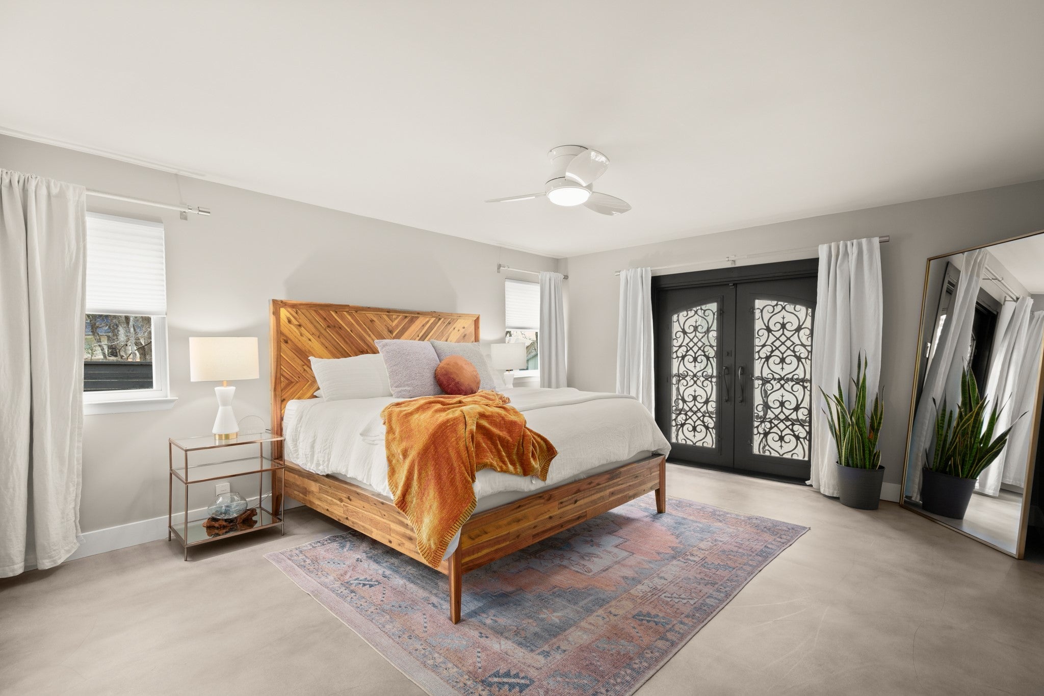 Tucked beneath the canopy of East Travis Heights in Austin, 1813 Crooked Lane invites you into a home where every detail tells a story of thoughtful design and elevated living. From the moment you pass through the custom Exclusive Iron Doors, a sense of craftsmanship unfolds—warm wood tones, a striking iron-and-cedar staircase, and soft natural light filtered through Hunter Douglas automated shades. The heart of the home is a kitchen designed to gather and impress, where a Wolf appliance suite and Sub-Zero refrigeration pair effortlessly with a bespoke Ann Sacks backsplash. It opens seamlessly to the living spaces, where a sleek quartz fireplace anchors moments both lively and quiet. The primary suite becomes a retreat of its own, wrapped in custom marble tile, with spa-inspired finishes that create a sense of calm, while each additional space carries its own curated character. Step outside, and the narrative shifts to effortless Austin living. A private pool glistens under the Texas sun, while the detached guest casita—complete with a custom outdoor shower—sets the stage for hosting friends, accommodating extended family, or weekend entertaining. Sustainability meets sophistication with solar power, a standing seam metal roof, upgraded Ringer windows, and a rainwater collection system, while the garage transforms into a polished extension of the home with epoxy floors, a Tesla charger, and a fully equipped Rogue gym. Beyond the property, the best of Austin is just moments away—from the energy of South Congress to the scenic beauty of Lady Bird Lake. Offered with fully furnished options, this residence is a refined personal escape that also presents a strong short-term rental opportunity—where lifestyle and investment potential come together seamlessly.