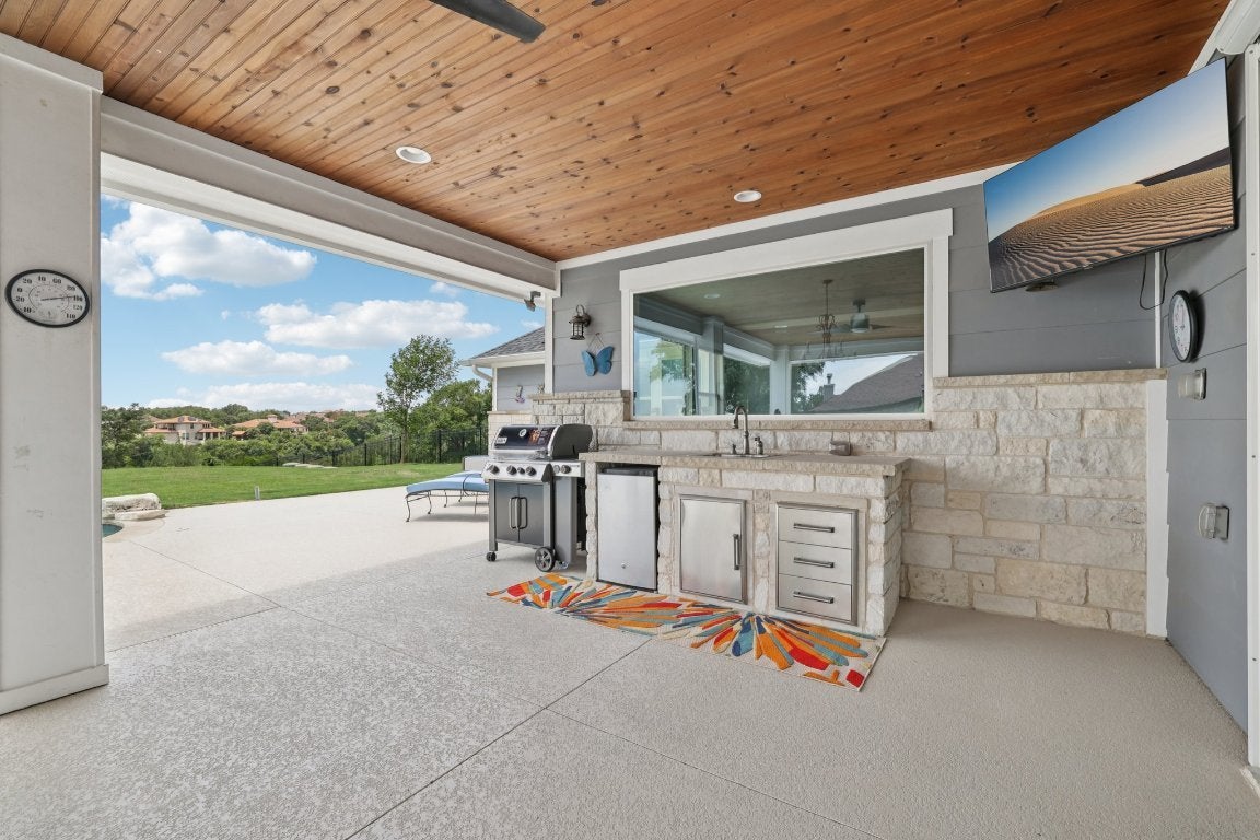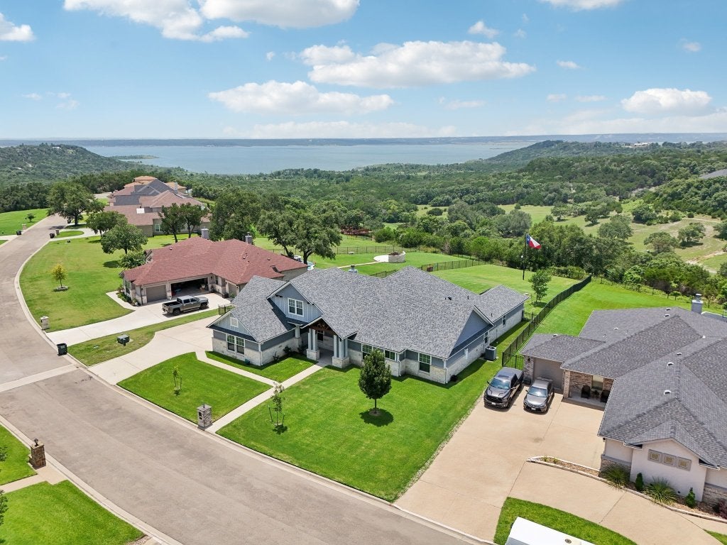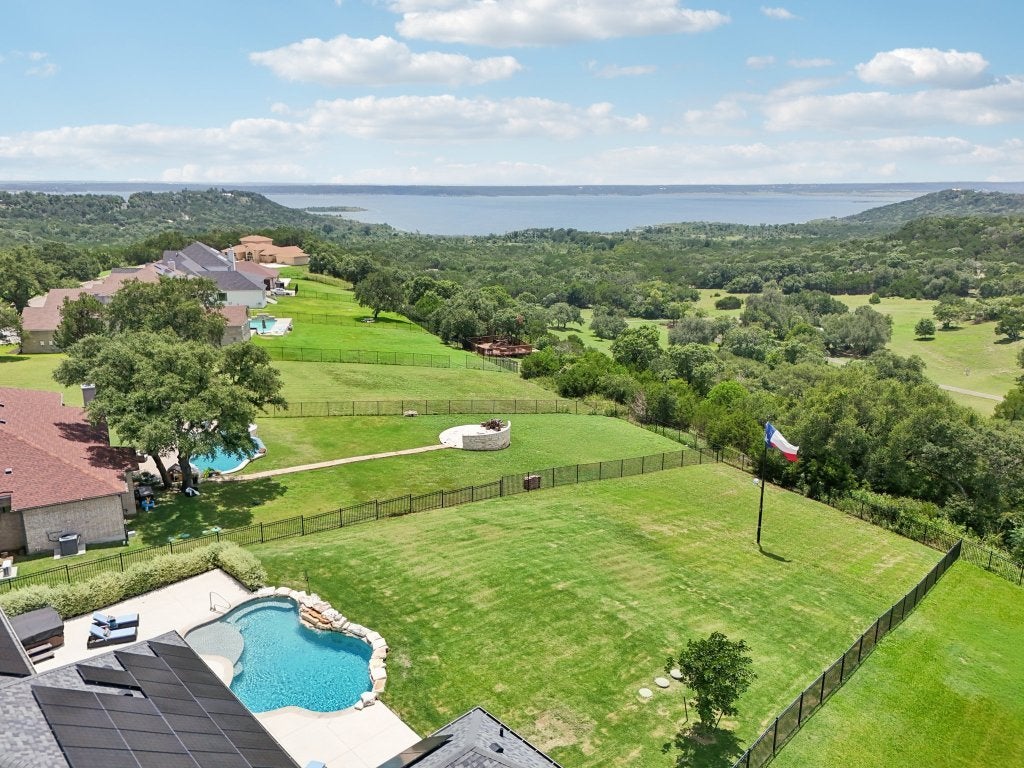Welcome to your dream home, an exceptional luxury retreat offering stunning panoramic views of Stillhouse Hollow Lake from nearly every room. This elegantly designed home features a spacious living area with floor-to-ceiling windows, custom built-ins, and a beamed ceiling that creates a warm, yet sophisticated atmosphere. The chef’s kitchen is a culinary masterpiece, complete with a 6-burner gas stove, stainless steel appliances, prep sink, wet bar, and ample counter space for entertaining. Unwind in the serene primary suite, where you'll wake up to breathtaking lake views each morning. Step outside into your own private backyard oasis, featuring a sparkling pool with a waterfall, an outdoor kitchen, and a convenient poolside half bath, an entertainer’s dream. Additional highlights include a dedicated pool storage room, solar panels, a safe room, and an automatic attic elevator for effortless storage access to the 1500 square foot, decked and foam insulated attic. New carpet, and paint throughout the home, as well as new pool decking all in 2025. Neighborhood amenities include hike and bike trails, park, and sport court. Perfectly located just 3 miles from the boat launch and lake picnic area, and only 7 miles from the vibrant charm of downtown Belton, where you’ll find famous BBQ spots, live music venues, boutique shops, and more. This exceptional home combines luxury, comfort, and thoughtful design with unbeatable views and amenities. Don’t miss your chance to own this one-of-a kind lakeview sanctuary.
