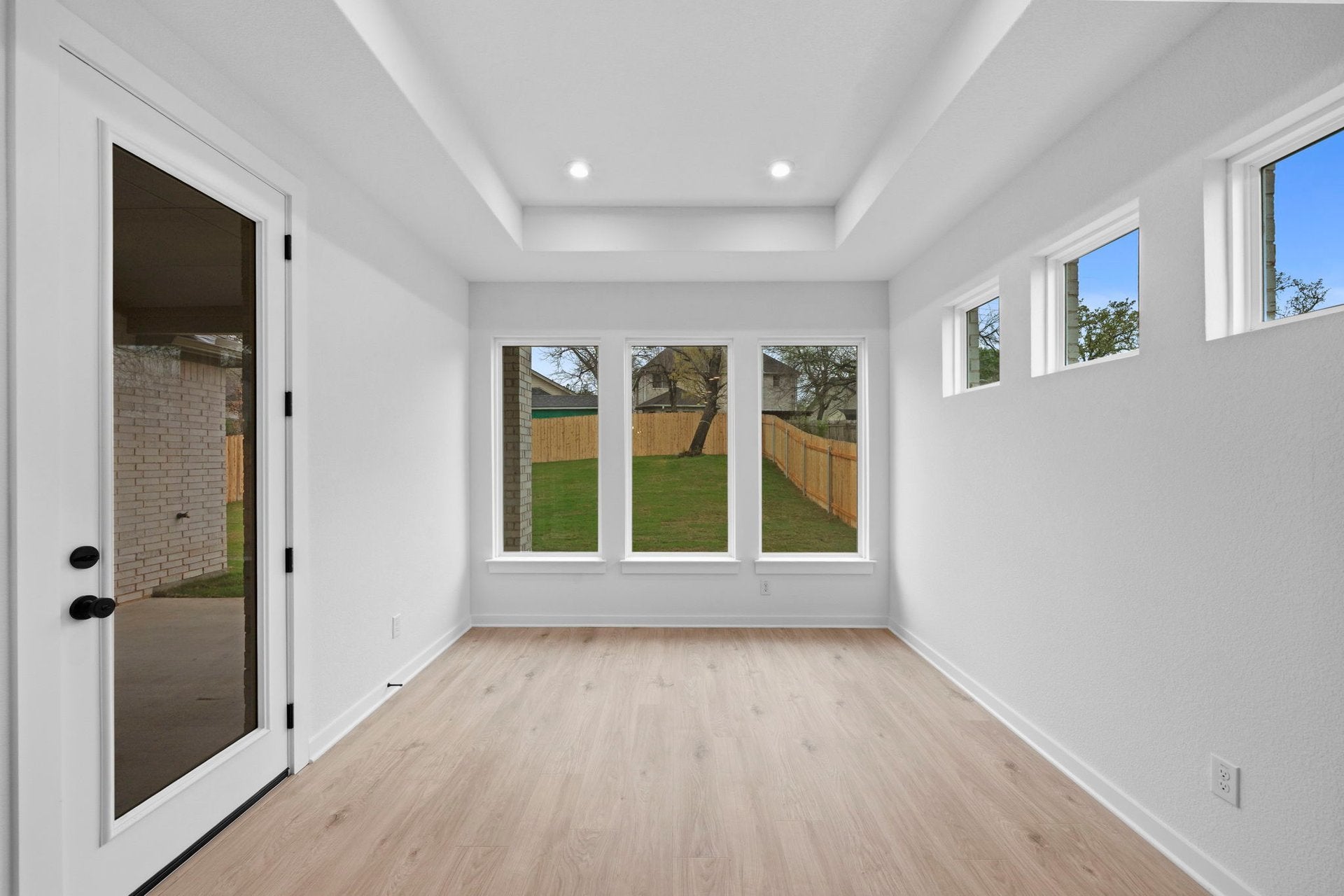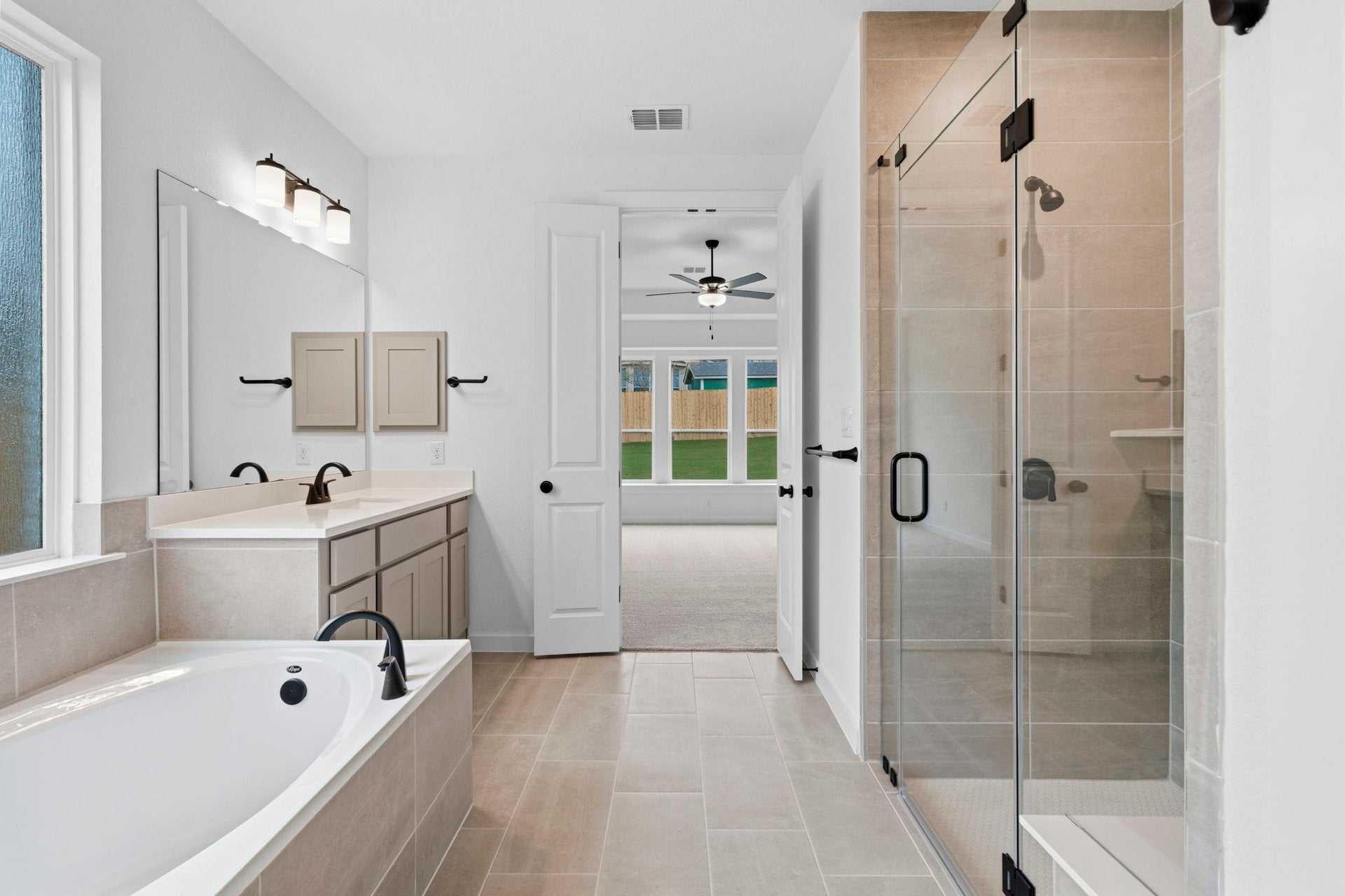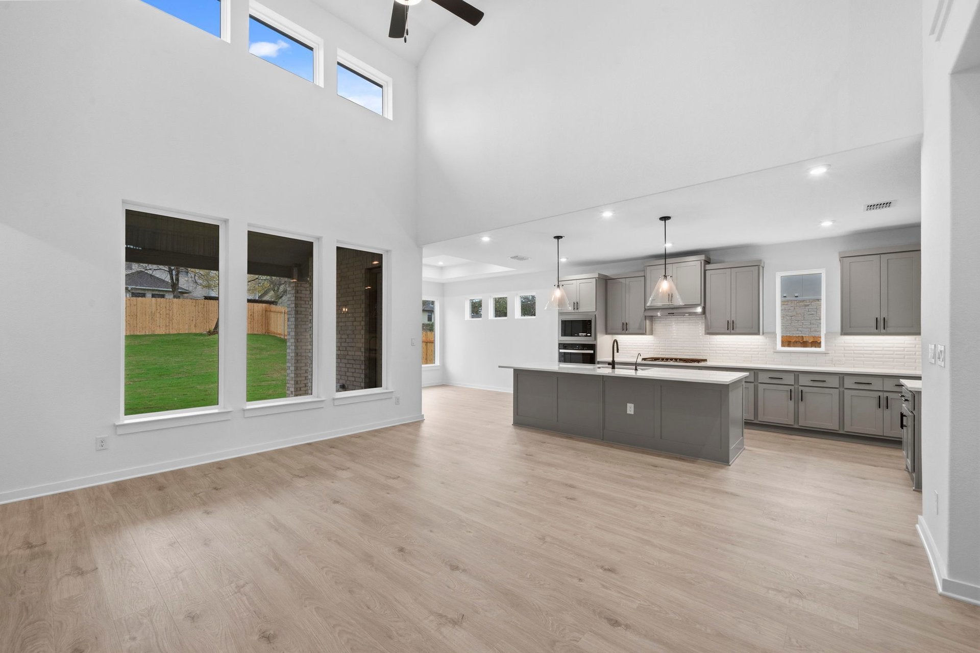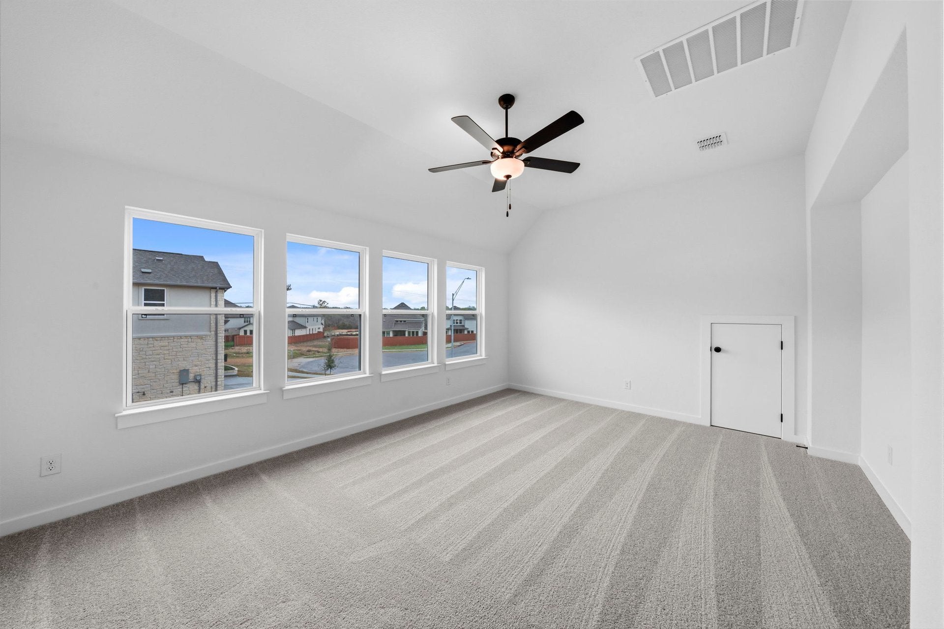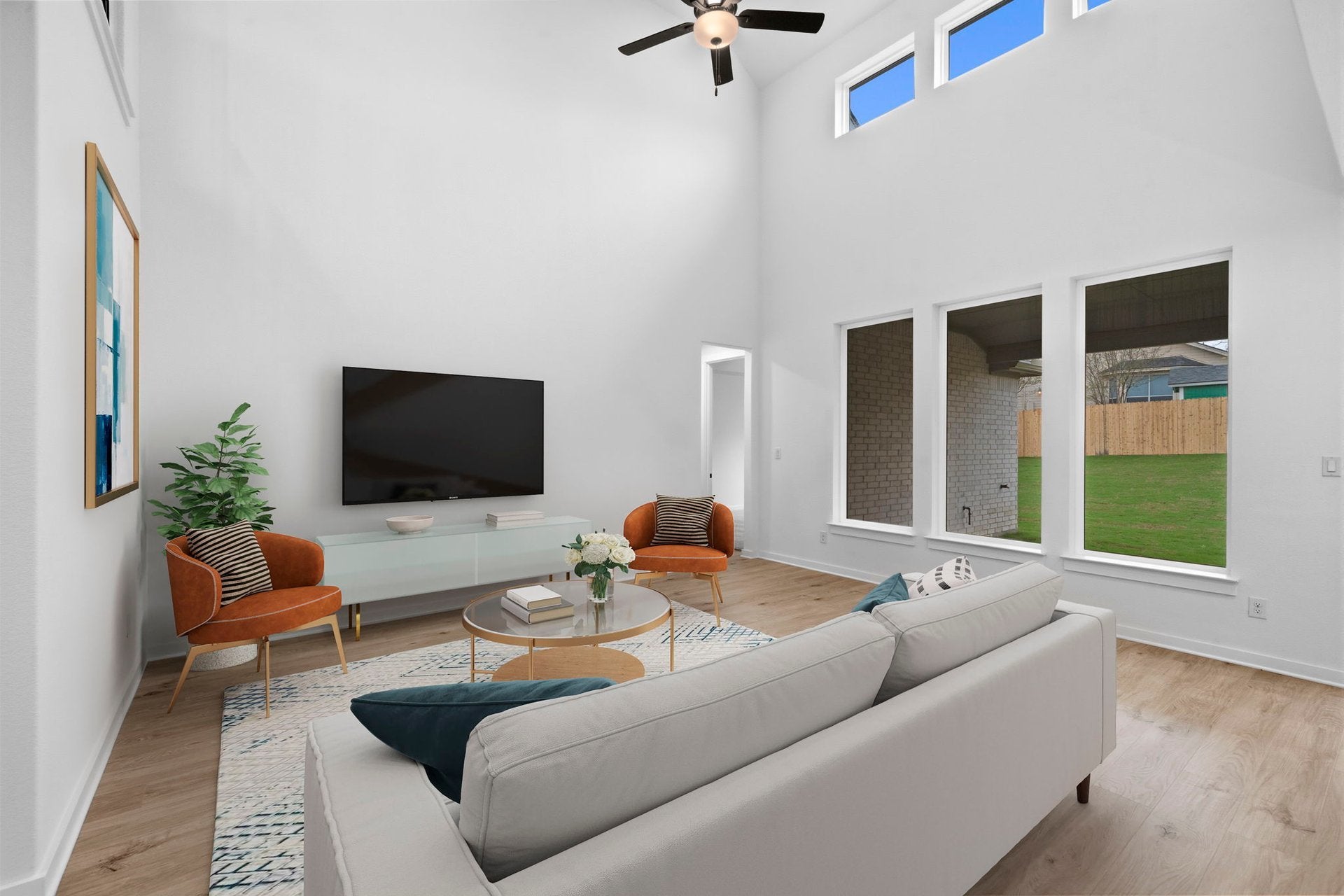 New Coventry Home! The popular East-facing Dumont floor plan offers ample space for everyone. Step through the 8’ entry door into a soaring two-story foyer that leads past a private study and the first of four bedrooms. Beyond the elegant wrought-iron staircase lies a grand living area with 19’ ceilings. The adjacent gourmet kitchen features built-in stainless-steel appliances, 42" cabinets, quartz countertops, and an oversized walk-in pantry with convenient countertop space. The connected dining area opens to an expansive covered patio overlooking a fully landscaped, irrigated backyard. Unwind in the primary suite retreat, complete with dual vanities, a soaking tub, separate shower, and a spacious walk-in closet. Upstairs, discover two additional bedrooms, a full bath, a media room, and a game room. Schedule your tour today and experience the thoughtful design and exceptional lifestyle offered in Sauls Ranch East, right in the heart of Round Rock! ** Ask us about our low interest rates & special financing! Visit Onsite for details – subject to change without notice. **