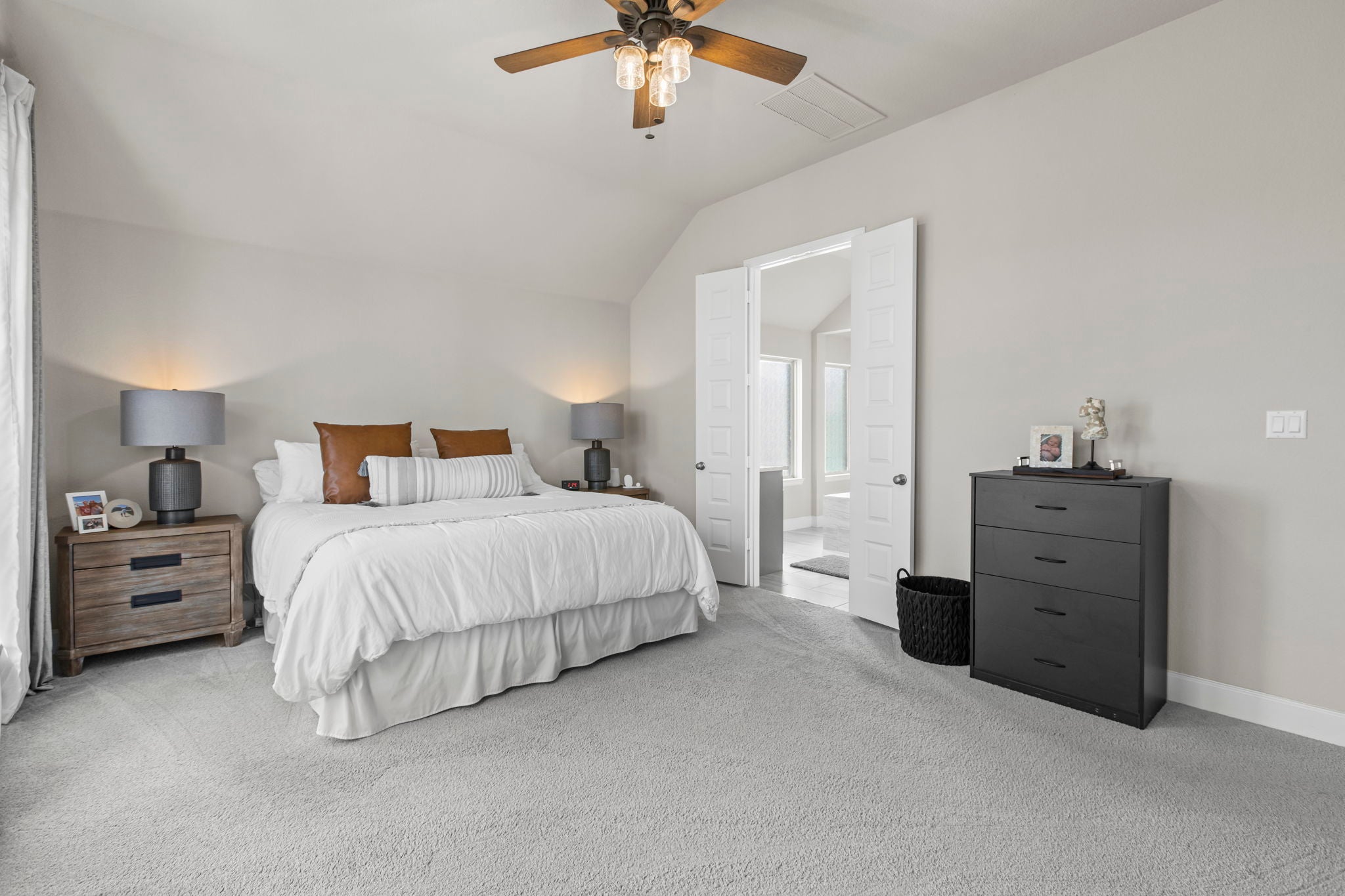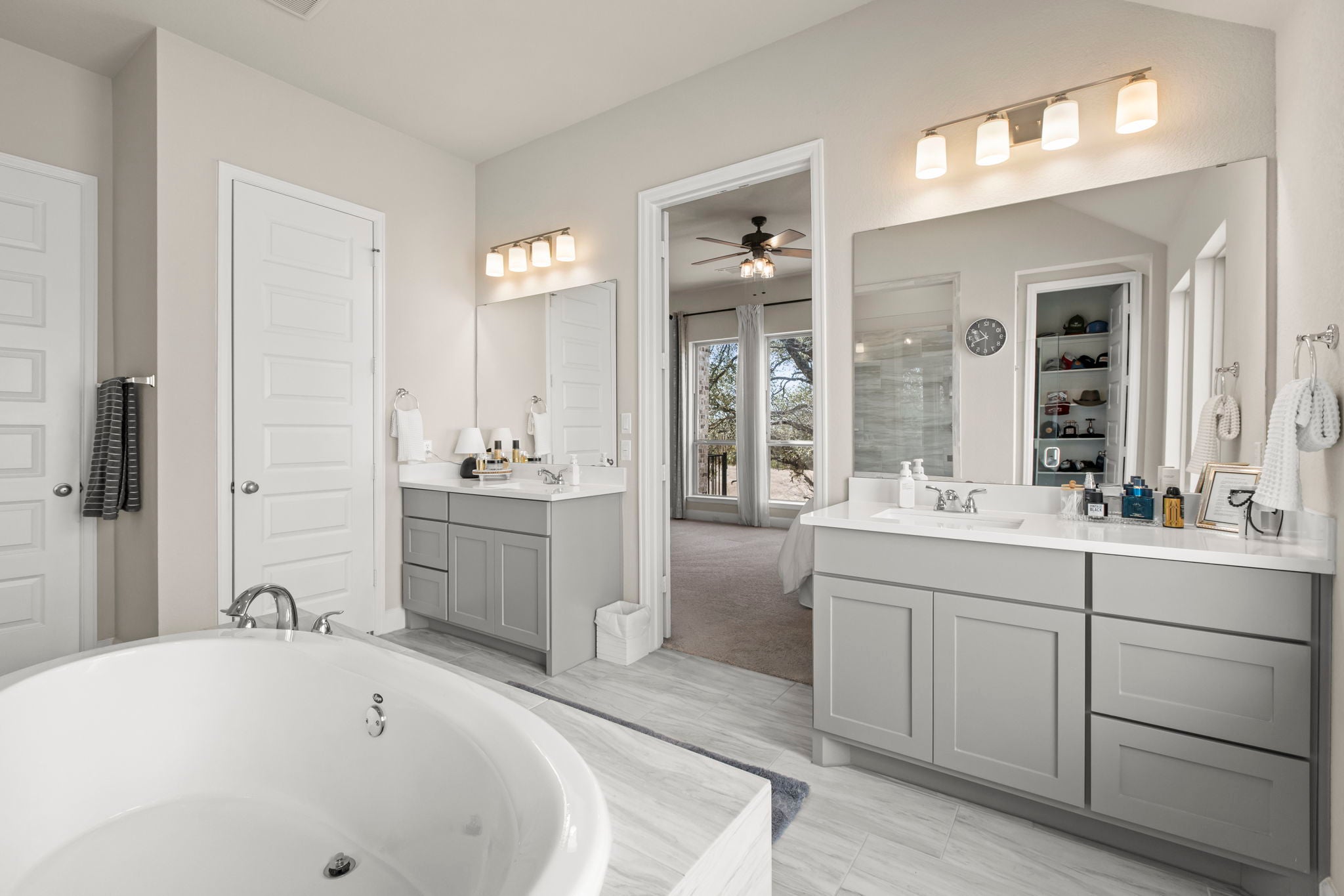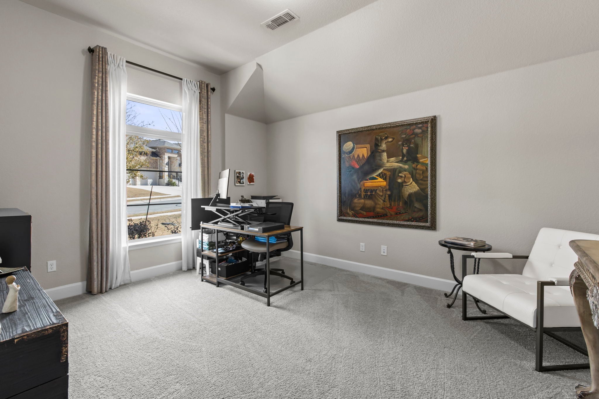Welcome to this exceptional east-facing, single-story ranch-style luxury home built by Perry Homes, perfectly situated on a private greenbelt lot in the highly sought-after Parkside on the River. This beautifully designed residence offers 4 bedrooms, 3 full bathrooms, and 2,583 sq ft of thoughtfully planned living space. A grand entry with 12-foot ceilings and an extended hallway creates an impressive first impression, with a game room featuring French doors just off the foyer. The spacious family room showcases a wall of windows that fills the home with natural light and captures serene greenbelt views. The open-concept kitchen is a chef’s dream, featuring a large island with built-in seating, 5-burner gas cooktop, and a corner walk-in pantry. The private primary suite also enjoys a wall of windows and a spa-like bath with dual vanities, garden tub, glass-enclosed shower, and two walk-in closets. A guest suite with its own full bath and walk-in closet is located near the entry—perfect for visitors or multigenerational living. Secondary bedrooms all include walk-in closets. The utility room offers direct access to the primary bath, and a mudroom sits just off the two-car garage for added convenience. Step outside to an extended covered patio with no rear neighbors, providing peaceful views and exceptional privacy. Ideally located just steps from the community amenity center and minutes from San Gabriel Park, Wolf Ranch Town Center, Lakewood Park, The Parke, and the H-E-B Center at Cedar Park. Enjoy easy access to Ronald Reagan Blvd, TX-2243, and I-35, with shopping and dining just 5–8 minutes away. Residents of Parkside on the River enjoy resort-style amenities, including pools, an amenity center, pickleball courts, and scenic trails. This home perfectly blends luxury, comfort, privacy, and location—a true place to call home.