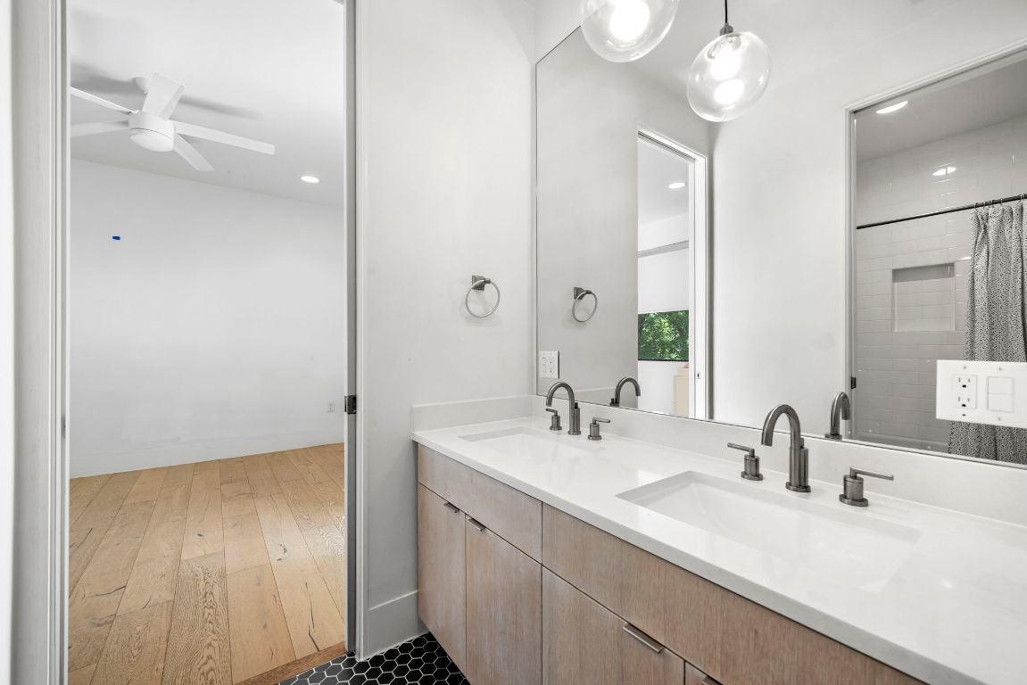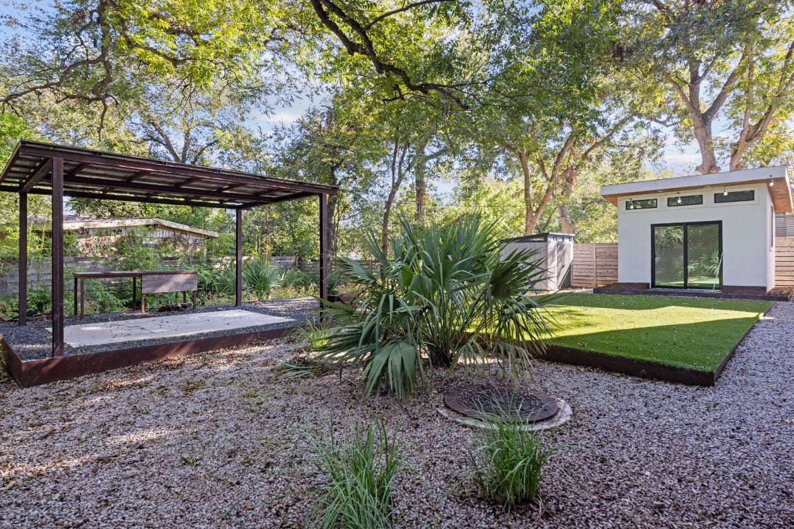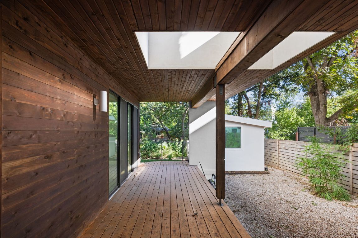 Welcome to your dream home in the heart of Travis Heights! This stunning modern house features 3 spacious bedrooms and 2.5 beautifully designed bathrooms, offering an ideal blend of luxury, comfort, and functionality. The open living concept allows for seamless transitions between the living, dining, and kitchen areas, making it perfect for gatherings and family time. The gourmet chef’s kitchen is a true delight, equipped with high-end appliances and a commercial-sized fridge to meet all your culinary needs. Step outside to discover a huge private backyard, fully shaded by majestic pecan trees and professionally landscaped with water-wise plants and xeriscaping for easy maintenance. The artificial turf ensures a lush green lawn year-round without the hassle. Enjoy your morning coffee or evening sunsets on the cozy balcony, and take advantage of the separate home office structure, perfect for remote work or creative pursuits. With a long, covered patio ideal for outdoor dining and entertaining, this home truly embodies the best of indoor and outdoor living. Situated in the vibrant Travis Heights neighborhood, you’ll be just minutes away from parks, local shops, and dining options, blending urban convenience with a serene residential feel. Don’t miss the opportunity to own this modern gem—schedule a tour today and experience the perfect blend of style, comfort, and outdoor living! Discounted rate options and no lender fee future refinancing available for qualified buyers of this home.