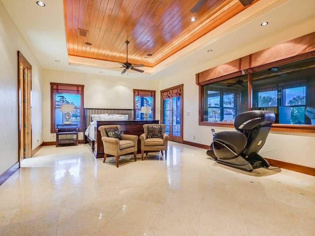 Nestled on approximately 108 acres of picturesque landscape, this exceptional ranch property offers a harmonious blend of luxury and functionality. The one-story main house, spanning 7,200 +/- square feet, boasts 3 bedrooms and 4 bathrooms, providing ample space for comfortable living and entertainment. Additionally, a spacious 2000+/- square foot guest house with 2 bedrooms and 2 bathrooms, along with a garage-shop apartment featuring 1 bedroom and 1 bathroom, ensures accommodations for family and friends. Outdoor amenities abound, including a refreshing pool, a generously sized 60 by 180 steel building covering over 10,000 square feet, and a convenient helicopter pad. The property's natural beauty is further accentuated by a 3.5-acre stock pond and a serene dock with seating, offering moments of tranquility. Thoughtful details such as 4 custom-built cattle guards and 4 cattle watering tanks showcase its suitability for ranching. Situated in close proximity to the charming town of Round Top, and between Austin and Houston, this property stands as an idyllic ranch retreat that seamlessly combines elegance with rural living.*Buyer to independently verify all information such as square footage, acreage, restrictions, exemptions, schools, taxes, etc.