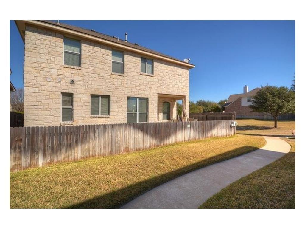 Come check out this beautiful 4-bedroom, 2.5-bath home with a 2-car garage located in the popular, gated Round Rock Ranch community. This all-sides stone masonry home offers timeless curb appeal and thoughtful design throughout. The main level features a private study that can easily serve as a 4th bedroom, along with a spacious family room highlighted by a gas-starter, wood-burning fireplace with a tile hearth—perfect for cozy evenings. The gourmet kitchen boasts oak cabinetry, tile backsplash, neutral countertops, a pantry, and is conveniently located near the utility room and half bath. Upstairs, the expansive primary suite offers two separate walk-in closets and a spa-like bath with a separate shower, garden tub, and marble countertops. Secondary bathrooms upstairs also feature elegant marble counters. Enjoy outdoor living on the extended patio overlooking a fenced backyard, complete with a full sprinkler system. Residents of Round Rock Ranch enjoy access to a community pool and play area, adding to the lifestyle appeal of this exceptional home. Move-in ready and beautifully maintained—this one is a must-see!
