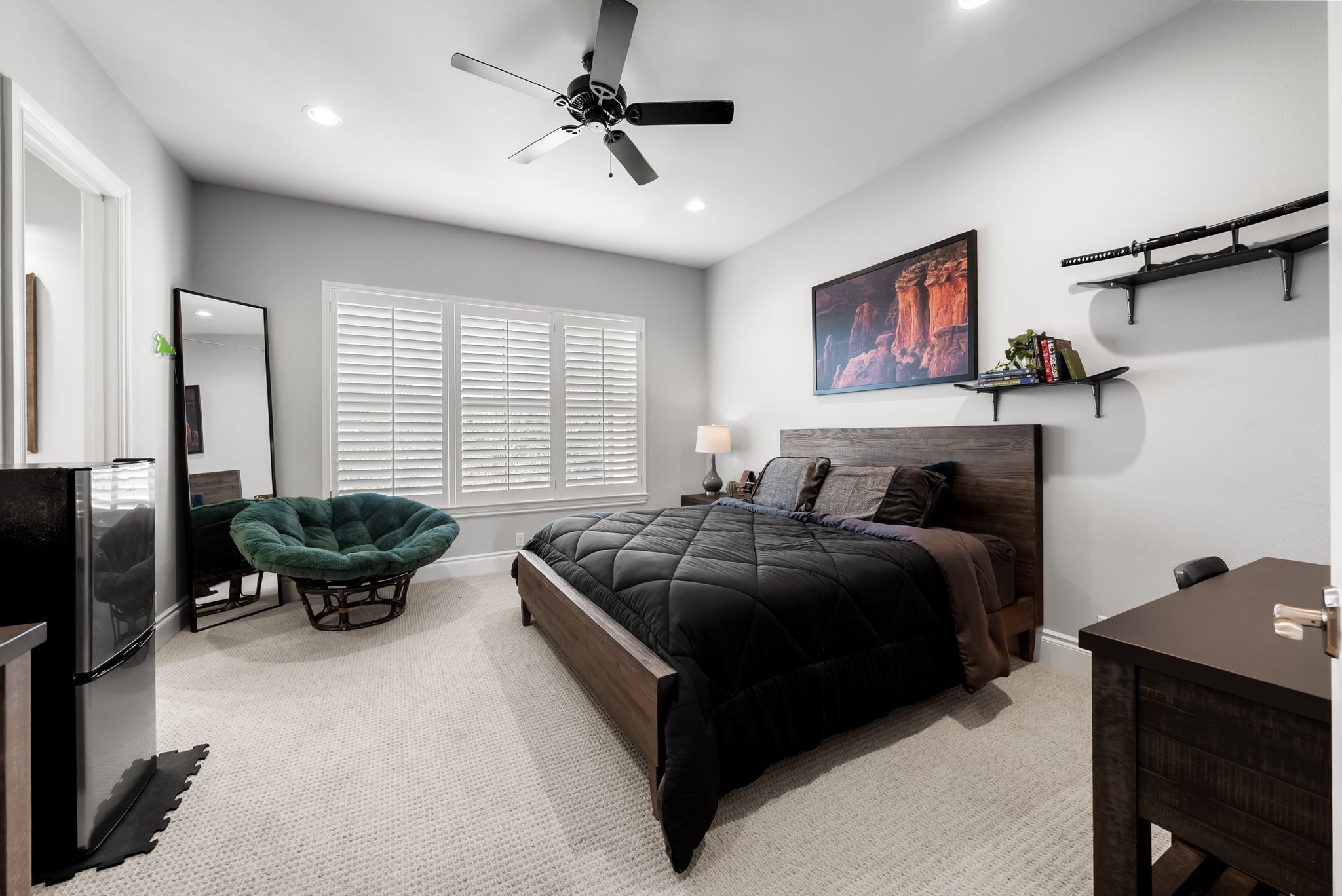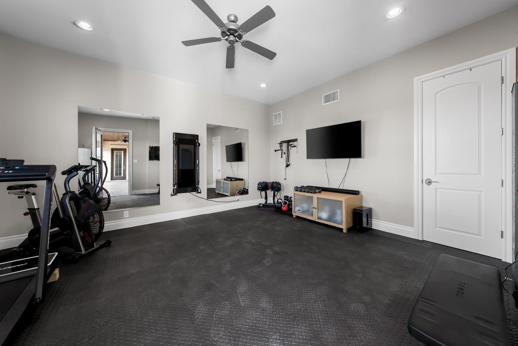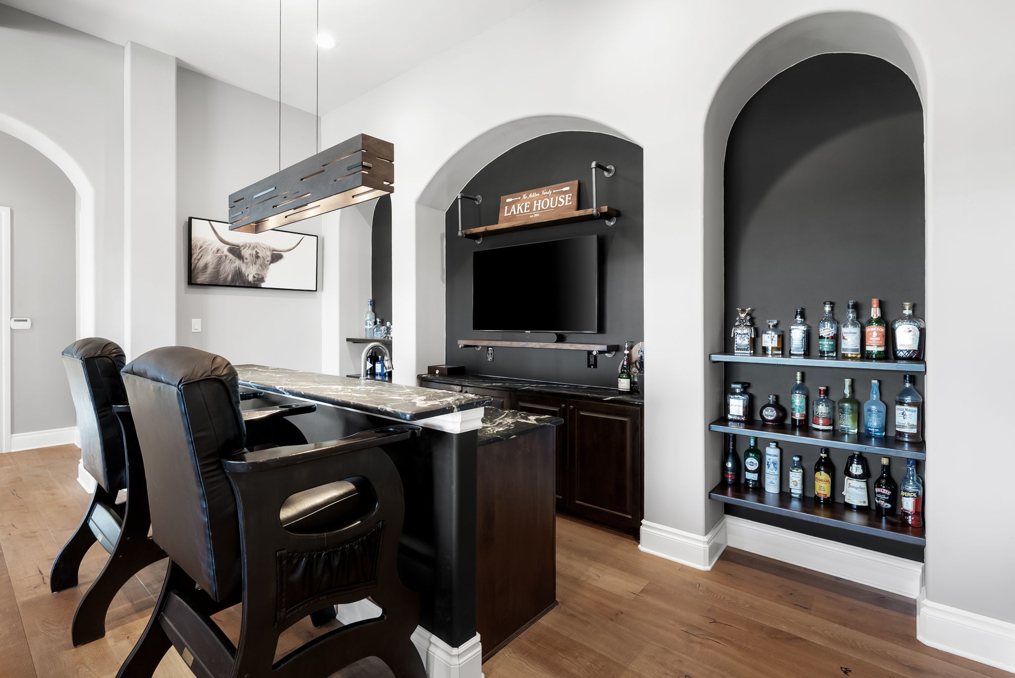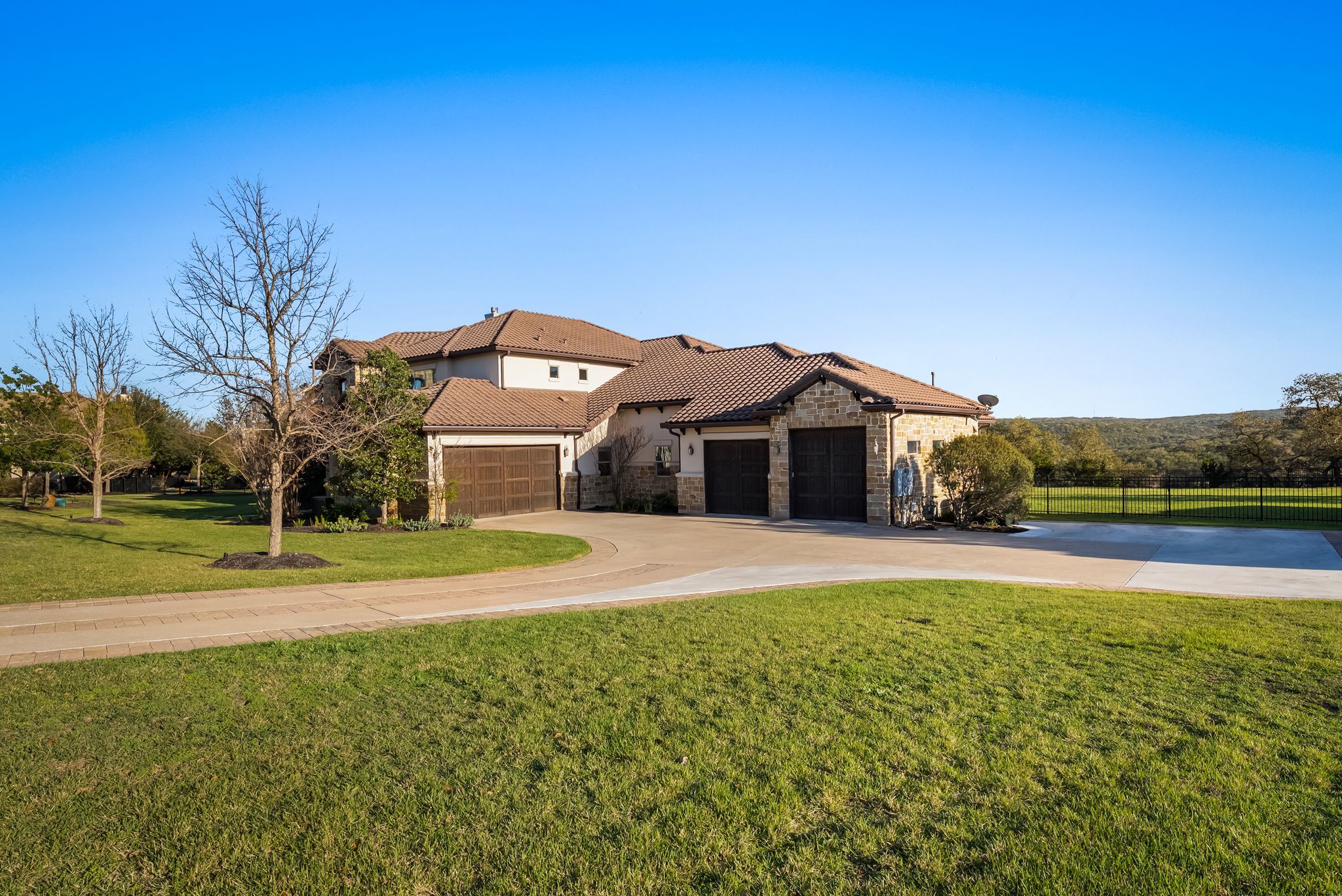 Located within the UT Golf Club in Steiner Ranch, this extraordinary estate on Shore View Overlook is one of the community's rare custom homes offering sweeping lake views and a full one-acre homesite. Designed to achieve the perfect balance between grand scale and everyday livability, the home features expansive living spaces, beautifully proportioned rooms, and thoughtful details throughout. A dramatic grand foyer and sweeping curved staircase welcome you into the home, where natural light and open sightlines create an immediate sense of space. The heart of the home is a double-island chef's kitchen with dual pantries, designed for both daily living and effortless entertaining. The main-floor primary suite is a private retreat, complete with an oversized bath, dual walk-in closets, and direct patio and pool access. Also on the main level are a private guest suite, a corner office with custom built-ins, and a game room with wet bar and lounge. Upstairs, three bedrooms each feature their own full bathroom and walk-in closet. A second game room, dedicated gym, and a large balcony with covered and open-air spaces offer additional areas to relax and enjoy the views. The outdoor living experience is equally impressive. The flat one-acre lot is centered around a custom pool with water features and spa. Outdoor gathering areas include covered seating with fireplace and TV, a covered dining area, and a fully equipped outdoor kitchen with built-in BBQ, sink, and refrigerator. The expansive lawn also leaves room for a future guest house, pool house, or additional garage. Car enthusiasts will appreciate dual garages with 9- and 10-foot doors for full-size trucks and additional vehicles. A fourth bay offers a 10-foot door and 26-foot depth for a boat or large vehicle. Custom homes of this scale, design, and location are extremely rare within the UT Golf Club, and opportunities like this seldom come available.