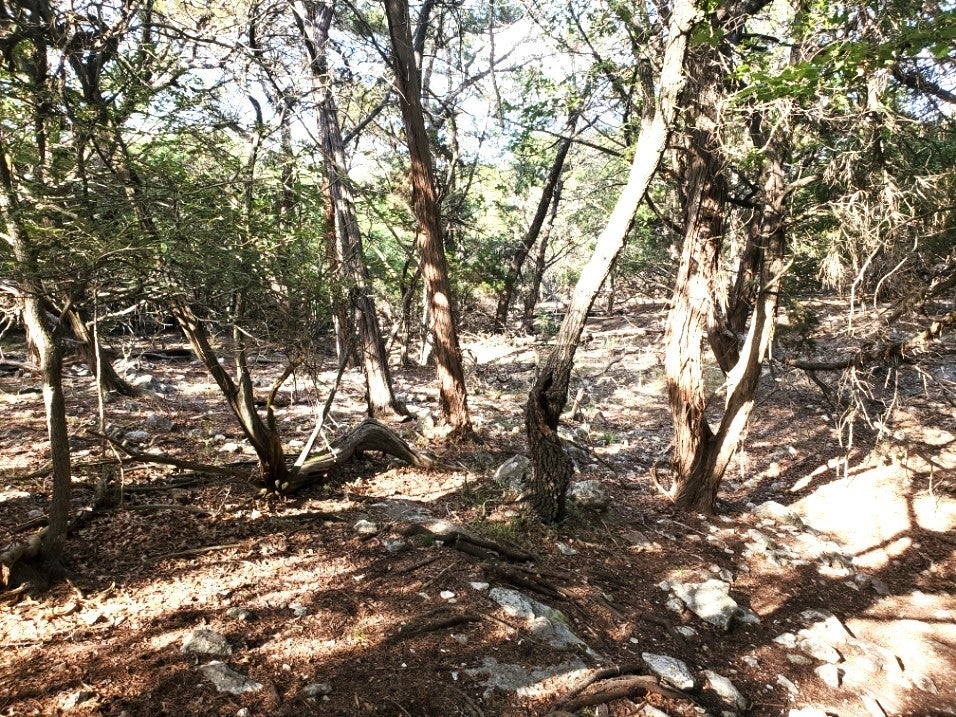 - Cul-De-Sac, Sloped Down, Native Plants, Many Trees