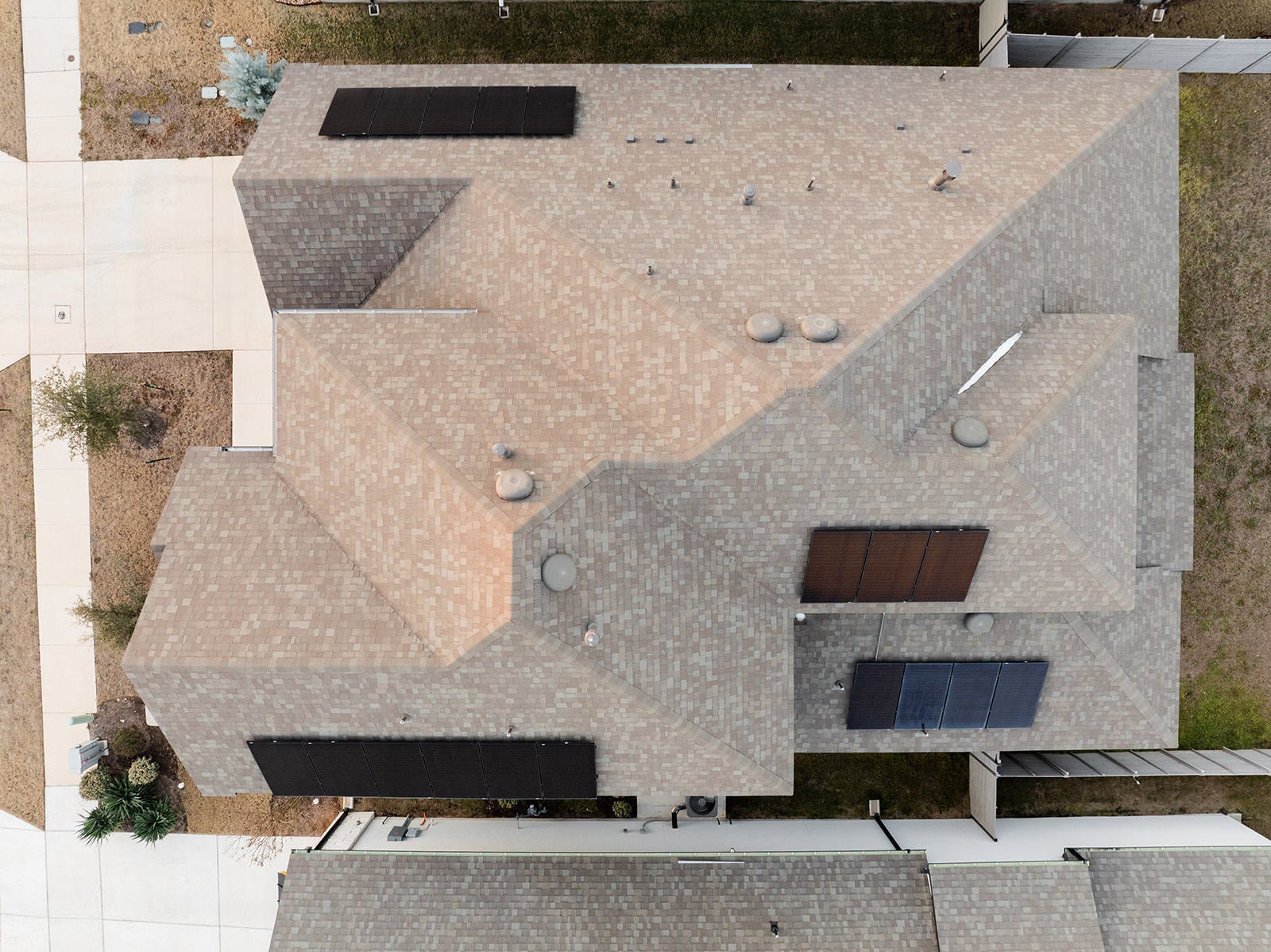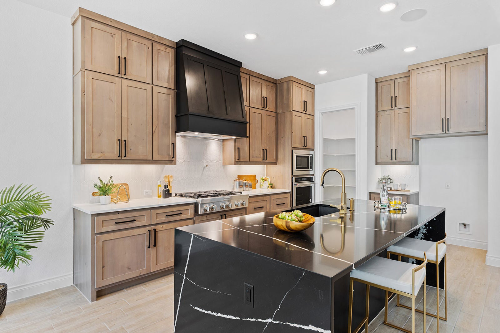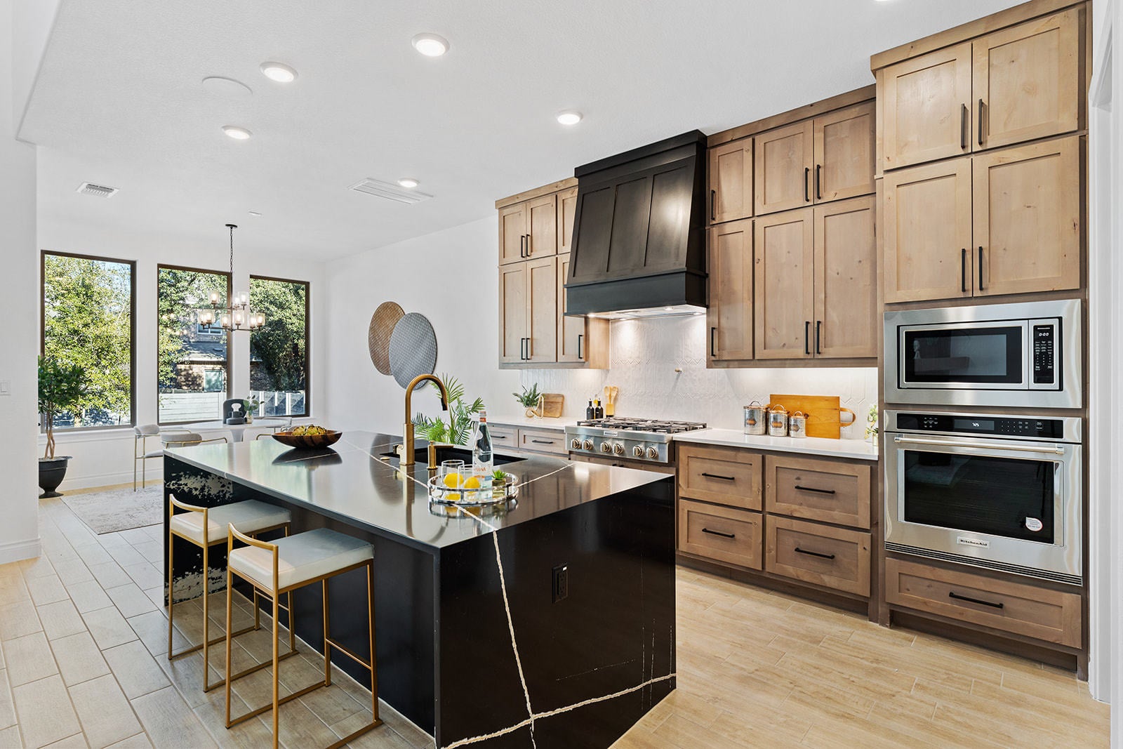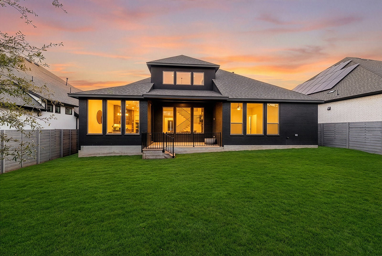 The Dark Brick Modern Masterpiece: Welcome to this stunning 4-bedroom, 4-bathroom residence nestled in the highly sought-after Wolf Ranch community of Georgetown. This exceptional home delivers an impressive 3,622 square feet of thoughtfully designed living space where modern sophistication meets everyday comfort. From the moment you arrive, the striking elevation sets the tone for what awaits inside. Step through the door and discover soaring high ceilings that create an atmosphere of grandeur, complemented by contemporary dark interior accents that flow seamlessly throughout. The heart of this home features a chef's dream kitchen equipped with a premium 6-burner Kitchen-Aid range and stunning waterfall edge counters that make both cooking and entertaining an absolute pleasure. The primary suite offers a true retreat with a massive walk-in shower and custom vanity counter that exemplify the quality craftsmanship found in every corner. Each bathroom showcases modern design elements, reflecting the attention to detail invested in this exceptional property. A dedicated study provides the perfect work-from-home solution, while the media room and loft offer versatile spaces for relaxation and recreation. Energy efficiency meets innovation with $45,000 Tesla Powerwall and solar panels, ensuring sustainable living without sacrificing comfort. The cozy fireplace adds warmth to cooler evenings, while the outdoor patio space extends your living area into the Texas sunshine. Wolf Ranch offers an enviable lifestyle with multiple community amenities, beautiful Chandler Park just steps away, and the convenience of Wolf Ranch Shopping Center featuring Target, H-E-B, Natural Grocers, and popular dining options. Excellent schools including Gateway Tech High School complete this ideal location.
