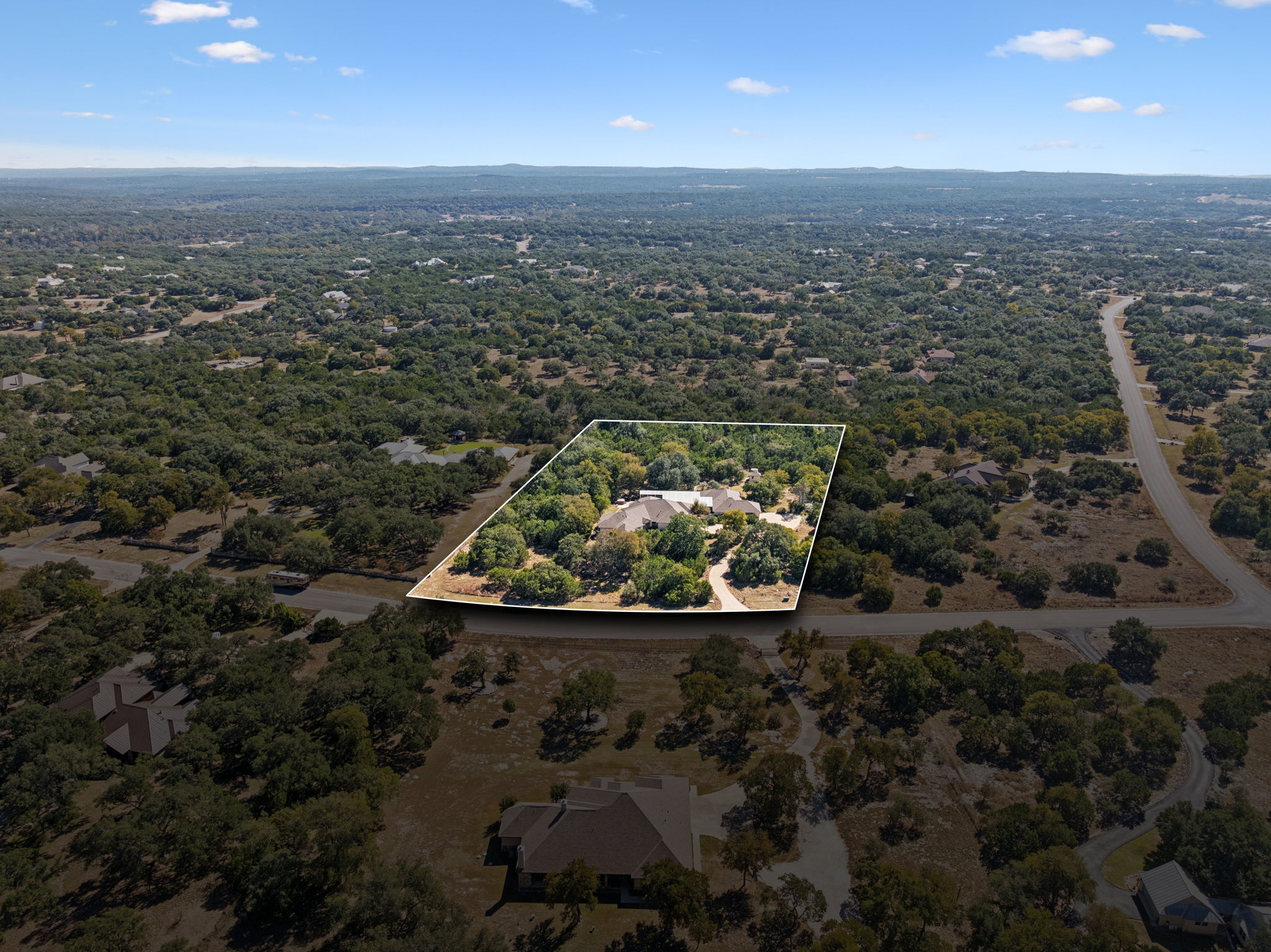 Experience tranquil Hill Country living at 85 Rio Colorado Drive in the gated WaterStone community near Boerne. Set on 3.14 private, tree-covered acres, this property offers scenic views, privacy, and a strong connection to nature. The estate includes a 3,344 SF main residence and a 1,159 SF guest house, totaling 4,503 SF of well-designed living space. The main home features three bedrooms and two and a half baths with an open, flowing layout enhanced by tall ceilings, crown molding, and multiple gathering areas including formal and family living rooms, a study, and a dining room. The kitchen offers oak cabinetry, Quartz countertops, a built-in oven, and a breakfast nook overlooking the peaceful backyard where deer and wildlife are frequently seen. A split-bedroom layout provides privacy. The primary suite includes a spacious bath with walk-in shower, soaking tub, dual vanities, and a large walk-in closet. Two secondary bedrooms share a connecting bath. Two oversized garages provide protected parking for up to four vehicles plus storage or workshop space. The upgraded electrical panel includes a generator transfer feature for essential circuits. The guest house offers its own kitchen, dining, and living areas, plus two bedrooms and two full baths—ideal for guests or multi-generational living. Both homes enjoy direct access to the enclosed pool area for year-round use. WaterStone residents have Guadalupe River access through two river parks. Community amenities include a pavilion, swimming, fishing, and pickleball. Convenient to Boerne, San Antonio, and Fredericksburg, this property blends Hill Country serenity with everyday practicality.