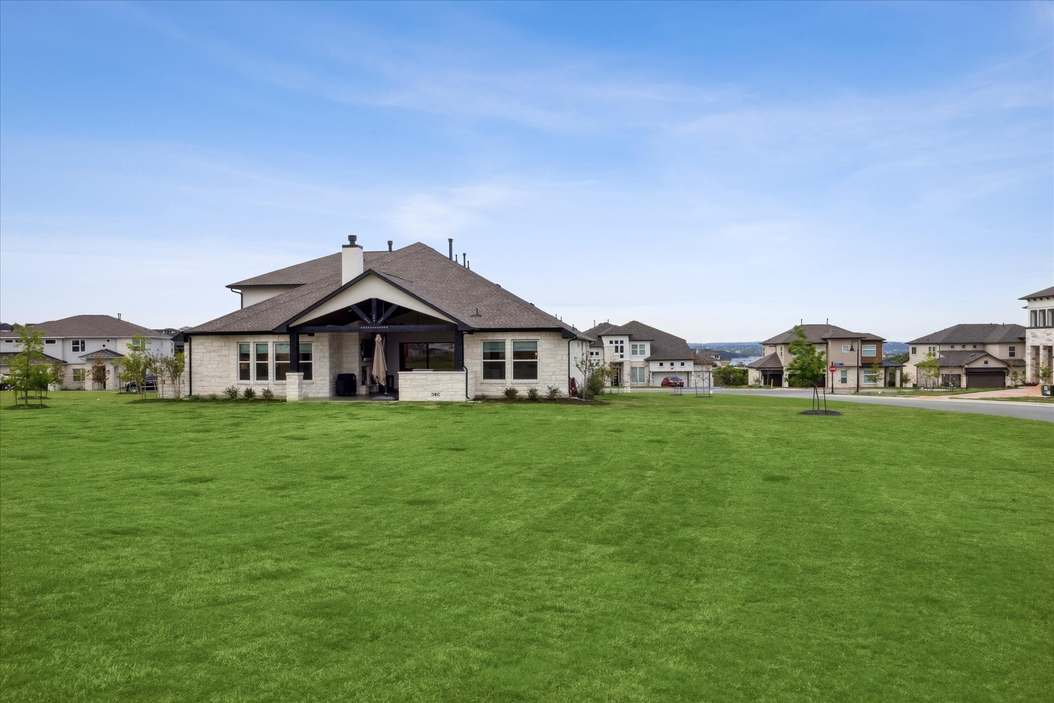 Luxury Executive Home Nestled in the sought-after Rough Hollow community lies a rare gem – a newer build of a single-family home, standing proudly on 0.75 acres. As you step inside, you're greeted by an expansive, light-filled space, boasting soaring ceilings and double sliders that beckon you towards the inviting covered patio, complete with a cozy fireplace, creating the ideal setting for hosting gatherings and enjoying the outdoors. The heart of this home, the gourmet kitchen, has been extended to provide ample room for culinary creativity, adorned with sleek waterfall counters that add a touch of sophistication. With the primary bedroom conveniently located on the main level, this home offers both comfort and practicality. Indulge in the ultimate spa-like experience within the confines of the primary suite, offering a tranquil retreat from the hustle and bustle of daily life. With a total of 5 bedrooms, 4.5 baths, and additional bonus and theater rooms upstairs, there's no shortage of space for relaxation or entertainment. The 3 car garage, featuring epoxy floors and clever storage solutions including ceiling racks, ensures that both your vehicles and belongings are well taken care of. Moreover, with insulation and temperature control, it provides a comfortable environment year-round. Every corner of this home exudes quality and craftsmanship, with upgrades that must be seen to be truly appreciated. It's a testament to the meticulous care and attention poured into creating a lifestyle that's as luxurious as it is functional. The lot is so large you can add a pool and a sport court. A must see!