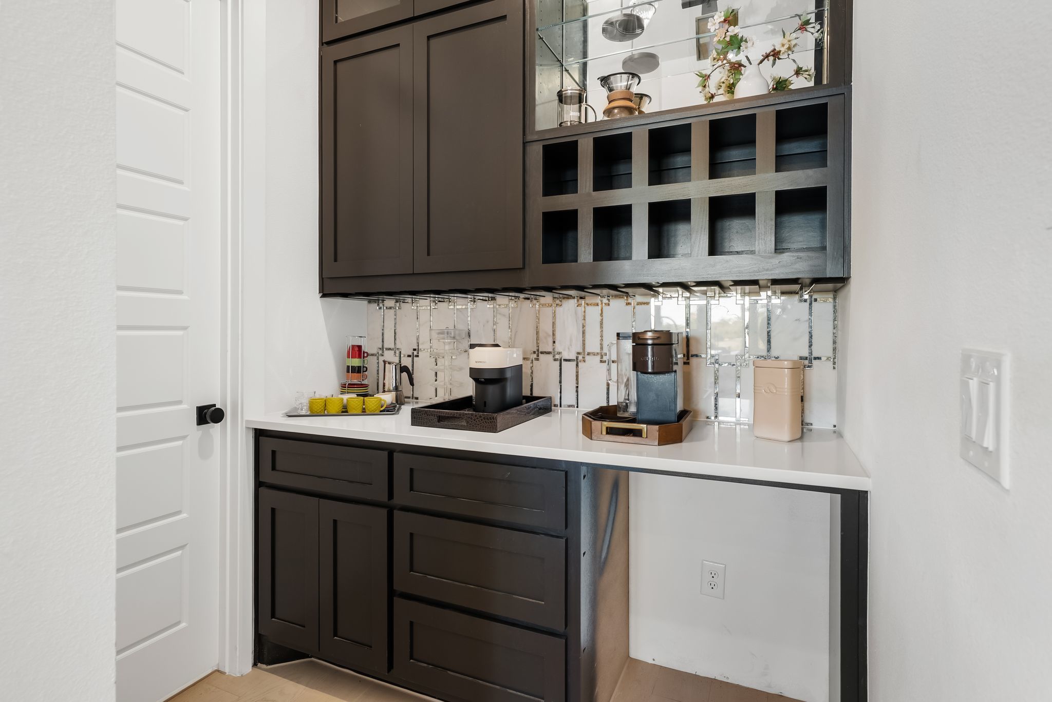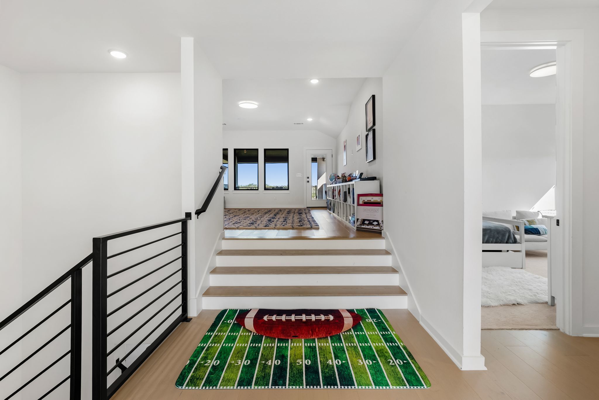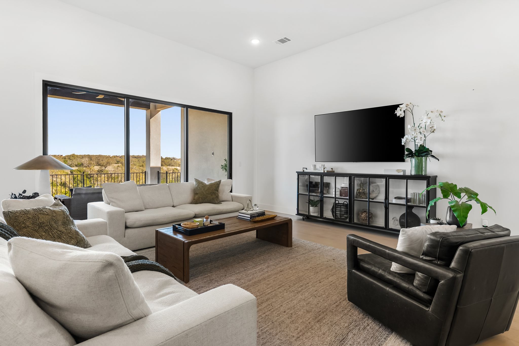 $400K+ in Custom Upgrades | Hill Country Views | Semi-Private Lot | Drees Somerville Plan in Provence Welcome to one of Provence's most exceptional homes on a semi private lot with no neighbors on one side, capturing hill country views from both the extended covered patio and upper level balcony. Entering through striking French doors, you are welcomed by soaring ceilings, hardwood floors and a layout designed for both entertaining and everyday living. A home office with a walk in closet and an en suite guest bedroom flank the foyer, ideal for multigenerational living or a dedicated workspace. The great room opens to a chef's kitchen anchored by a large island, custom cabinetry, designer tile backsplash and a Sub Zero refrigerator. Cooking enthusiasts will appreciate the gas range, double ovens, walk in pantry and butler's prep area. The dining room opens directly to the extended covered patio while the living room's 3 panel sliding door creates a seamless indoor outdoor connection. The primary suite features a spa inspired bath with frameless glass shower, multiple shower heads including a rain shower, soaking tub, dual vanities, and an oversized walk in closet. A mud area, half bath, and oversized laundry room with sink, storage and space for a second refrigerator complete the main level along with a 3 car garage. Upstairs, the flex/game room with wet bar and sink opens to an extended balcony overlooking the Hill Country, perfect for entertaining or relaxing. The media room is ideal for movie nights or game day. 3 additional bedrooms, each with access to full bathrooms, complete the upper level. Smart home & tech highlights: Ubiquiti WiFi access points throughout, and in ceiling speakers in the living room, game room, and both patios. The community of Provence offers a resort style pool, clubhouse and playground, with convenient access to shopping (7 min to Bee Cave Galleria) wineries, and downtown Austin. This is a fully realized, move in ready luxury residence.