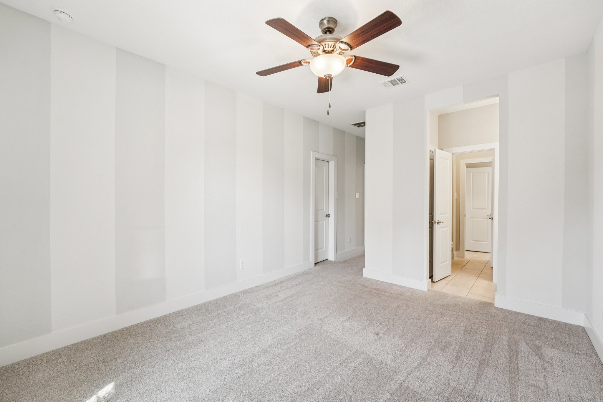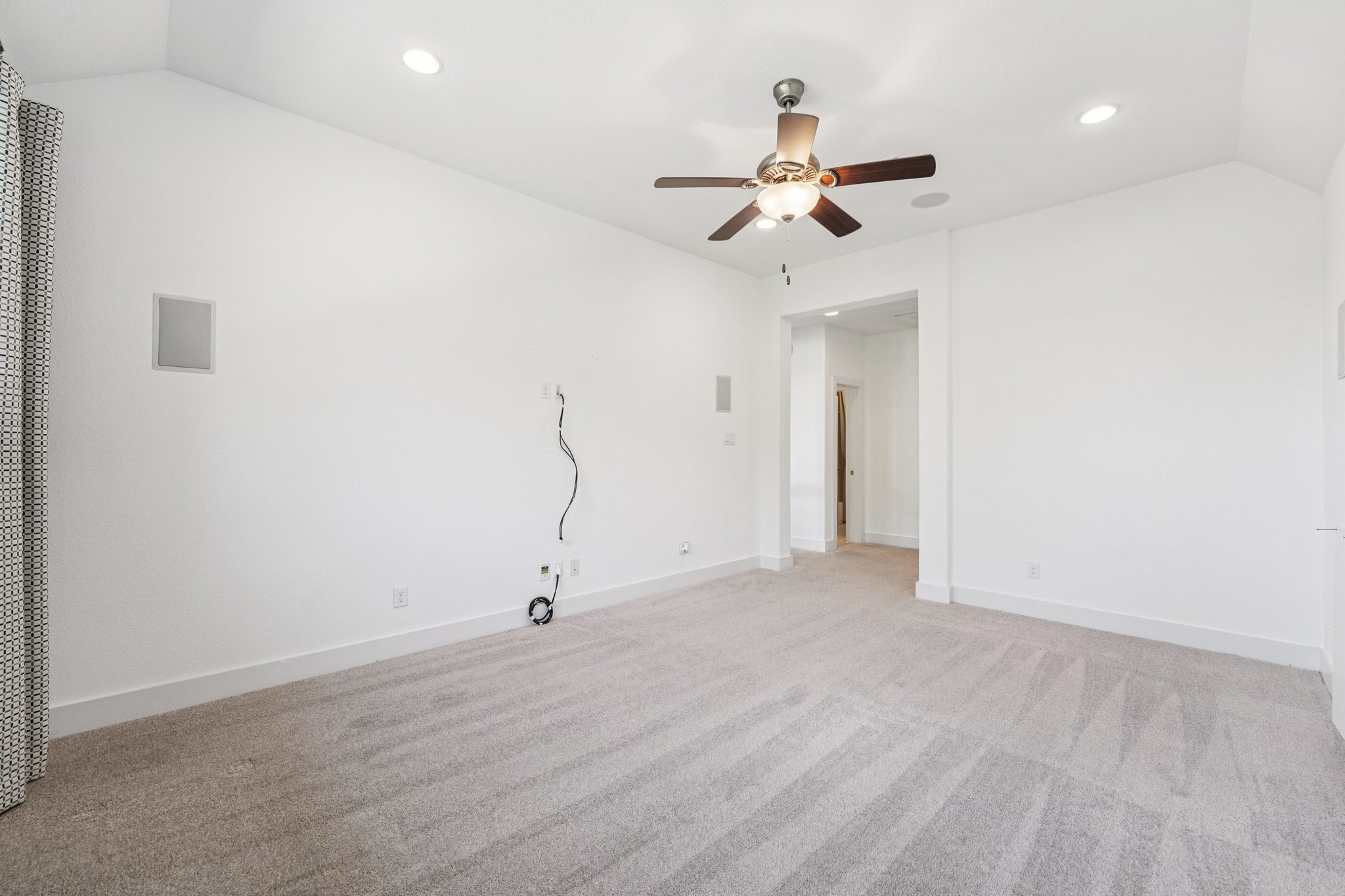 Welcome to this stunning former model home, thoughtfully designed with custom upgrades and elegant finishes throughout! The Weston plan by Coventry Homes offers an incredibly spacious and flexible floor plan featuring a private generational suite complete with its own living room, kitchenette, and full bath—perfect for extended family or long-term guests. At the opposite wing of the first floor is the primary suite and a luxurious spa bath which hosts a walk-in shower with dual shower heads, a soaking tub, and walk-in closet. The third bedroom on the main level is situated at the front of the home and boasts a full bath ensuite. At the heart of the home, the chef’s kitchen showcases quartz countertops, glass display cabinets, a 6-burner gas cooktop with canopy hood, and a center island that doubles as a breakfast bar with cabinet storage. The kitchen overlooks a spacious living room with soaring ceilings and a tiled fireplace focal point. Seamless glass slider patio doors open to an impressive outdoor living area, complete with a built-in kitchen, stone fireplace with pre-wire for TV, and mounted speakers, creating the perfect setting for gatherings year-round. Upstairs are the remaining 2 bedrooms, a Jack-and-Jill style bathroom, and a teen retreat with Surround Sound prewire & built-in speakers, providing a dedicated space for entertainment, study, or relaxation. Architectural details including beam ceiling accents add warmth and character. With over $300K in upgrades, this is a must-see home! Enjoy the wealth of community amenities in Wolf Ranch including 2 resort style swimming pools, event lawn, fitness center, playgrounds, sport courts, and 15 acre recreational area coming soon.