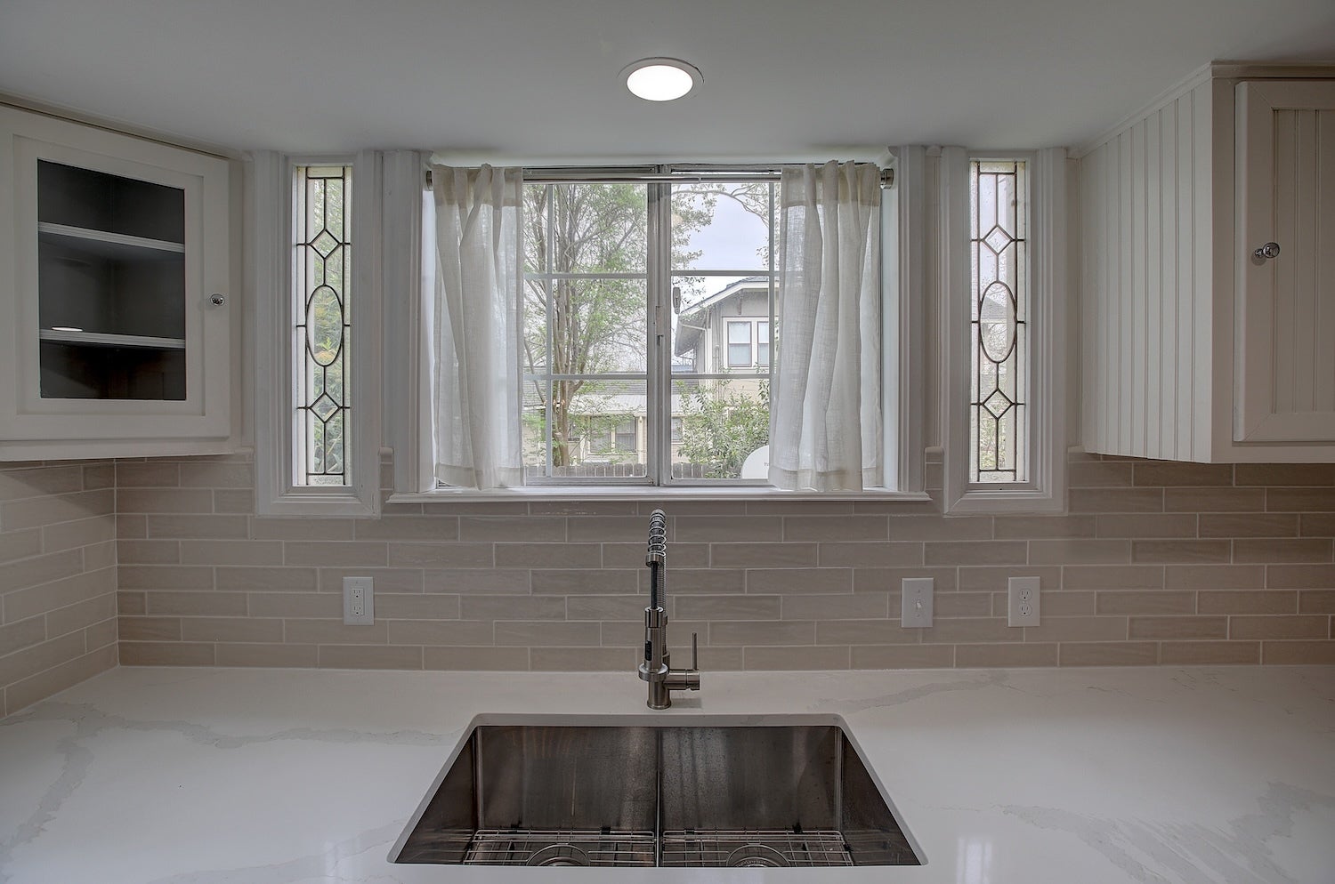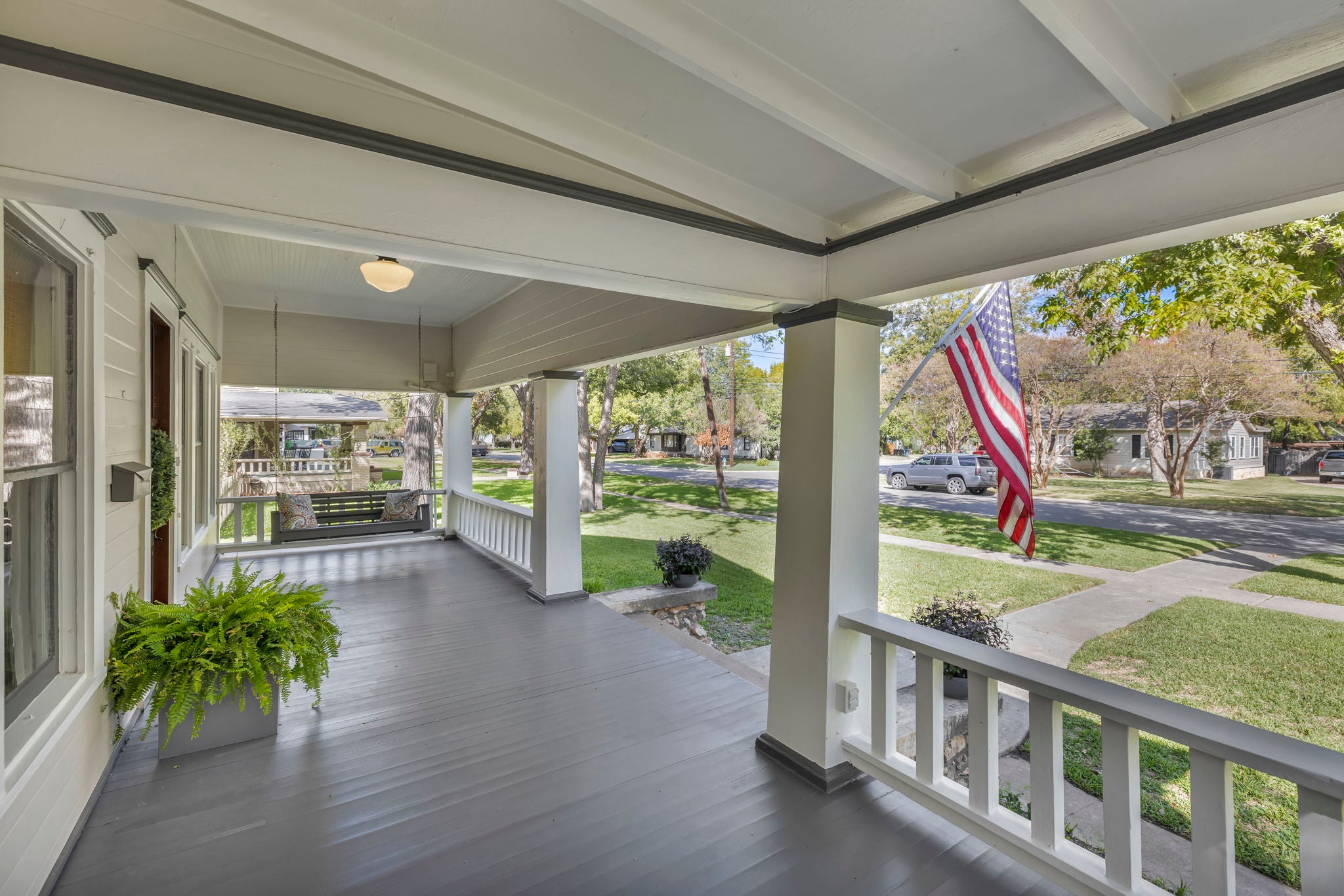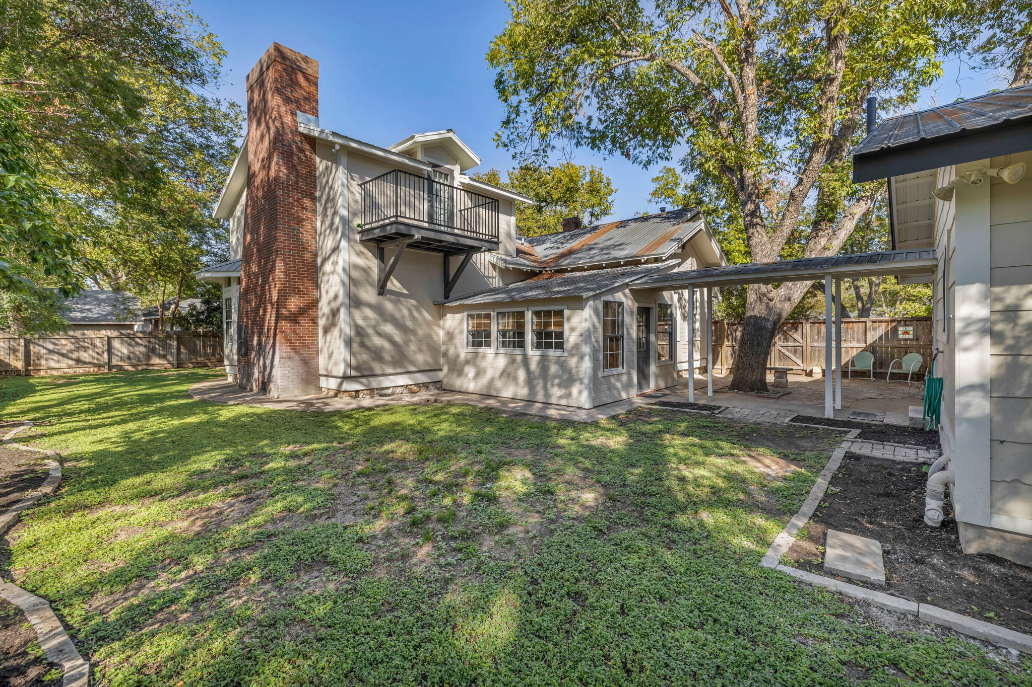 Restored 1905 Craftsman on 2 lots (˜0.33 acre) in Old Town, walkable to the Square, dining, and cultural amenities. Structural character preserved with modern system upgrades and efficient layout. 3BR/3.5BA with flexible-use spaces including loft and office. Updated kitchen features quartz surfaces, stainless appliances, and optimized workflow. Primary suite includes vaulted ceiling, fireplace, balcony, and high-end bath with Grohe fixtures. Site improvements include courtyard, covered access to garage with bath/shower and dedicated workspace. Balanced blend of historic architecture and functional design.
