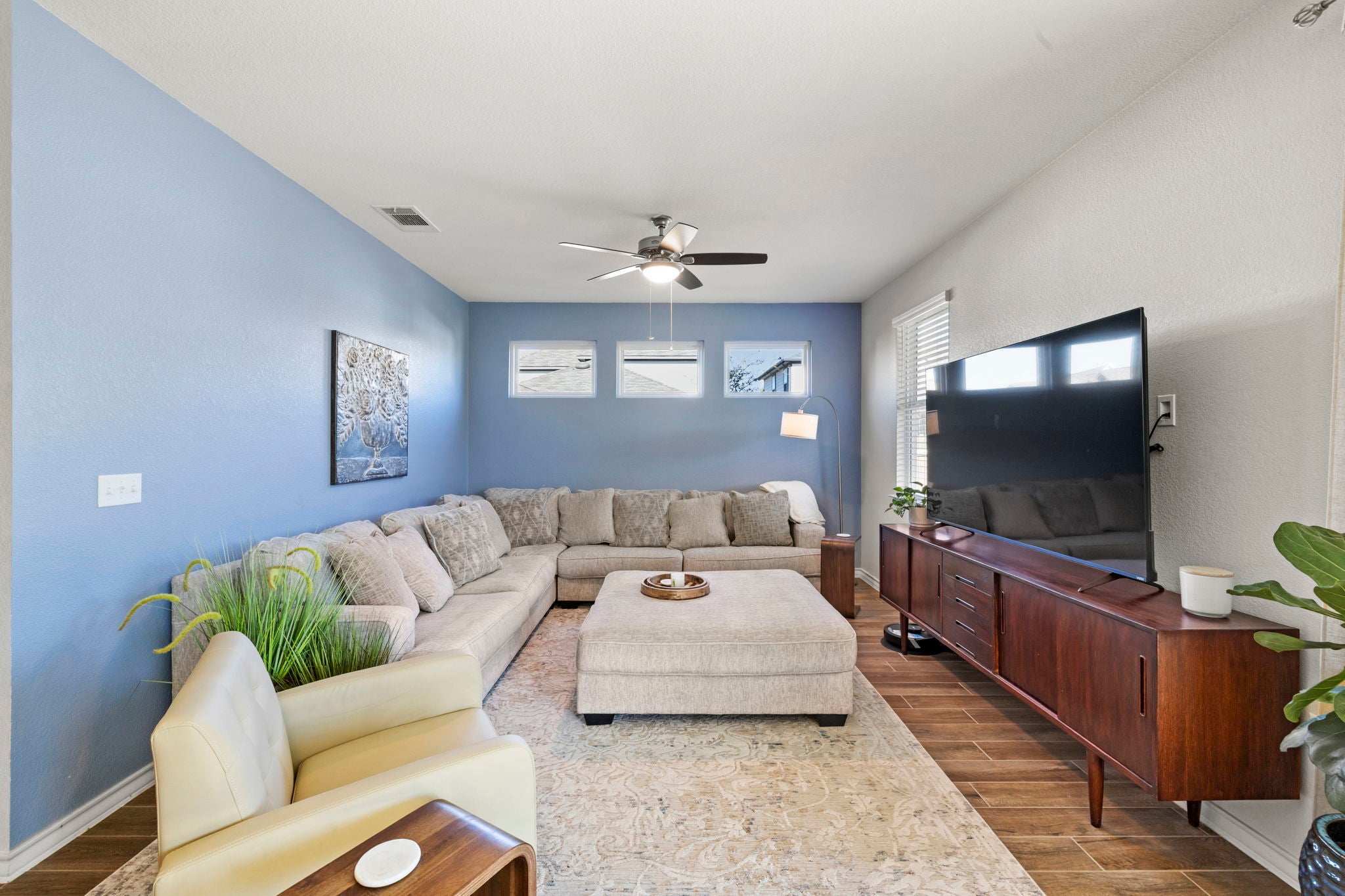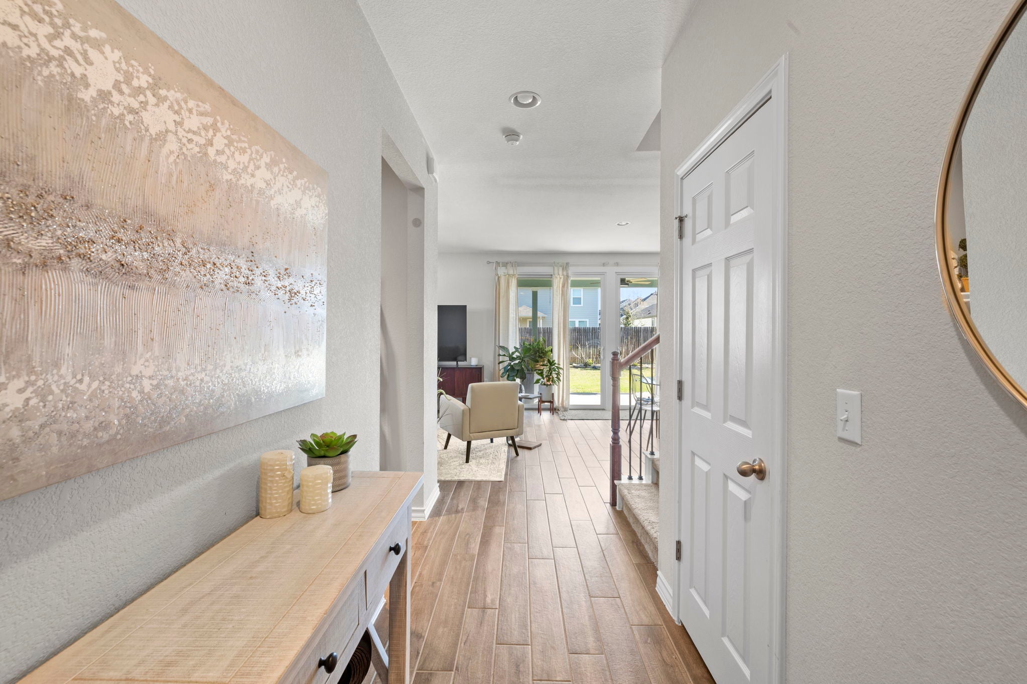 Biweekly lawn care included in lease price. Pristine Prado Ranch home that boasts elevated features at every turn. The exterior is crisp and inviting with a full exterior paint completed in 2025, while the front porch is a canvas for seasonal decoration. This home features 4 bedrooms and 3 bathrooms. As you enter, the foyer leads to the open floorplan where the elevated flooring and large windows takes center stage. The living room is open to the kitchen and dining combo- perfect for entertaining and relaxing. The kitchen provides abundant cabinets for storage space including a dedicated space for a coffee bar. One bedroom with an en-suite bathroom is downstairs to accommodate guests or provide more privacy. Upstairs, a second living space awaits with potential for an office, living space or game room. The spacious primary bedroom is upstairs with the en-suite primary bathroom. The primary bathroom boasts a double vanity and large walk-in closet. Two additional bedrooms and an additional bathroom are also found upstairs. The backyard is an outdoor oasis with a covered back patio and plenty of yard space for backyard barbecues. Situated less than a mile from Tesla with immediate access to 973 and the 130 toll, this home could not be in a more prime location. Austin Bergstrom Airport is just across Highway 71 along with quick access to Circuit of the Americas. Downtown Austin and all surrounding areas are a short drive away via 71 or the 130 toll. Outdoor fun is a short drive away with the Onion Creek Wildlife Sanctuary and McKinney Falls State Park within close proximity.