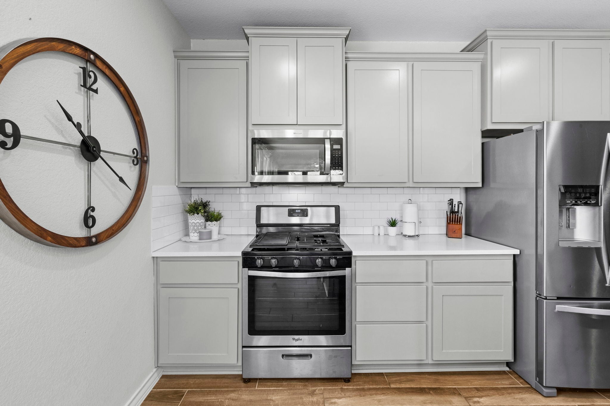 - Dishwasher, Exhaust Fan, Free-Standing Gas Range, Free-Standing Range, Disposal, Gas Water Heater, Microwave