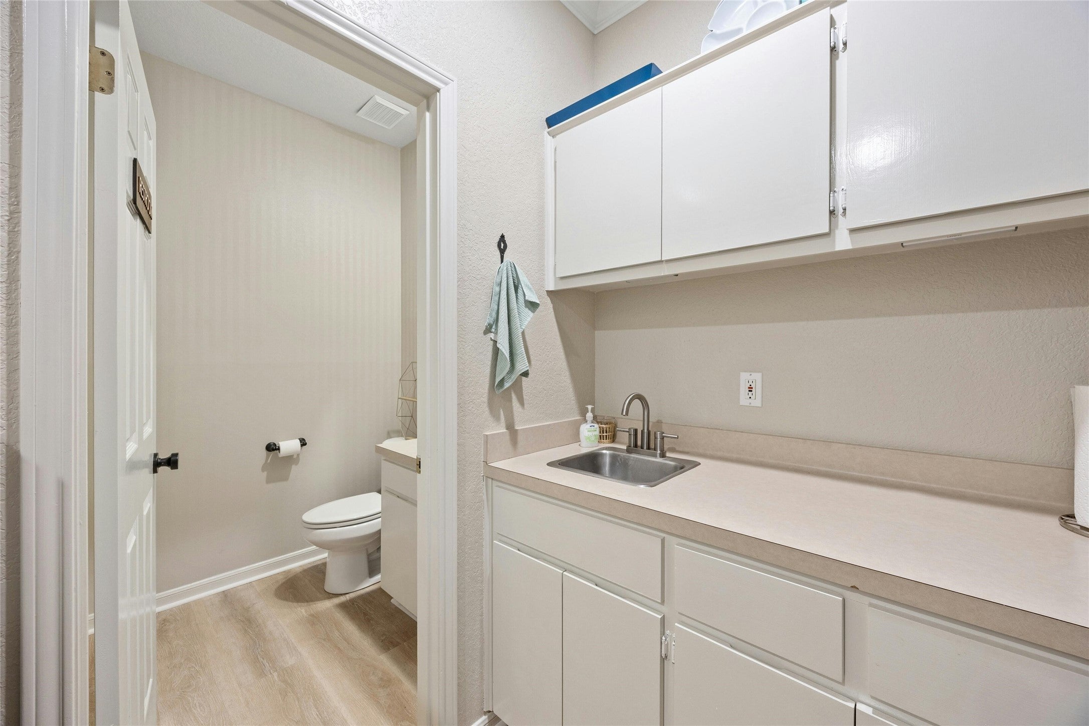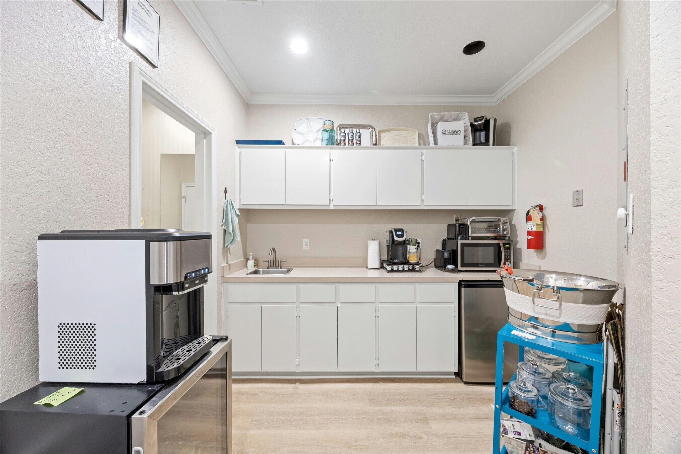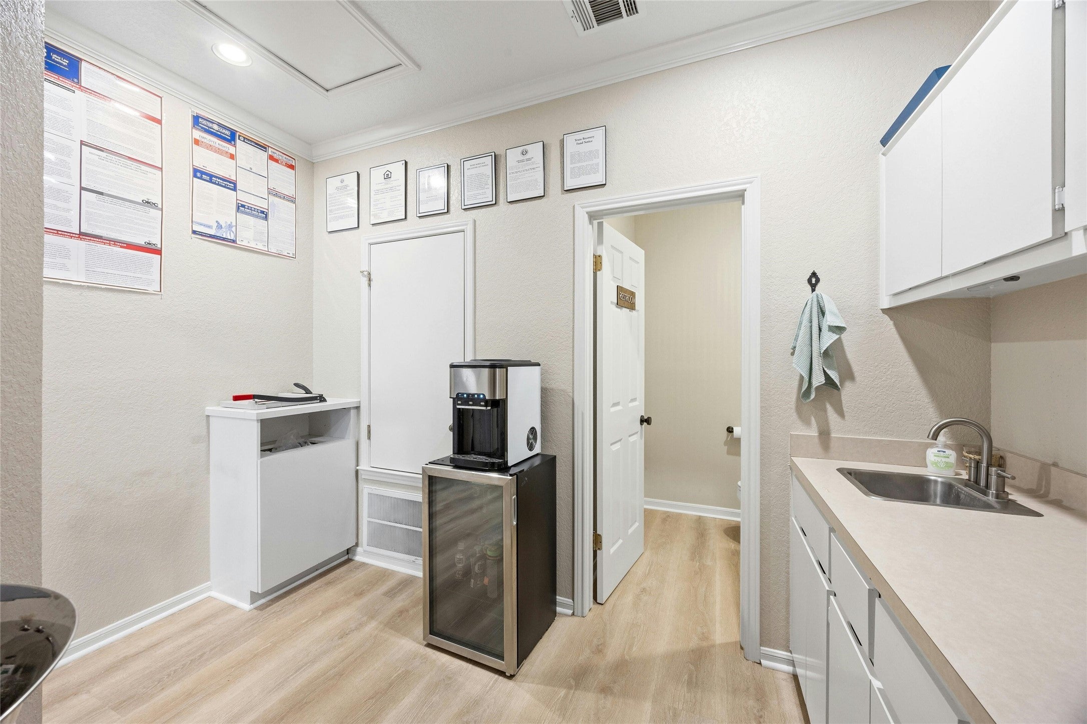Front-of-complex Austin office condo with two private offices and a private restroom, positioned for easy access and everyday convenience. Located in one of the front buildings of the complex, this second-story unit offers straightforward entry and plenty of nearby parking for both clients and staff. The layout opens into a dedicated reception area that clearly separates waiting space from the work areas. Two enclosed offices sit beyond the reception, each with generous built-in storage. One office is notably larger and works well as a conference room, collaborative workspace, or executive office depending on daily needs. Updated LVP flooring was installed approximately 2 years ago and runs throughout the unit, keeping the space consistent and easy to maintain. A kitchenette is located within the unit and includes a sink, cabinet storage, and counter space. A small refrigerator and microwave are provided. A private restroom is also inside the office, avoiding shared facilities. One office opens to a small balcony with an open view, bringing in natural light and offering a break from the desk during the workday. This office condo is well maintained and set within a quiet complex with many long-term owners and tenants. Water is paid by the landlord. The tenant is responsible for electricity, optional alarm monitoring, and any advertising on the unit door as well as the complex directional if they wish. Please note that the unit is located on the second floor, and the building does not have an elevator. Lease terms are flexible, with a preference for 24 to 60 months, however a 12-month minimum will be considered. The front-of-complex location, practical layout, and ample parking support a professional setup that works smoothly day to day. Unit will be available during the first week of April 2026.
