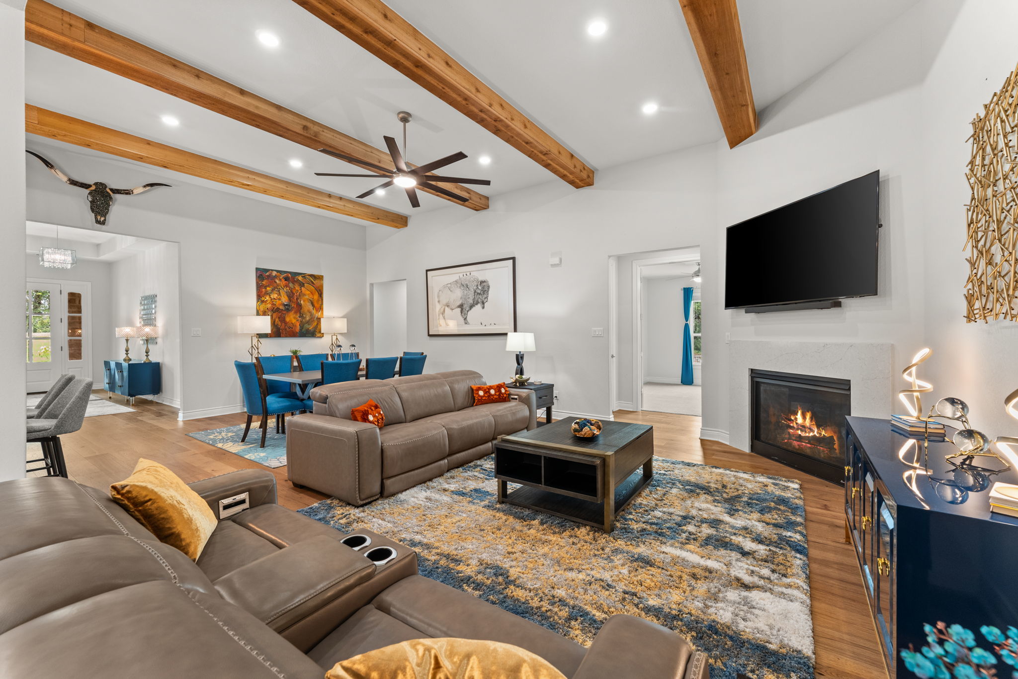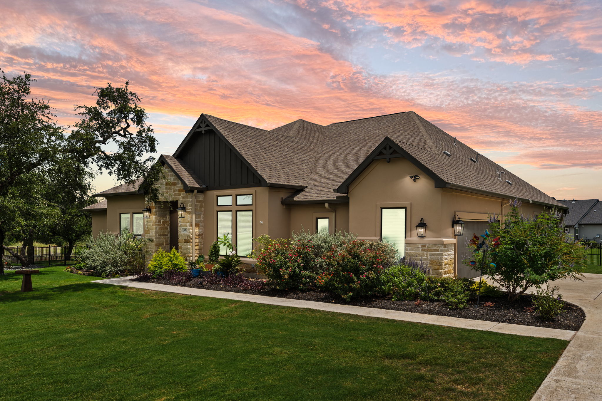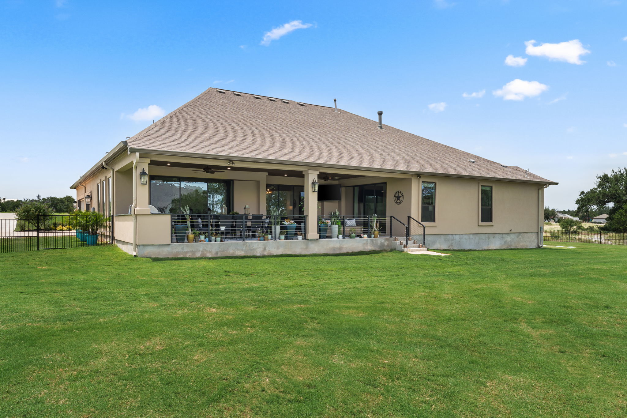Discover refined Texas Hill Country living in this beautifully crafted 4-bedroom, 3.5-bath custom home situated on a one-acre lot in the desirable Spicewood Trails community. This thoughtfully designed residence features a functional open-concept floor plan, high-end finishes, and exceptional indoor-outdoor living, ideal for both everyday comfort and entertaining. Perfect backyard for a pool! (Pool not included, picture for rendering) The light-filled interior offers expansive living spaces, including a spacious family room that flows seamlessly into a formal den and opens to an oversized covered patio through large sliding glass doors. The outdoor kitchen creates the perfect setting for hosting while enjoying peaceful Hill Country views. The gourmet kitchen is the heart of the home, featuring upscale upgrades, generous prep space, and an inviting layout ideal for gatherings. The home includes four generously sized bedrooms, highlighted by a private guest suite with en-suite bath, perfect for visitors or multigenerational living. The primary suite serves as a true retreat with spa-like finishes and elegant details throughout. Additional features include: * 3-car garage * Flex room ideal for a home office, gym, or craft space * Extensive front and backyard landscaping * Covered patio with built-in outdoor kitchen * Craftsman-style architecture with luxury finishes * Trimlight exterior lighting system for security, holidays, and enhanced curb appeal Community amenities include high-speed fiber-optic internet, a community event barn, dog park, playground, fire pit, and scenic walking trails. Ideally located just 15 minutes from Marble Falls and Horseshoe Bay, 25 minutes from Bee Cave, and 45 minutes from Austin, this home offers the perfect balance of privacy, convenience, and the best of Central Texas Hill Country real estate.
