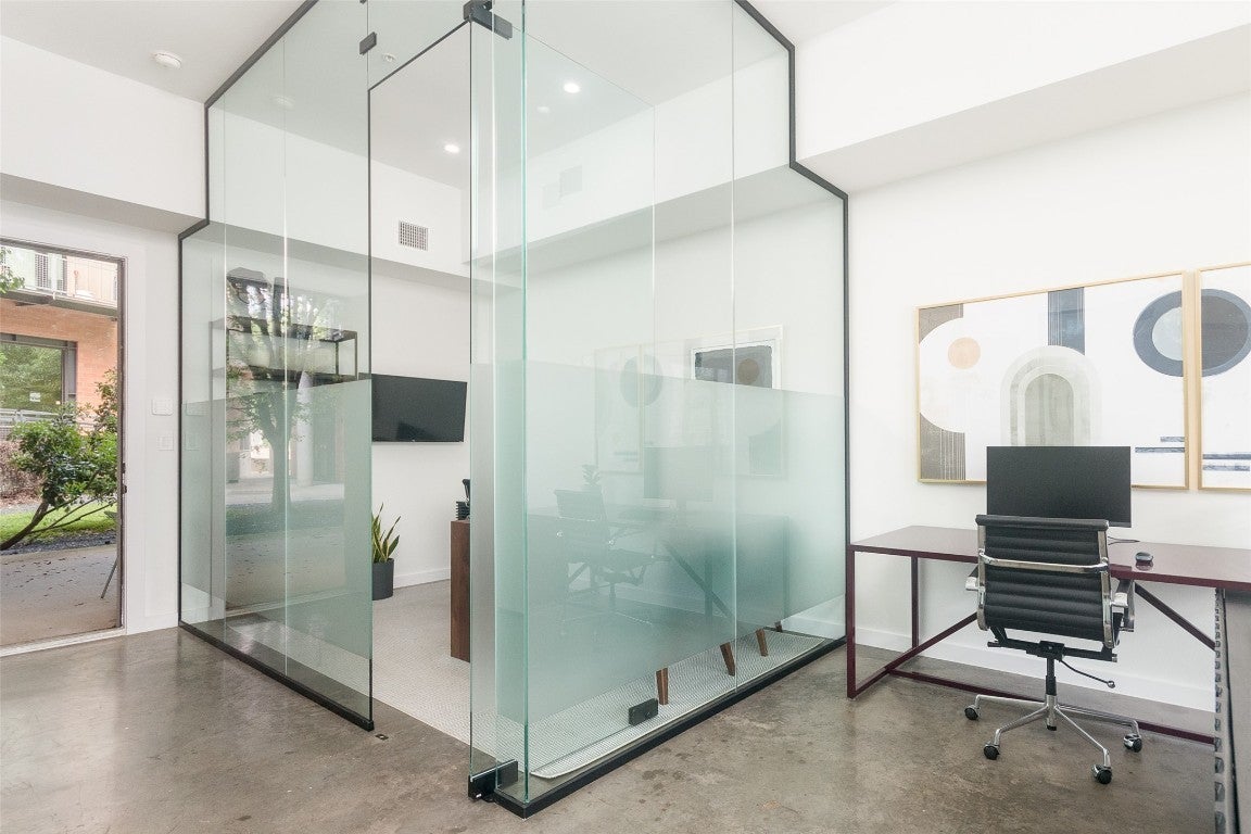 A professional office condo in the prime South Lamar corridor. This well-appointed space offers flexibility with a negotiable net or gross lease options and the option to be delivered fully furnished. The layout is designed for productivity and includes a welcoming lobby/reception area with a front desk, a conference room for team meetings and client presentations, a private workstation office plus an executive office, a kitchenette with dishwasher, microwave, and abundant storage, direct access to a courtyard with outdoor seating through a private back door. This thoughtfully designed space is ideal for small businesses seeking a professional setting in one of Austin’s most dynamic and accessible locations.