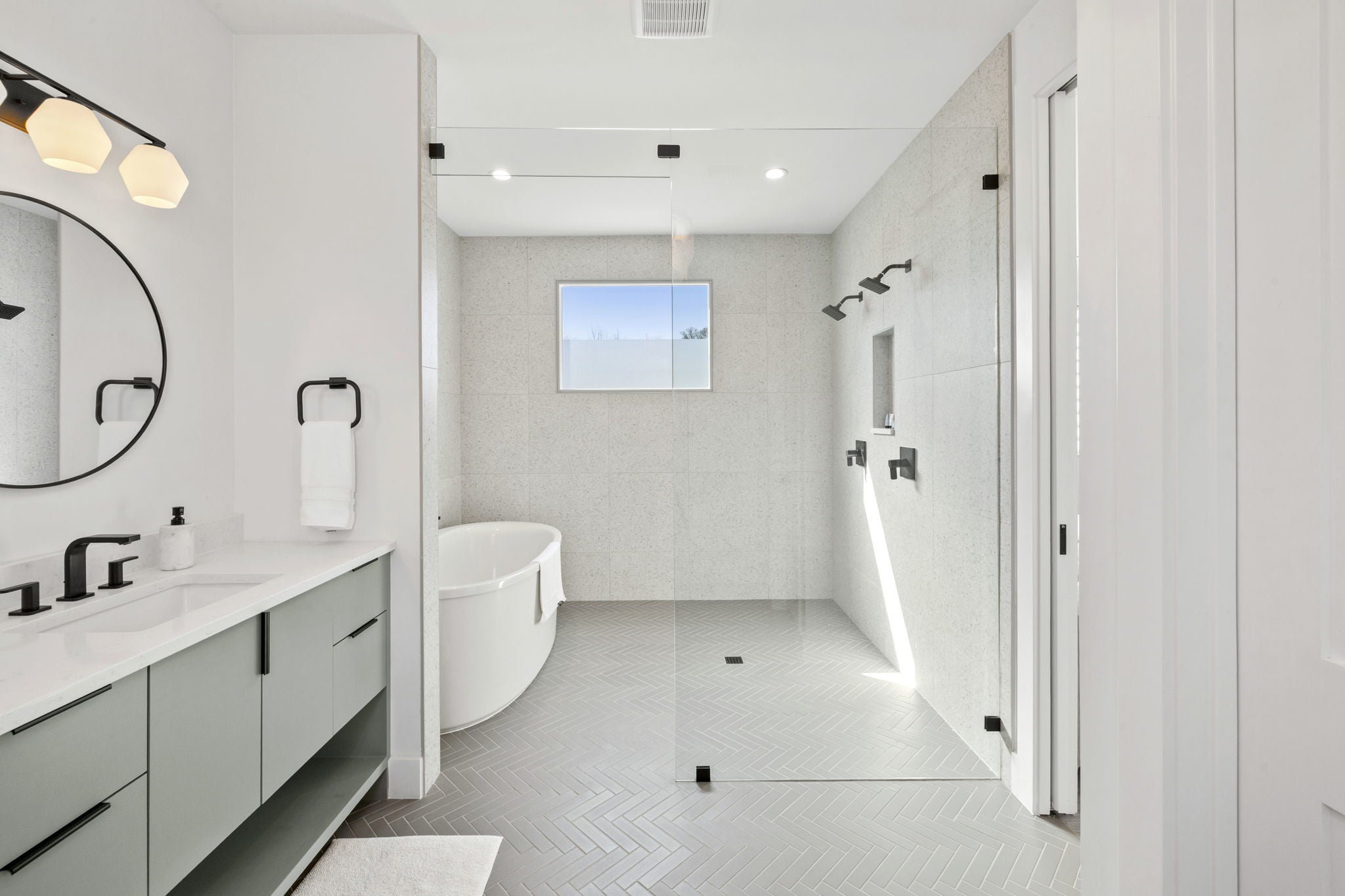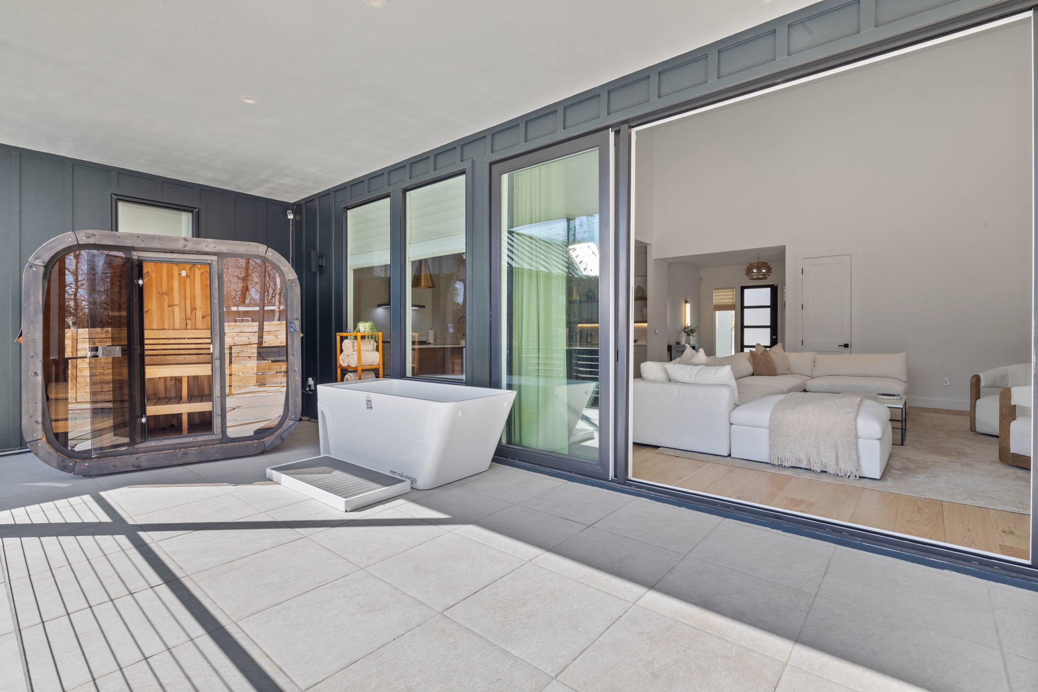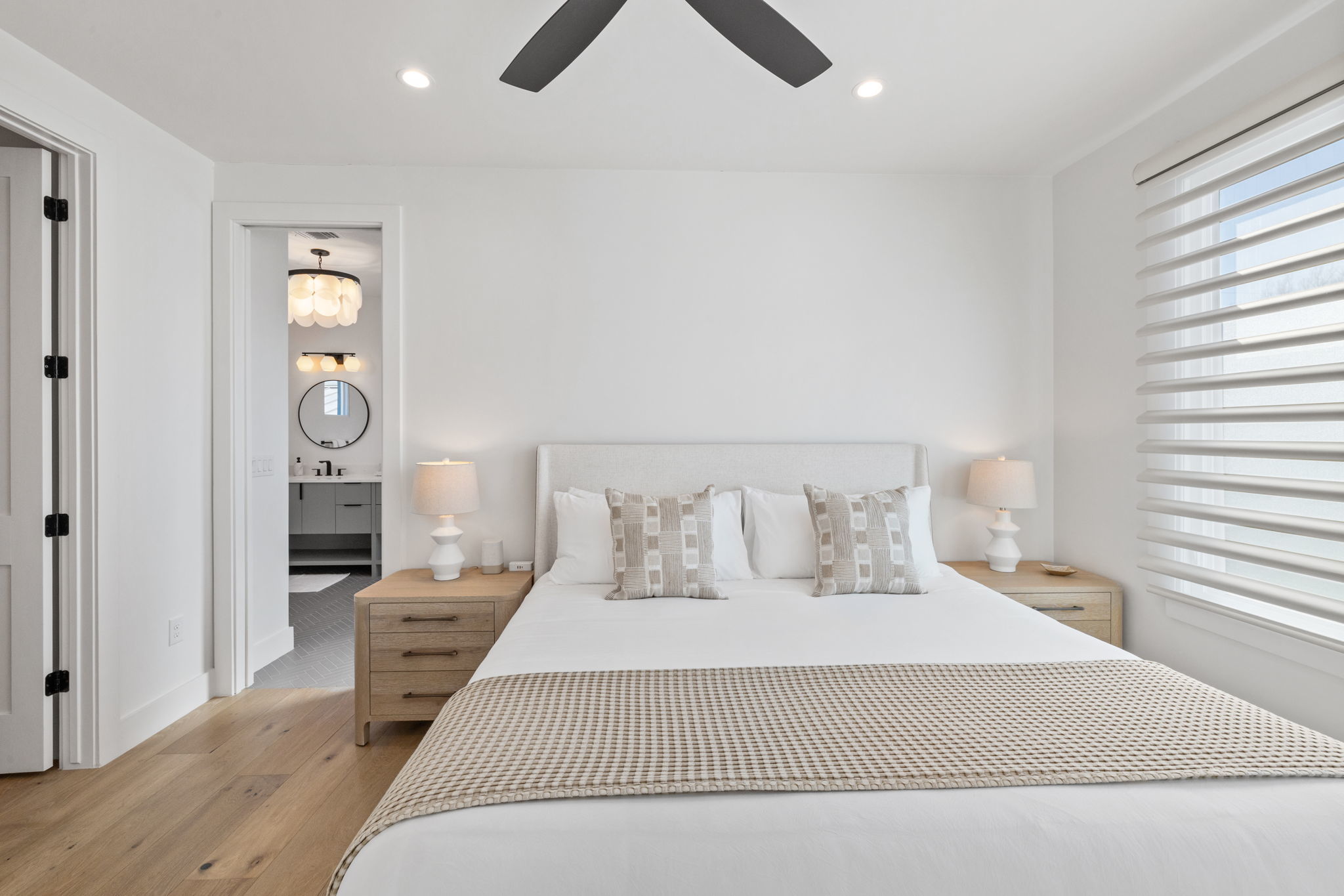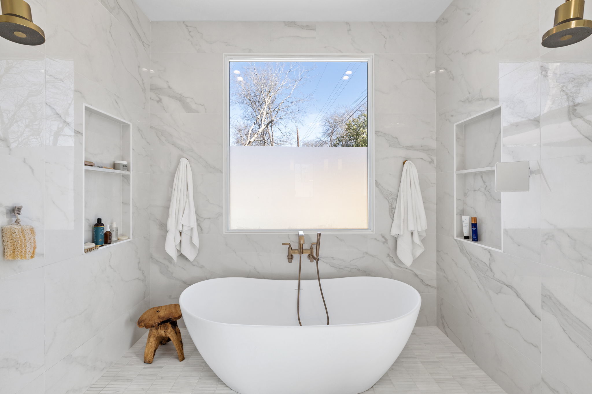 Gorgeous new construction designed by Etch Design Group, completed in 2024. Five bedrooms with two on the main level. Two primary bedrooms with one upstairs and one downstairs. Big pool with a covered outdoor patio, unbelievable bbq area with DCS built in grill, custom sauna (by Sauna Life), offering a true at-home wellness retreat. Custom finishes and fixtures throughout with a gorgeous kitchen and double islands open to the 20 ft ceilings in the living room. Separate dining room with the second bedroom downstairs being a perfect space for a home office. Huge windows throughout overlooking the pool and massive backyard. Designer motorized shades by Hunter Douglas installed throughout the main living spaces and multiple bedrooms, providing effortless light control, privacy, and a clean modern aesthetic at the touch of a button. Shades can be scheduled or controlled via smart assistant for added convenience and energy efficiency. This quarter acre lot has plenty of room to roam with elevated steal flower beds, clean landscaping and modern design that still feels homey. With a 5 minute walk to del curto park, 2.5 miles from SOCO and 3.5 miles from downtown, it’s easy to see why this pocket of south Austin is so popular. This floorplan has it all with the master suite on the main level as well as a stand-alone home office downstairs that could be used as a bedroom. High ceilings and an open floorplan make this house inviting from the moment you walk in the front door. The gourmet kitchen boasts a large island and all the designer finishes you would expect from a luxury home in south Austin. The master bedroom is tucked away off of the living room and kitchen with vaulted ceilings, a spa-like master bath with a digitally programmable double shower, a freestanding tub, double vanity and extra large walk-in closet. When you walk upstairs, you’ll find another large living space as well as a second master suite.
