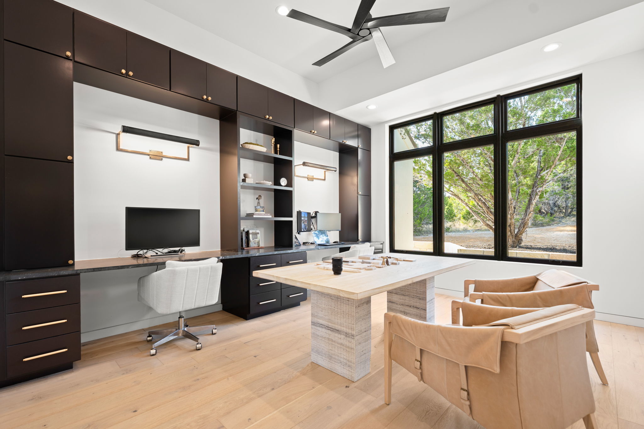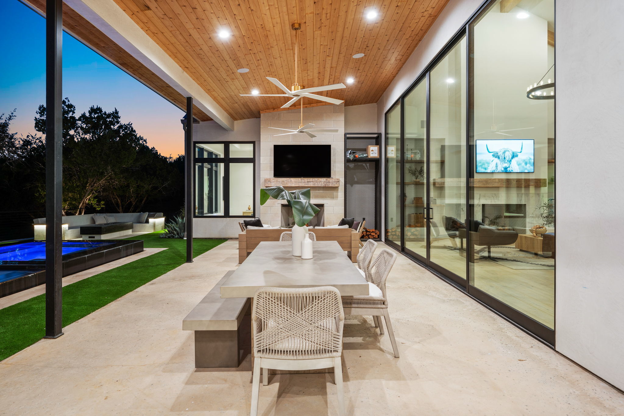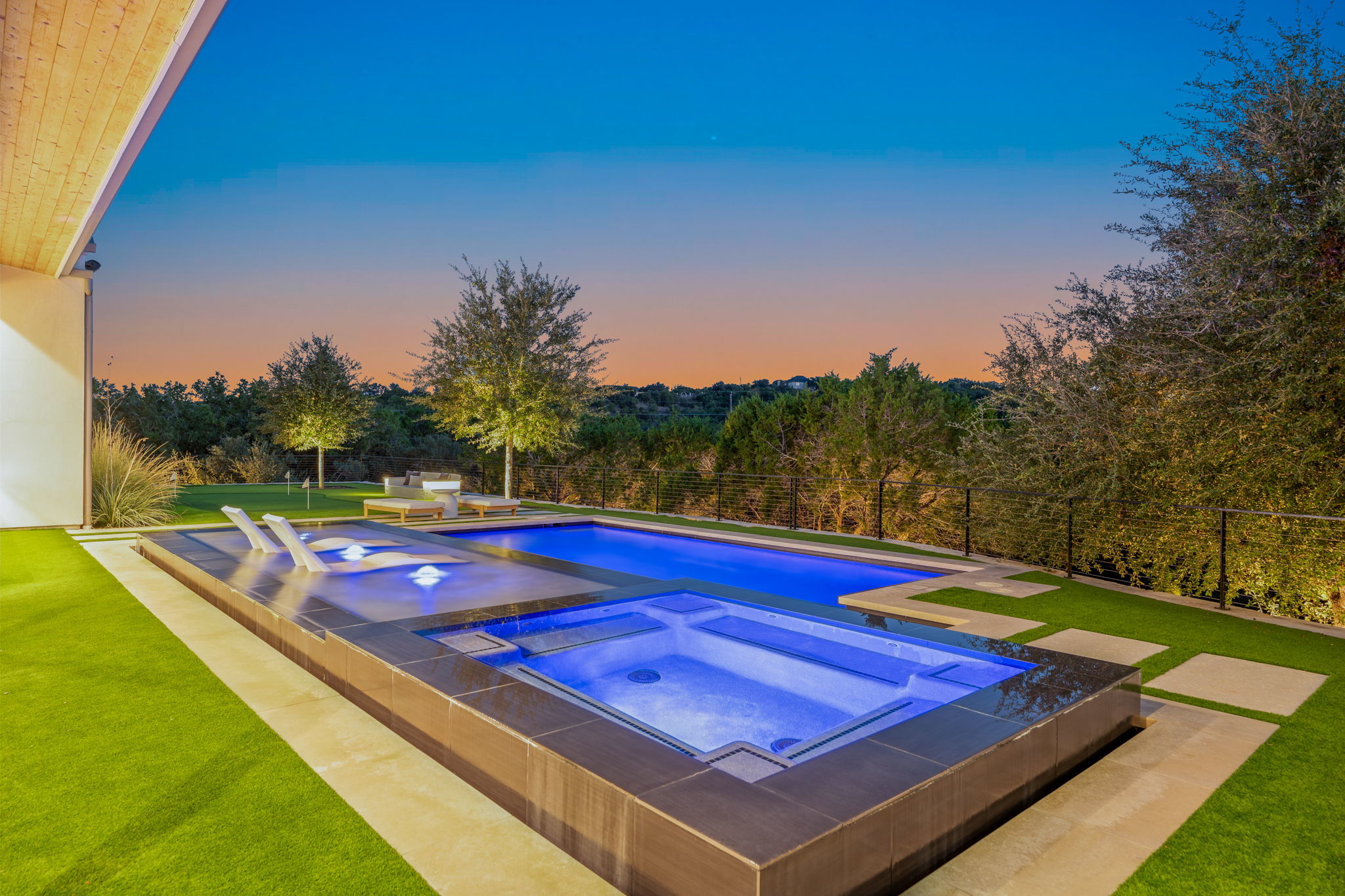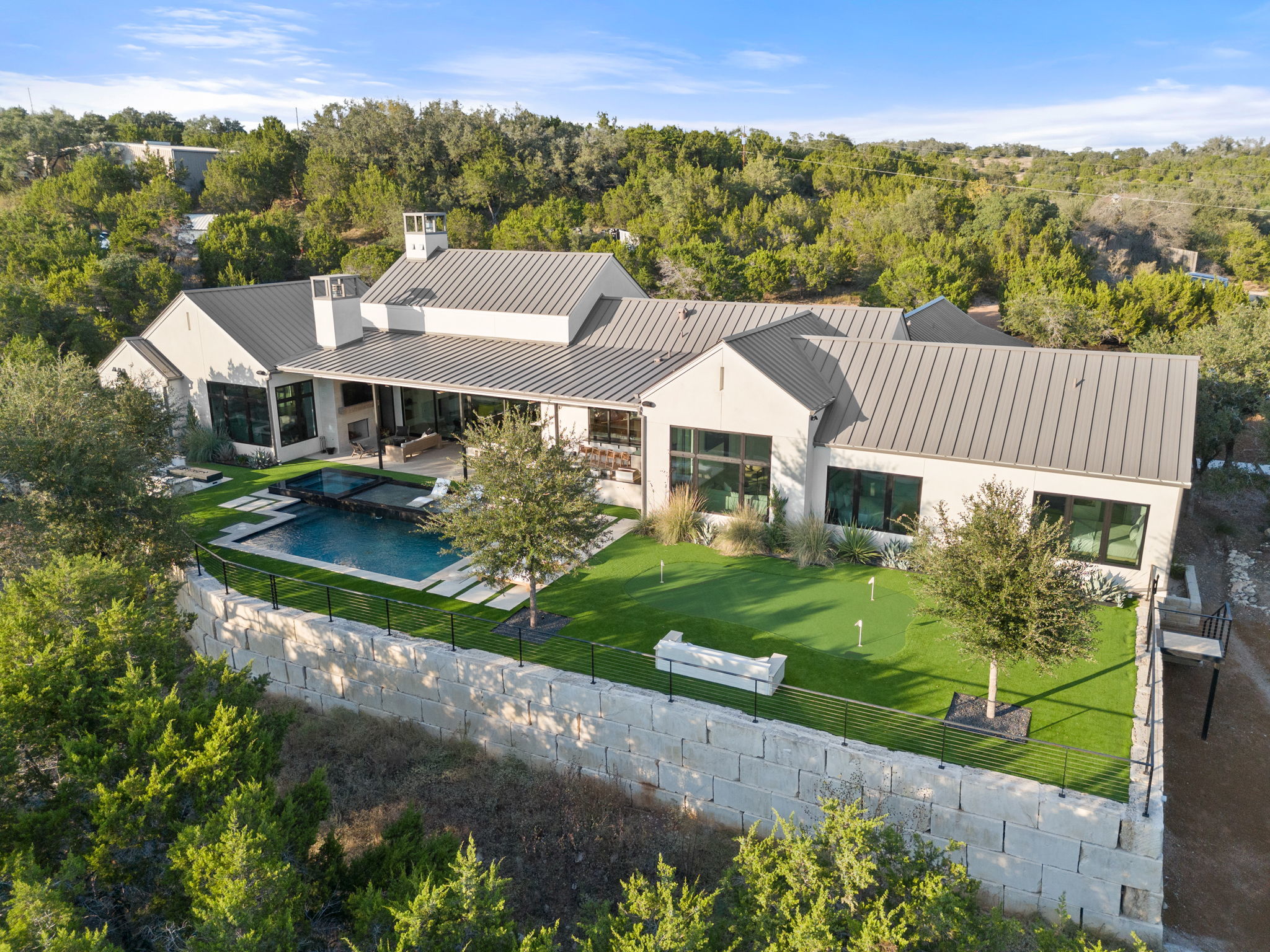 Custom Builder Model Home on 3 Acres, Gated and Unrestrictive in Spicewood – No HOA This stunning 2024 custom-built home is a true modern retreat, designed and built by a local luxury builder for their personal residence. Set on 3 fully fenced, unrestricted acres with no HOA, this 4-bedroom, 6-bathroom home (4 full, 2 half) offers the perfect blend of privacy, flexibility, and luxury living. Inside, every finish and feature has been artfully curated by a professional designer, from the spacious open-concept layout to the custom details throughout. The home features two large living areas and a dedicated study, making it ideal for both family living and entertaining. Step outside and experience resort-style living at its finest: a negative edge pool, outdoor shower, cozy fireplace seating area, built-in fire pit, and a turf putting green offer endless opportunities for relaxation and fun. A spring-fed wet weather creek adds a peaceful, natural touch to the landscape. Thoughtfully designed for future expansion, utilities have already been installed for a future casita, party barn, or workshop—offering incredible potential to personalize the property further. With a super low property tax rate of just 1.78%, this home offers exceptional value in one of Spicewood’s most desirable and scenic areas.