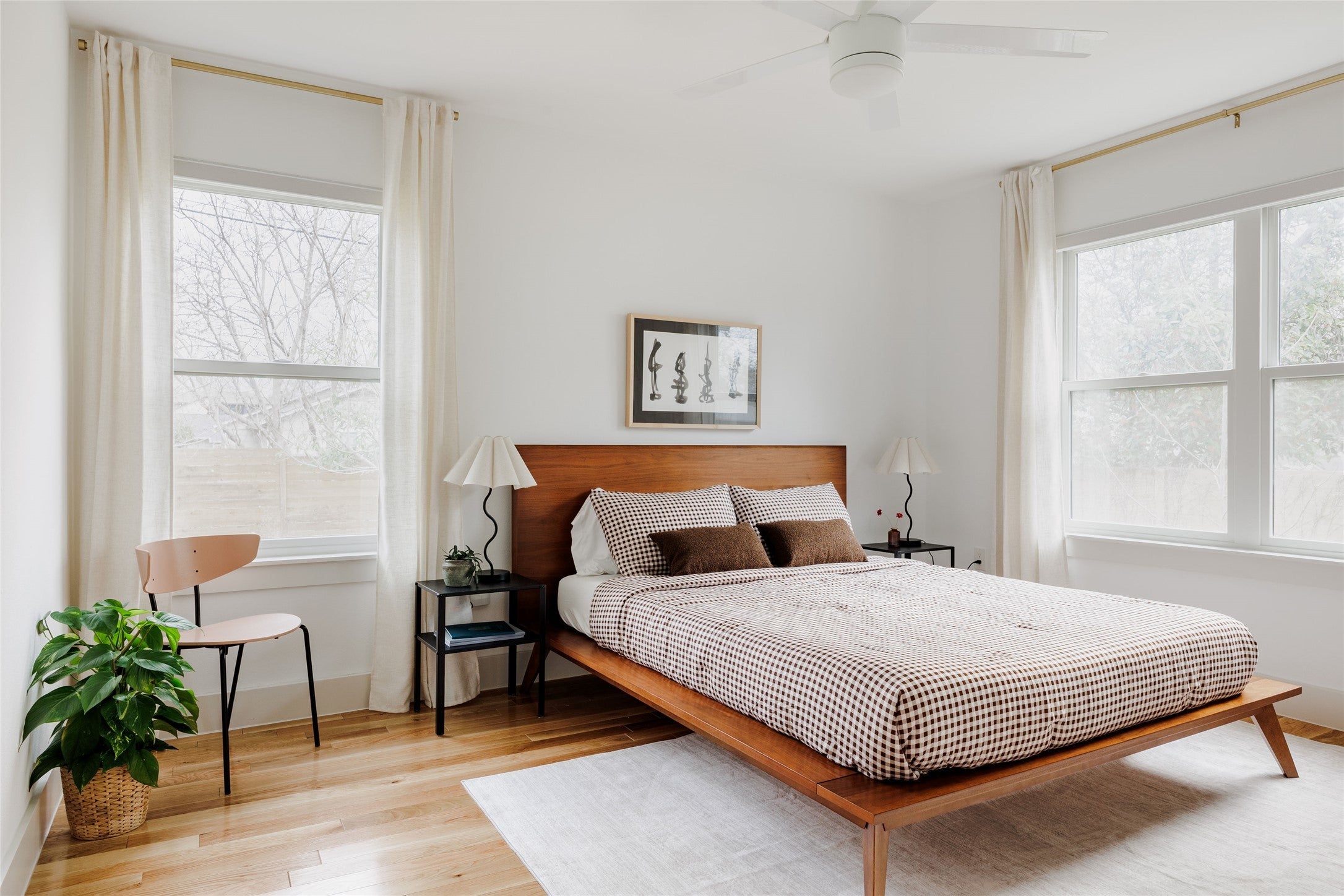 2606 W 48th is a beautifully renovated 1,724 square foot home full of original soul and modern comfort. This residence offers three bedrooms and two and a half baths, including a walk-in closet in the primary - a rare find for homes of this era. Live easier and more organized with generous storage throughout plus a convenient nook off the kitchen - perfect for coffee station and an evening bar. The house has been updated with new kitchen cabinets and hardwood oak floors throughout, as well as custom dual layer window blinds. Outdoor space is a real part of daily life here. The front patio provides a quiet place to ease into the day or wind down in the evening. The back deck sits right off the kitchen, making it easy to move between inside and out, and it’s perfect for relaxing or entertaining. Trees around the property create a sense of privacy and retreat. Just blocks from The Grove, Fonda San Miguel, epicerie, and so many more Rosedale neighborhood favorites, W 48th offers easy access to daily conveniences while being located on a remarkably quiet street. Zoned to A-rated schools (Highland Park, Lamar, McCallum), this is a well-cared-for home that brings together character, modern comfort, and peace in the heart of Austin.
