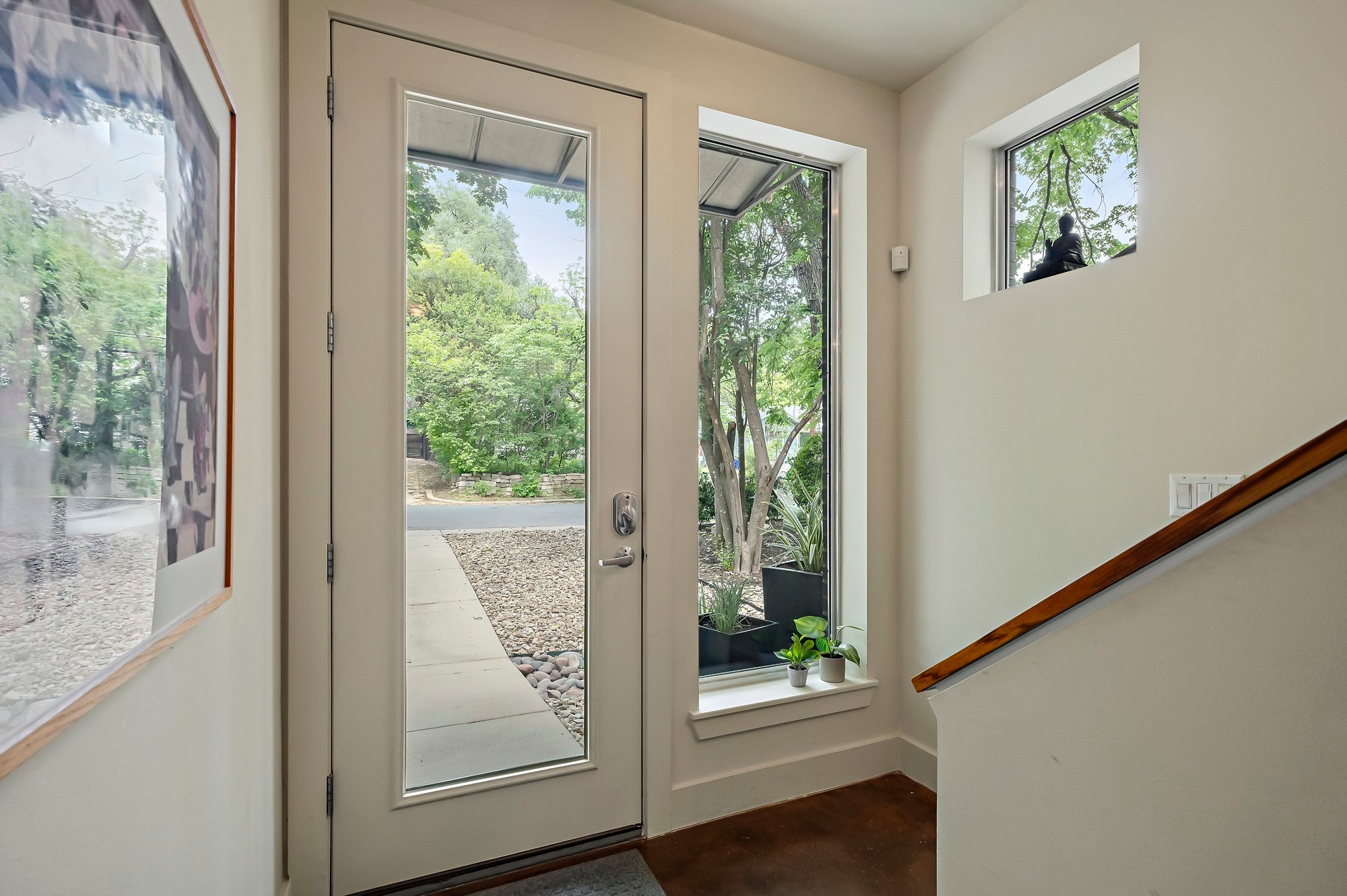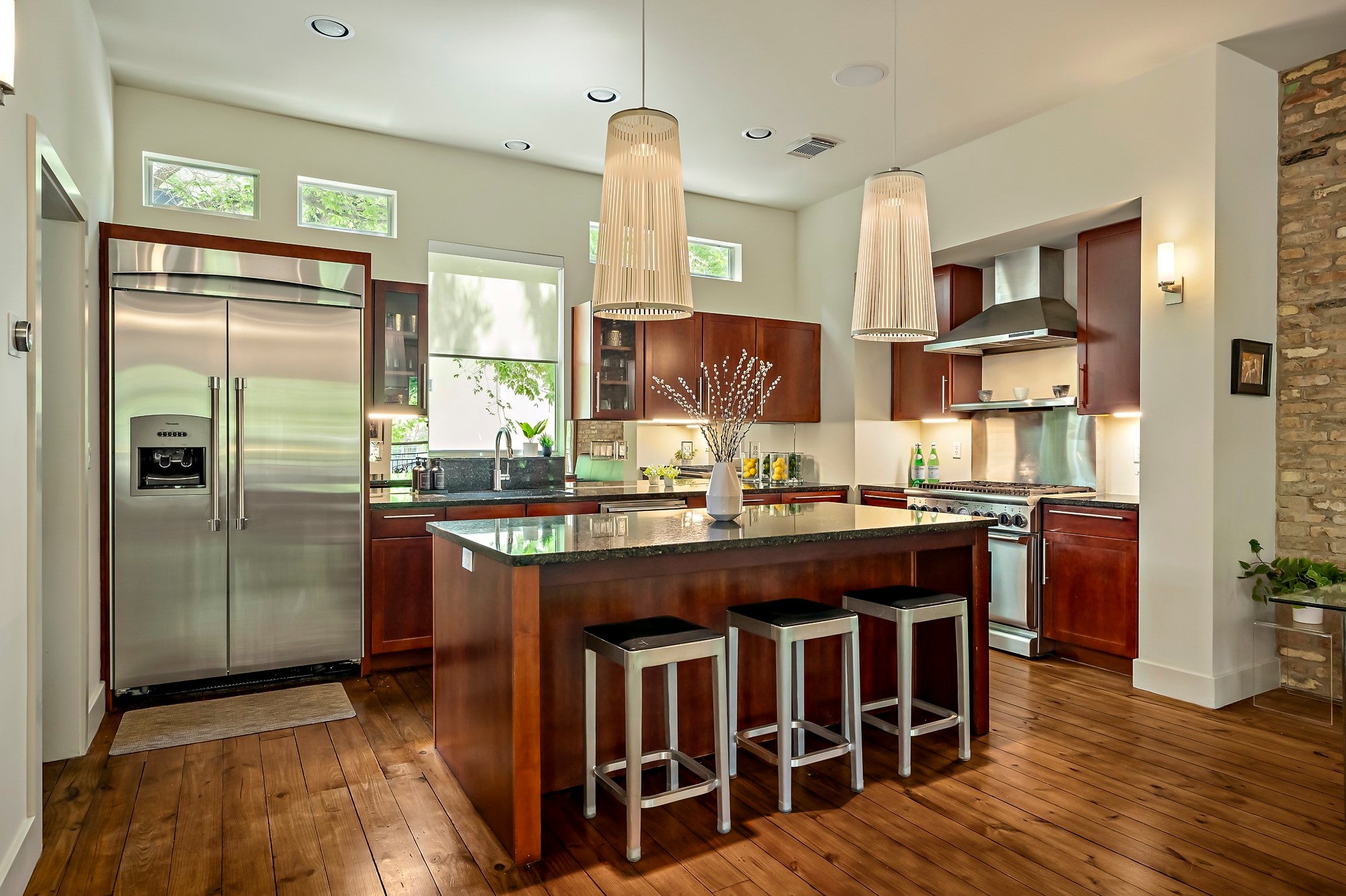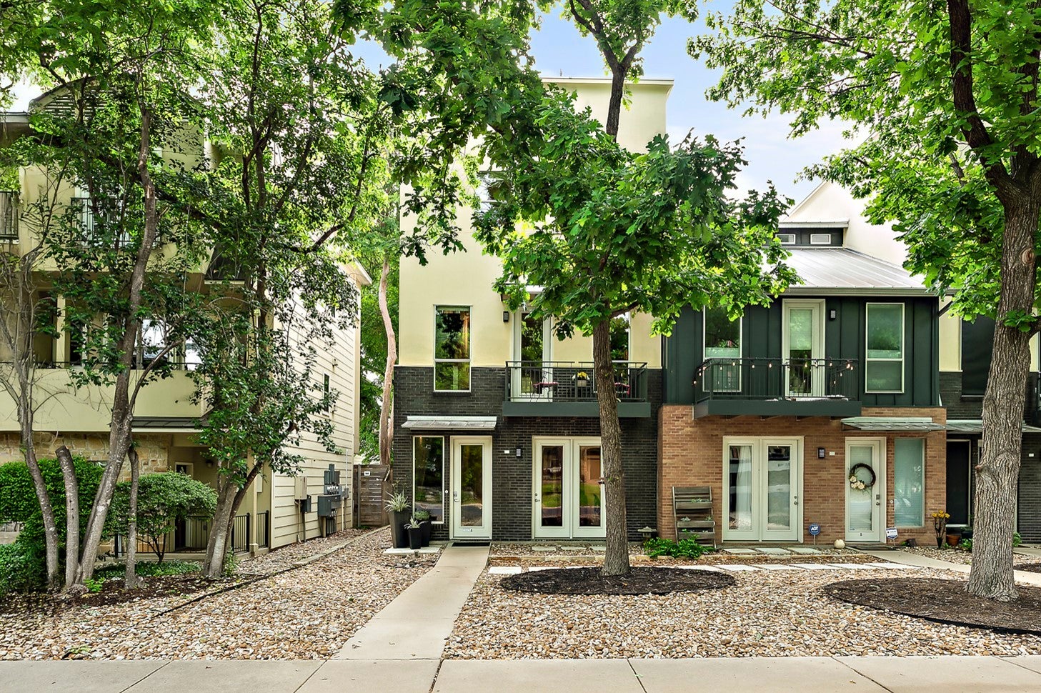 Welcome to 1205 Kinney Ave, Unit A — a beautifully designed home that blends modern aesthetics with timeless charm in one of Austin’s most beloved neighborhoods. Bathed in natural light throughout, this 3-bedroom, 2.5-bath residence features beautiful pine plank floors and striking exposed brick accent walls, creating a space that feels both sophisticated and inviting. The open-concept living, dining, and kitchen area is ideal for entertaining, with a chef’s kitchen that boasts quartz countertops, Thermador stainless steel appliances, and custom cabinetry. Floor-to-ceiling windows and glass doors create a seamless connection to the outdoors. Enjoy your morning coffee or evening cocktail on the tree-shaded balcony overlooking Kinney. Upstairs, the spacious primary suite offers a serene retreat with a spa-inspired bathroom, dual vanities, a glass-enclosed shower, and a generous walk-in closet. Two secondary bedrooms provide comfort and flexibility — perfect for guests, kids, or home office setups. A full bath off the ground floor bedroom, and half bath off the family room, offers additional convenience for guests. Note- this unit faces Kinney and has only one adjoining wall with the neighboring unit, offering a front yard retreat for the owners. New HVAC as of November 2025. Walking distance to restaurants and shops on South Lamar, the Alamo Drafthouse, Zilker Park and Barton Springs. Perfect location for everything 78704 has to offer. ABIA just 12 miles away, and downtown Austin 3 miles away - this is urban living at its finest. Schedule your private tour today!
