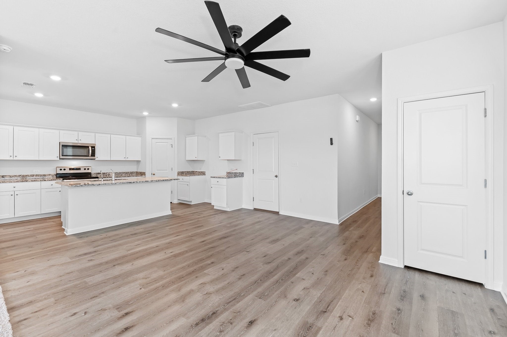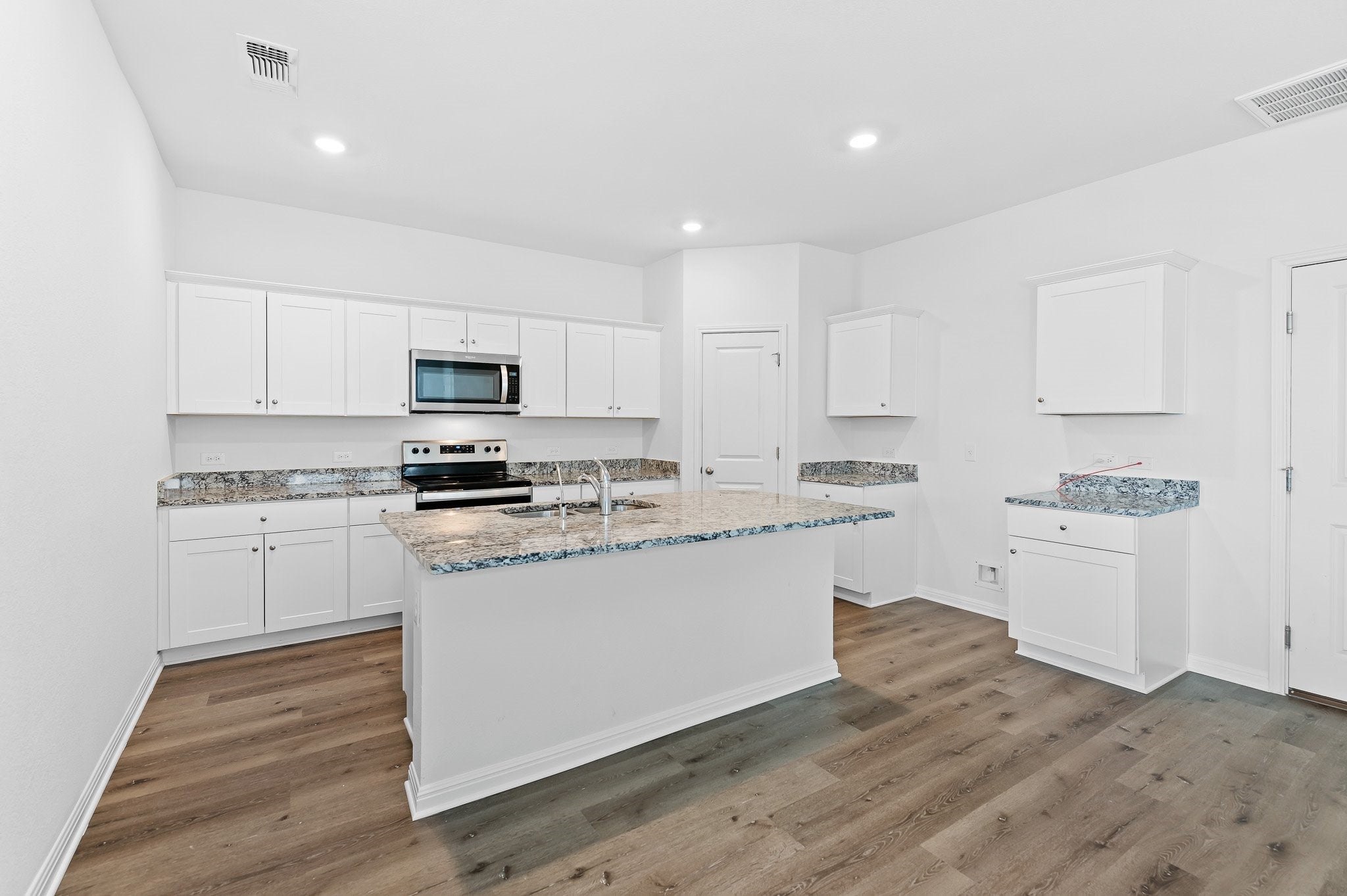 Spacious 5-bedroom, 3-bath two-story home located in the Sonterra community in Jarrell, TX. This open-concept floor plan offers two living areas, providing flexible space for a game room, media area, or second lounge. The kitchen features granite countertops, stainless steel appliances, LED lighting, and overlooks the main living area. Low-E windows enhance energy efficiency and natural light throughout the home. One bedroom and a full bath are located on the main level, ideal for guests or multi-generational living. The remaining bedrooms are upstairs along with a conveniently located laundry room with washer and dryer connections. The property includes a fully sodded and fenced backyard. Refrigerator convey. Convenient access to I-35 with an easy commute to Georgetown, Temple, and North Austin.